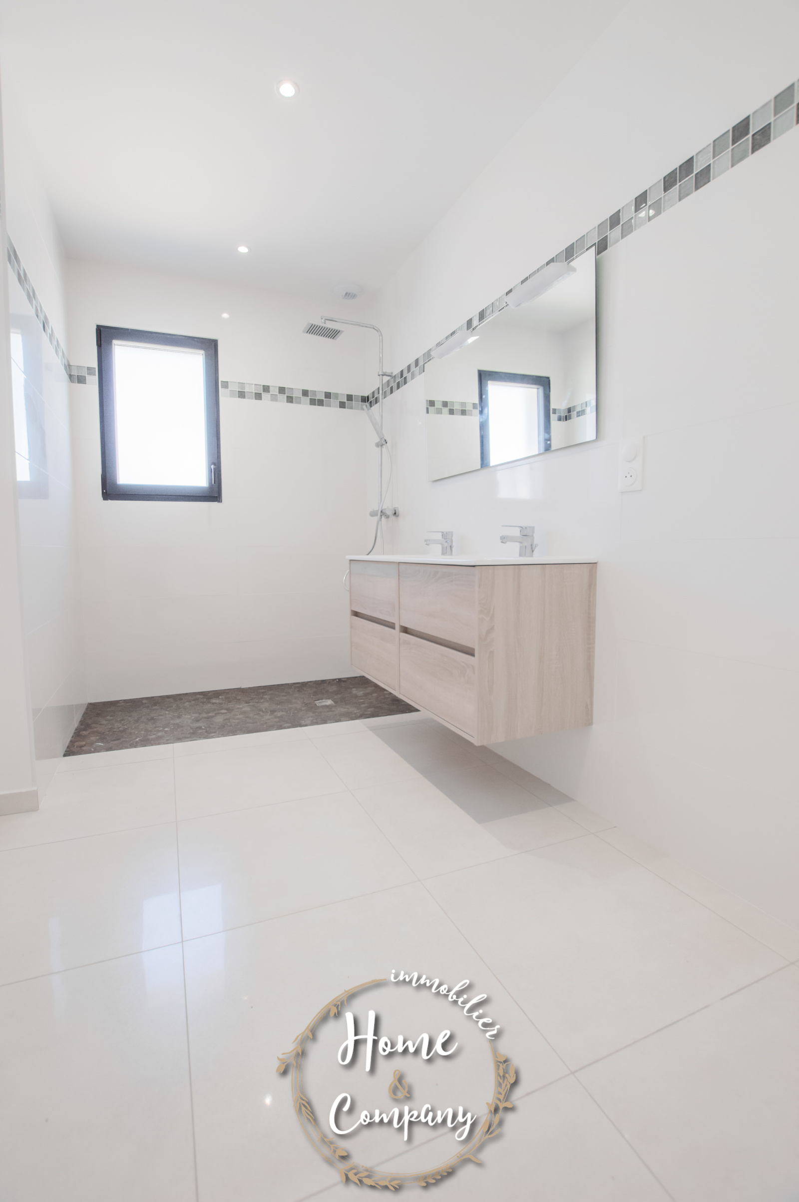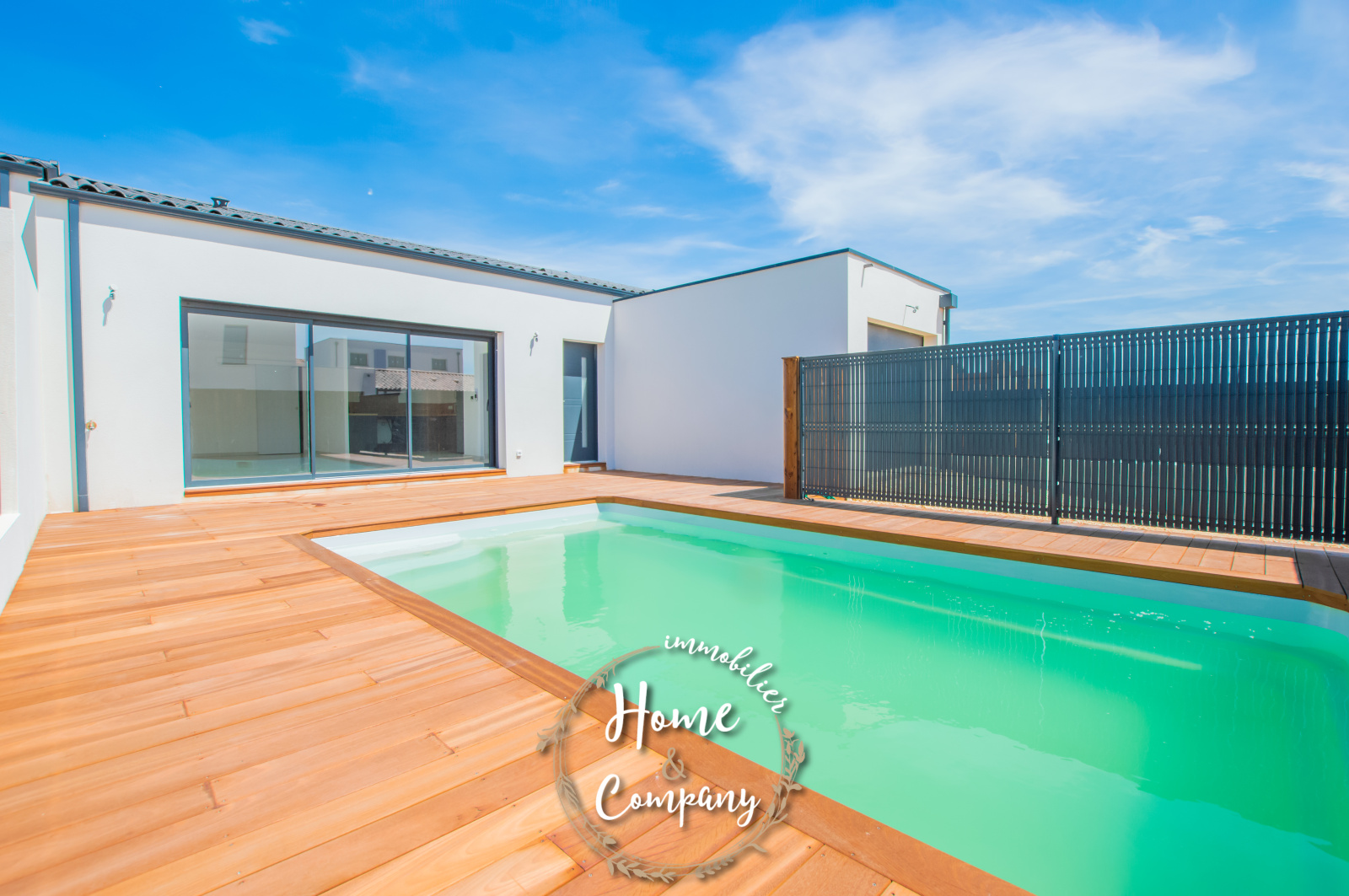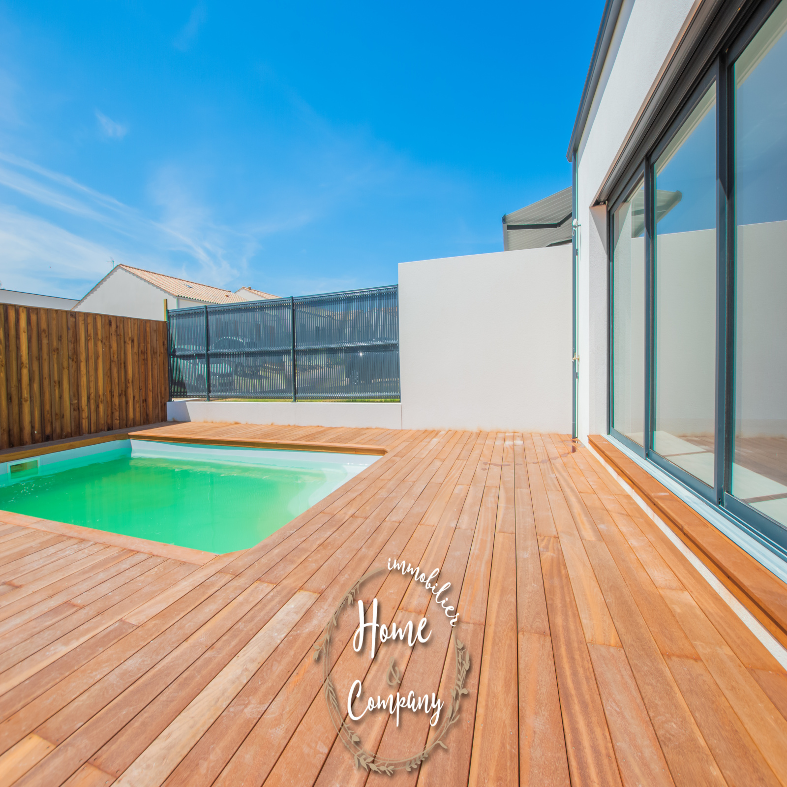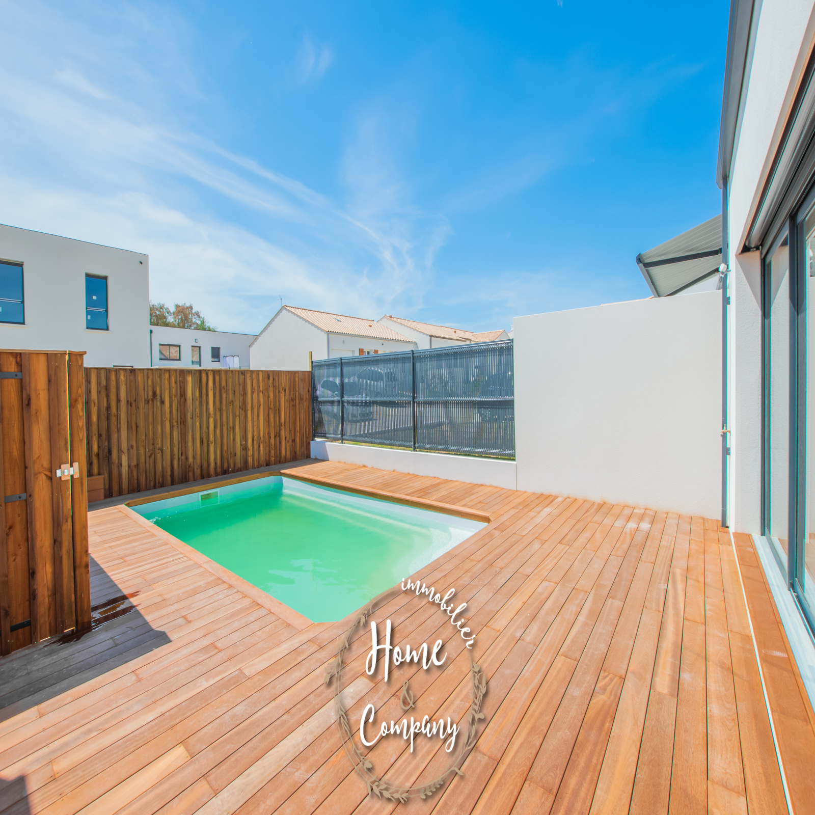 VAUX-SUR-MER - MAISON NEUVE RT2012 AVEC PISCINE - Située à 800m des commerces du Centre-Ville de VAUX-SUR-MER et à 2600m de la plage de Nauzan, Home & Company Immobilier vous présente cette jolie maison neuve contemporaine de plain-pied d'une superficie habitable de 100m2 sur une parcelle de terrain de 272m2 avec stationnement privatif. Cette maison à l'architecture soignée propose une belle pièce de vie de 44m2 lumineuse avec son exposition SO ouvrant sur une terrasse en bois, une cuisine ouverte aménagée. Côté nuit, nous retrouvons une suite parentale avec salle d'eau privative et WC, 2 chambres dont une ouvrant sur patio intime, une salle d'eau et un WC indépendant. Piscine 6x3m chauffée par PAC. Un garage de 21m2 constitue l’annexe de cette maison avec garanties (décennale et dommage ouvrages) où l'on retrouve le confort et les performances énergétiques d'aujourd'hui : chauffage au sol par PAC, isolation... Frais de notaire réduits. DONT honoraires 3,88% à la charge de l'acquéreur.