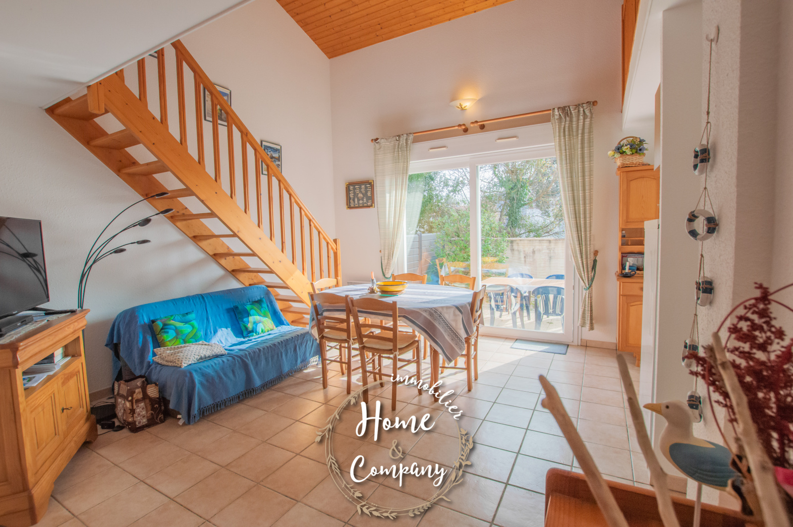 VAUX-SUR-MER - AGREABLE MAISON AVEC TERRASSE - Située entre plage et commerces dans un quartier prisé à VAUX-SUR-MER, Home & Company Immobilier vous présente en EXCLUSIVITE cette maison d'une superficie utile de 84,55m2 avec un espace extérieur composé principalement d'une terrasse. L'entrée passée, nous arrivons dans la pièce de vie de 27m2 avec la cuisine, pièce lumineuse, ouvrant par une baie vitrée sur la terrasse et le jardinet gravillonné. Un coin nuit avec placard assure un couchage au rez-de-chaussée. Salle d'eau et WC indépendant. L'escalier nous amène à un palier pouvant offrir un couchage d'appoint, une salle de bains avec WC et 2 chambres. Côté jardin, la terrasse exposée Sud-Ouest, est réellement un atout pour profiter des beaux jours. Un garage constitue l'annexe de la maison. DONT 3,88% d'honoraires à la charge de l'acquéreur. Plus de photos et visite virtuelle sur le site de l'agence Home & Company Immobilier.