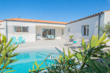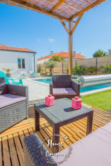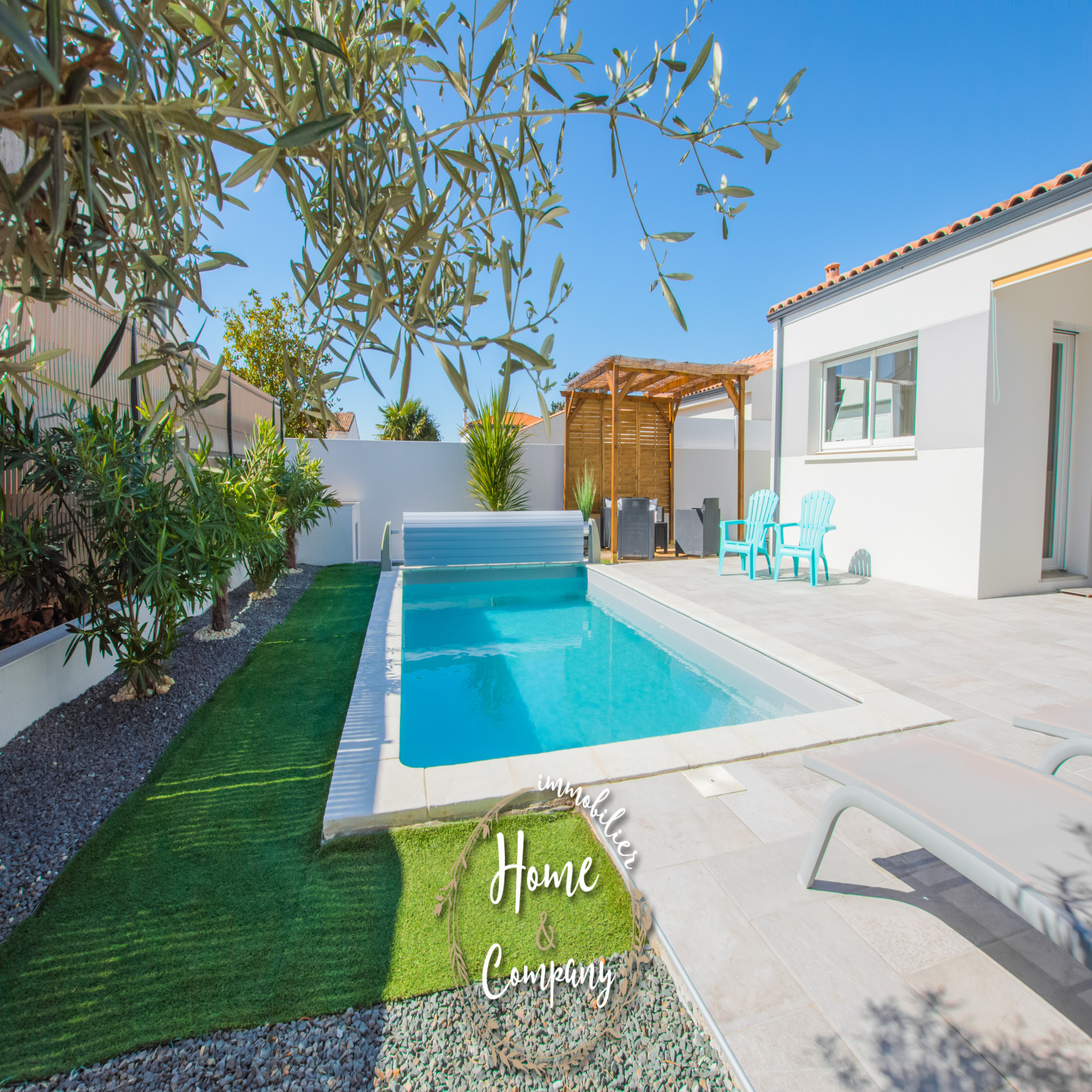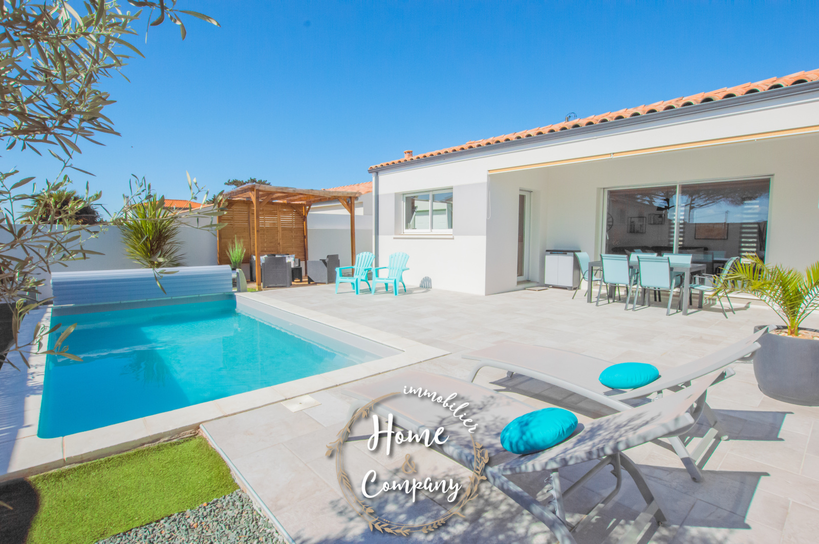VAUX-SUR-MER - MAISON RECENTE PROCHE PLAGE - Située à 300m de la plage et se trouvant proche des commerces, Home & Company Immobilier vous présente en EXCLUSIVITE cette maison de 2019 entièrement de plain-pied développant 138m2 habitables sur une parcelle de 490m2. Judicieusement pensée, cette maison offre véritablement un confort de vie. Dès l'entrée passée, un séjour lumineux de 45m2 nous donne le ton et dévoile un bel espace extérieur principalement composé d'une terrasse idéalement exposée et d'une piscine. Dans cette pièce de vie, une cuisine ouverte aménagée et équipée complète cet espace convivial. Côté nuit, un dégagement avec WC nous amène à 4 chambres avec placards, 2 salles d'eau dont une avec WC et un bureau. Le jardin demandant peu d'entretien, propose différents pôles. Toujours dans un esprit de convivialité, on retrouve une zone de détente autour de la piscine, un coin repas sous auvent et un salon plus "festif". Un cellier, une buanderie et un garage constituent les annexes de cette jolie maison. DONT honoraires 3,90% à la charge de l'acquéreur. Plus de photos et visite virtuelle sur le site de l'agence Home & Company Immobilier.
