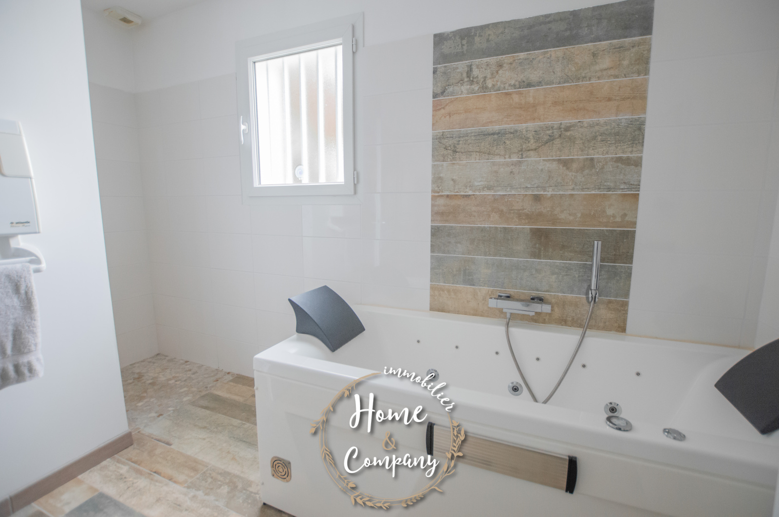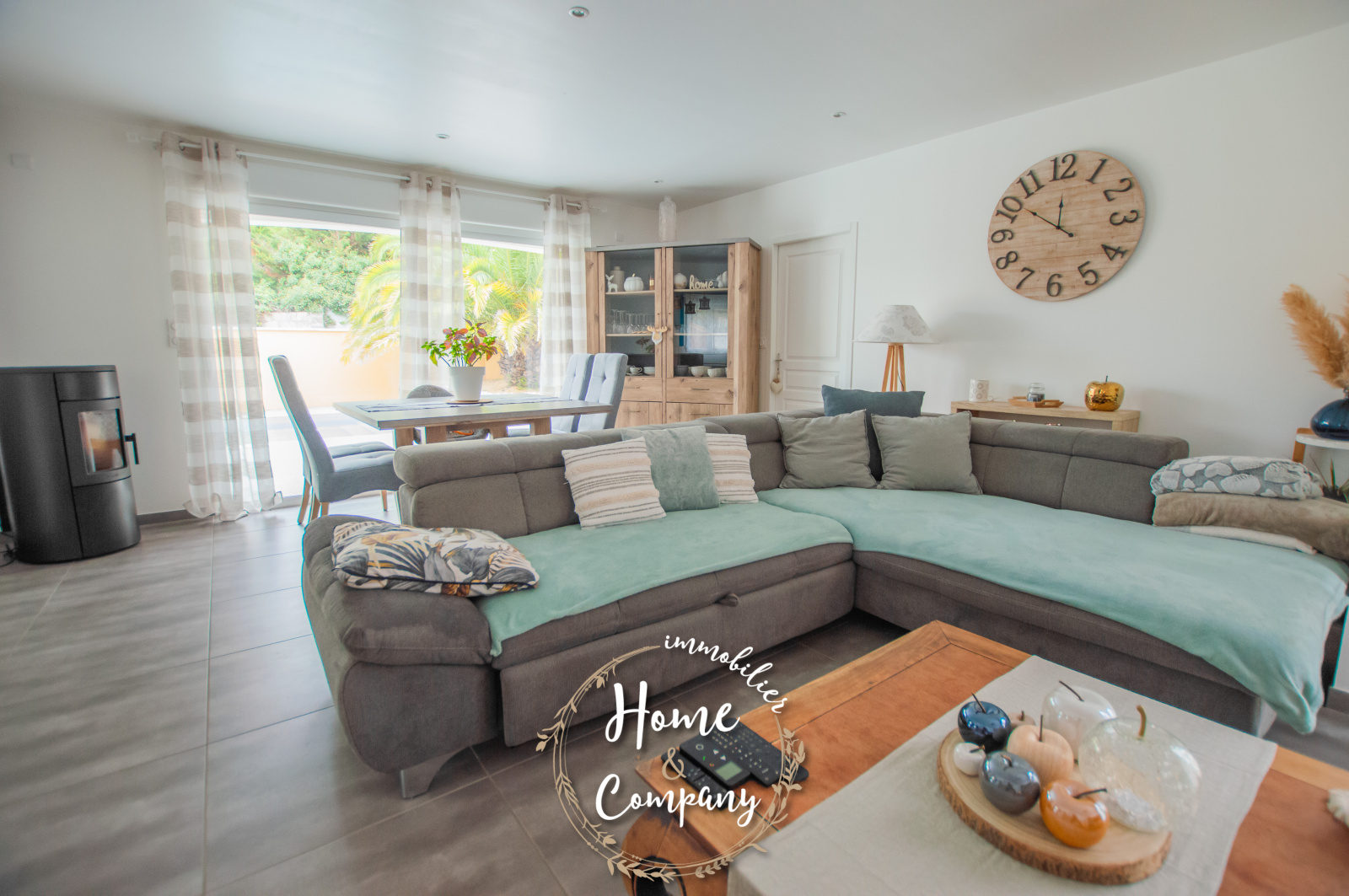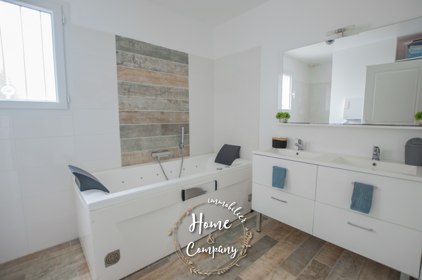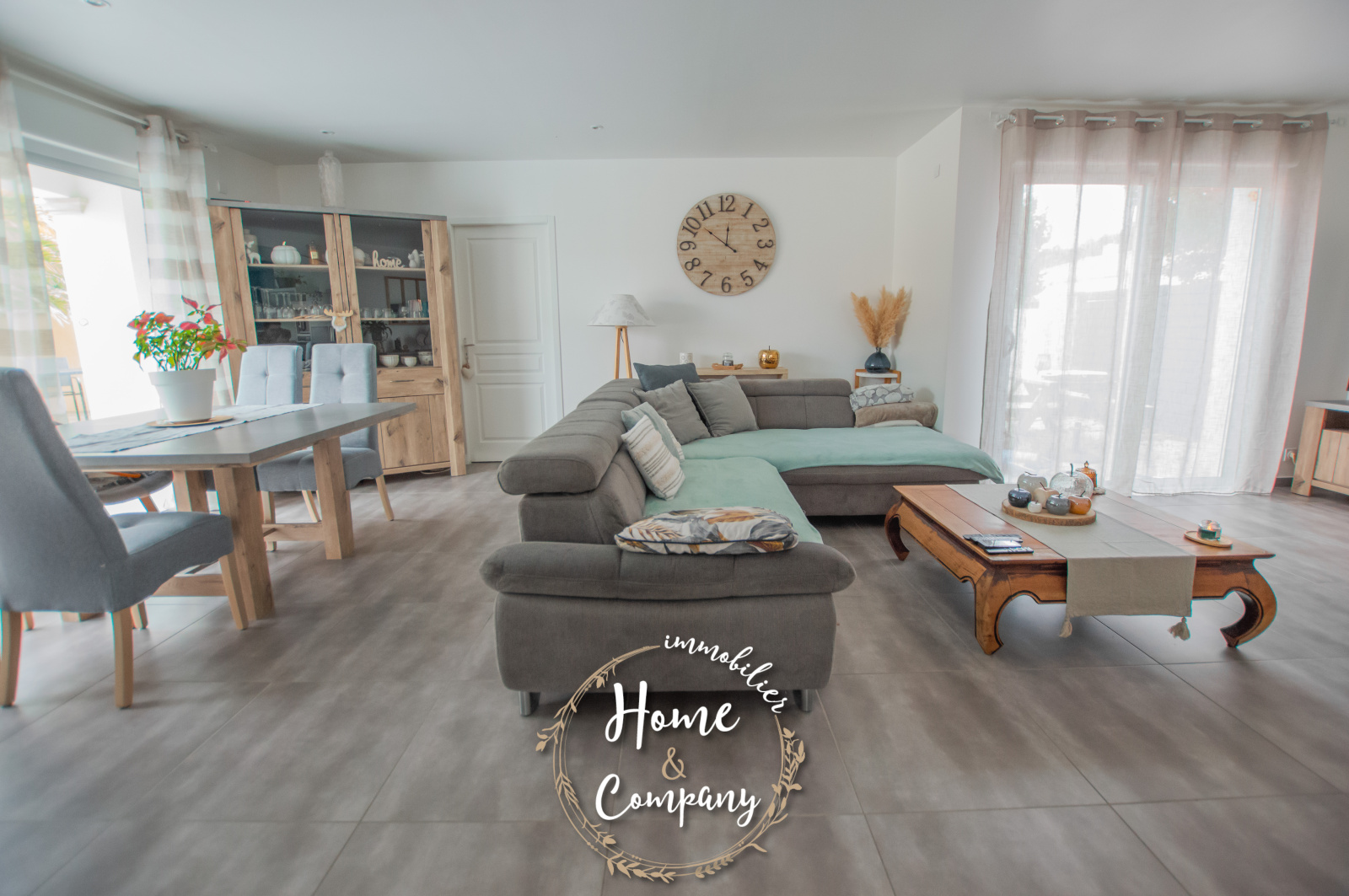 VAUX-SUR-MER - MAISON RÉCENTE DE PLAIN-PIED AVEC PISCINE - Située à moins de 950m des commerces de Val Lumière et à moins de 3700m de la plage de Pontaillac, Home & Company Immobilier vous présente cette agréable maison de plain-pied offrant une superficie habitable de 123m2 sur une parcelle de 471m2. Judicieusement pensée et tournée vers ses différents pôles extérieurs, elle vous offrira un véritable confort de vie. Dès l'entrée passée, cette maison dévoile une belle pièce de vie exposée SUD de 49m2 avec sa cuisine ouverte aménagée et équipée, l'ensemble ouvrant sur une terrasse et un patio. Une première partie nuit est composée d'une suite parentale avec chambre, salle d'eau/wc et dressing ouvrant également sur la terrasse. En opposition, une deuxième partie nuit cette fois-ci composée de 2 chambres avec placards se partageant une salle de bains, un bureau et un WC indépendant. Un garage et un abri de jardin constituant les annexes de cette jolie maison lumineuse avec piscine. Du stationnement privatif est assuré pour cette maison environnante. Plus de photos et visite virtuelle sur le site de l'agence Home & Company immobilier. DONT honoraires 3,63% à la charge de l'acquéreur. Montant moyen des dépenses annuelles d'énergie pour un usage standard, établi à partir des prix de l'énergie de l'année 2021 : entre 1170€ et 1640€.