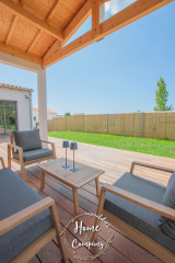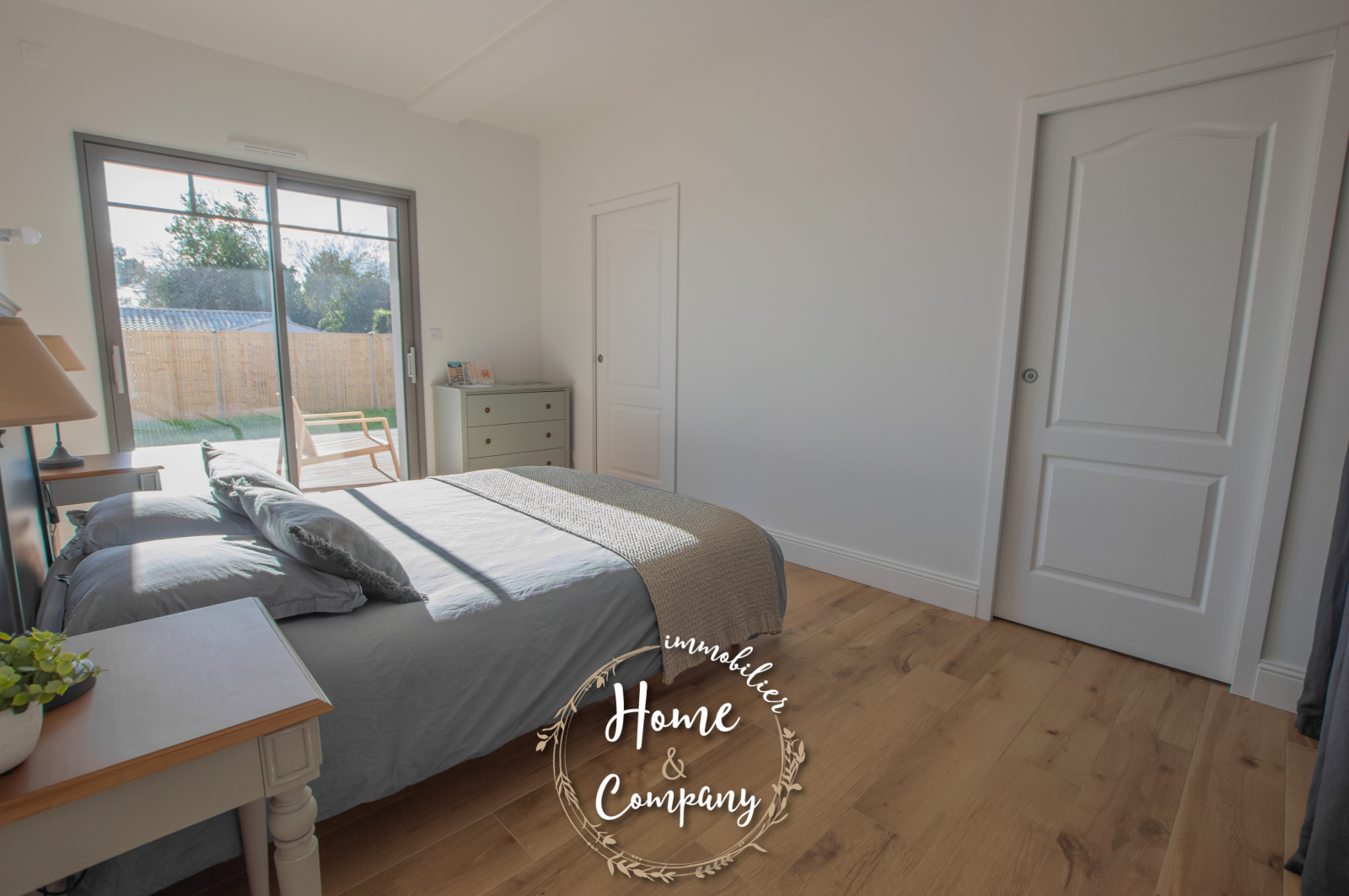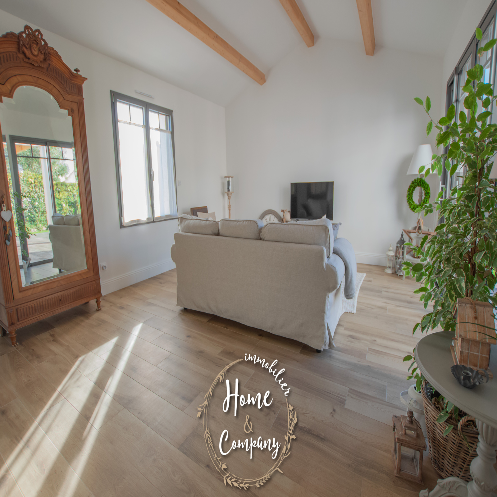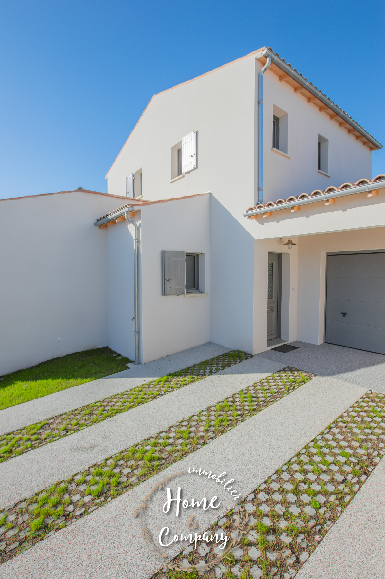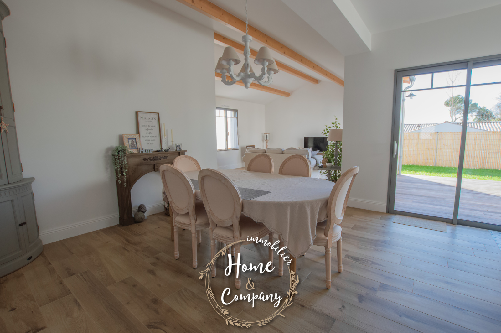VAUX-SUR-MER - MAISON NEUVE PROCHE DU CENTRE-VILLE - Située à 800m des commerces du centre de VAUX-SUR-MER et à 1900m de la plage de Nauzan, Home & Company Immobilier vous présente en EXCLUSIVITÉ cette belle maison neuve de style rétaise aux normes RE2020, développant 142m2 habitables sur une parcelle de 400m2. Dans un environnement calme tout en étant habité à l'année, elle offre au rez-de-chaussée une entrée avec placard, une belle pièce de vie de 50m2 avec une cuisine semi-ouverte aménagée et équipée, l'ensemble ouvrant sur une terrasse dont une partie couverte qui offrira une vue reposante sur le jardin. Côté nuit, une suite parentale de 24m2 disposant d'une chambre avec placard, d'une salle d'eau et d'un espace dressing, assure une vie de plain-pied en plus d'un bureau de près de 8m2. WC indépendant. L'étage de son côté, regroupe un palier desservant 2 chambres avec placards, une salle de bains (baignoire et douche) et un WC indépendant. Un garage carrelé et isolé de 21m2 ainsi qu'un cellier ouvrant sur un patio, constituent les annexes de cette maison aux prestations soignées avec des garanties (décennale et dommage ouvrages). Cette maison judicieusement pensée vous offrira le confort et les performances énergétiques d'aujourd'hui : chauffage au sol par PAC, vide sanitaire, isolation, domotique (volets roulants), menuiseries alu Kline, débord de toit en chevron, gouttières en zinc... Stationnement privatif sur la parcelle. DONT honoraires 2,90% à la charge de l'acquéreur. Montant moyen estimé des dépenses annuelles d'énergie pour un usage standard, établi à partir des prix de l'énergie de l'année 2021, 2022 et 2023 : entre 460 € et 670€.
