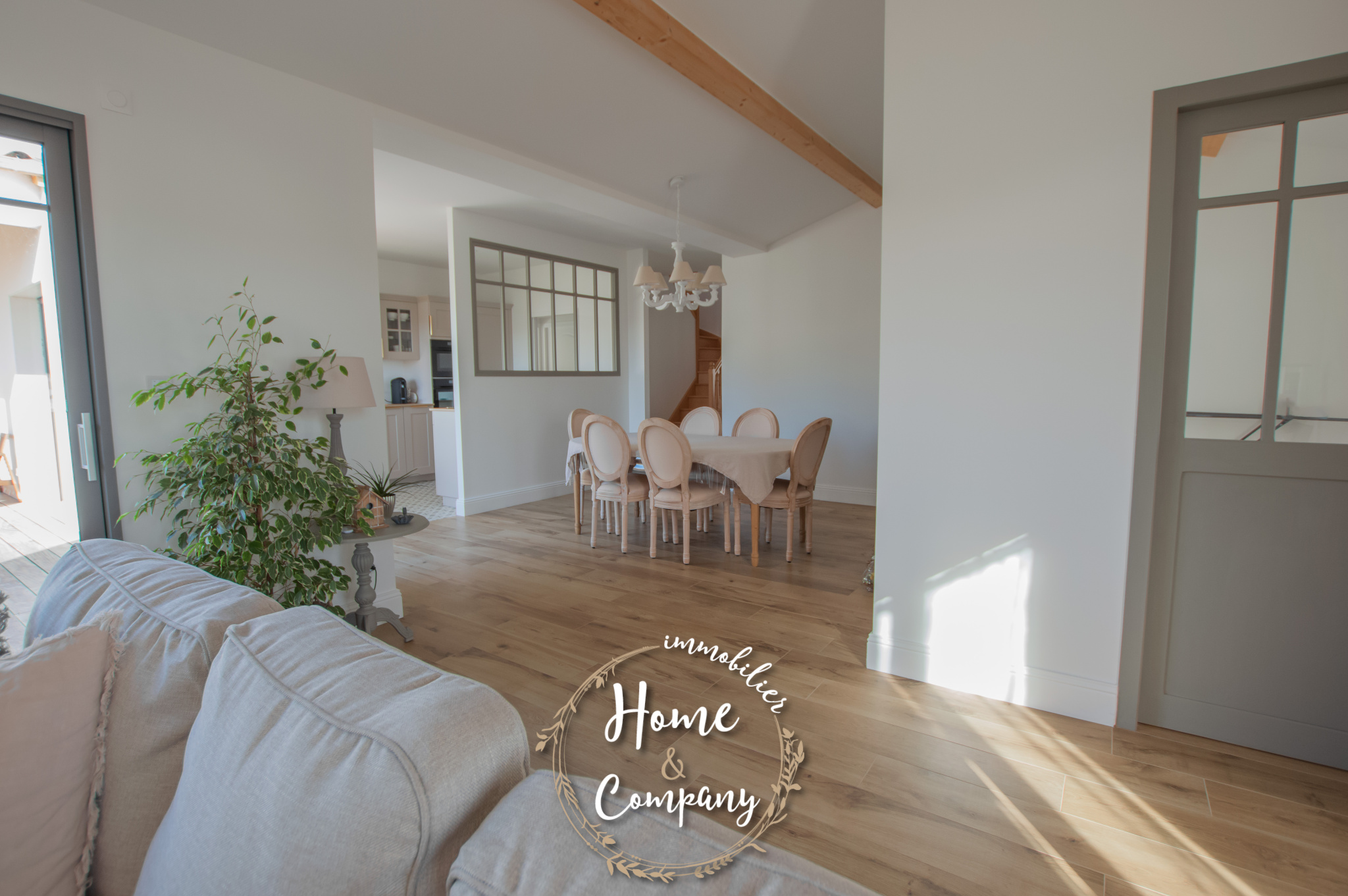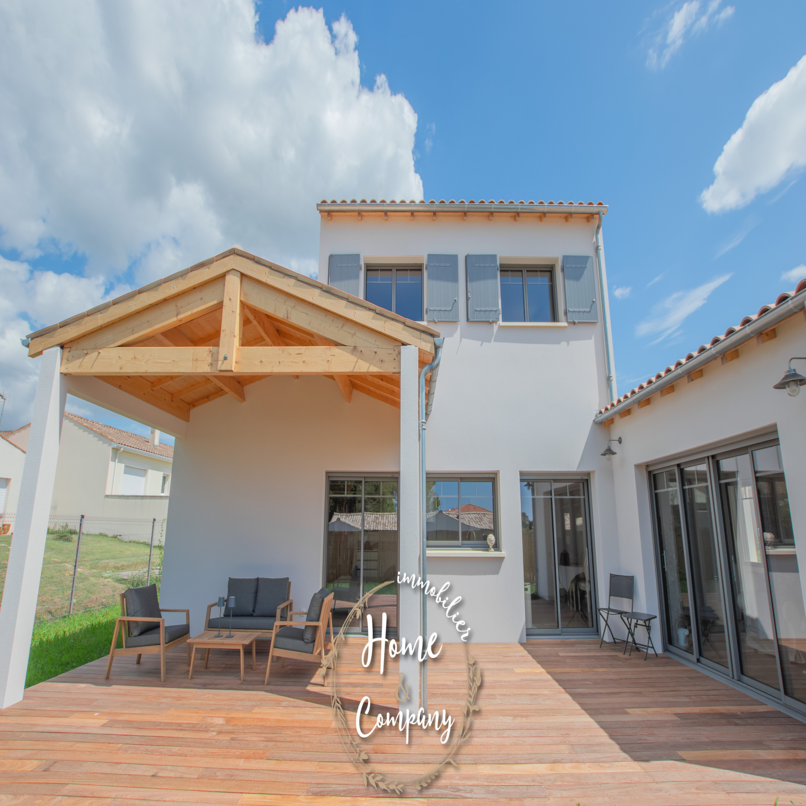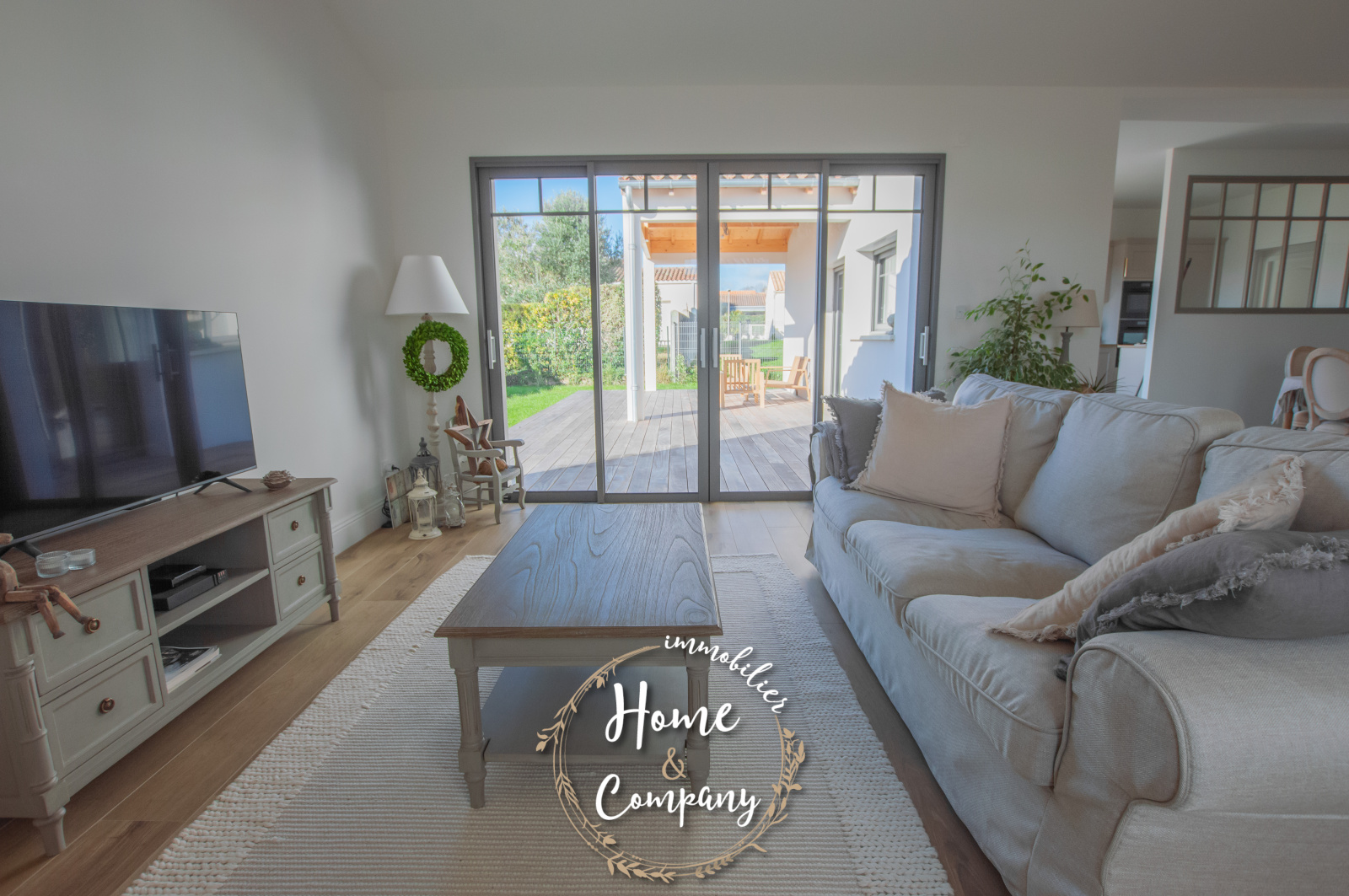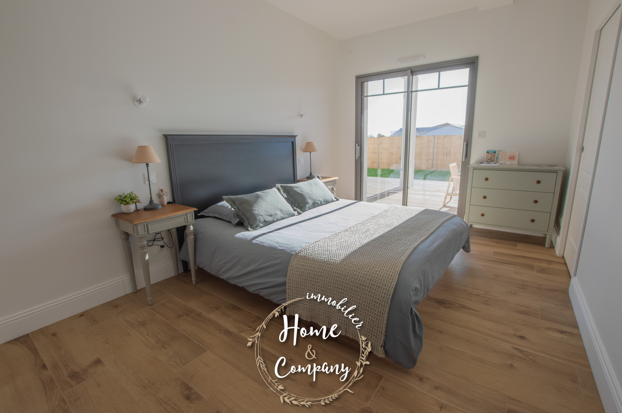 VAUX-SUR-MER - MAISON NEUVE PROCHE DU CENTRE-VILLE - Située à 800m des commerces du centre de VAUX-SUR-MER et à 1900m de la plage de Nauzan, Home & Company Immobilier vous présente en EXCLUSIVITÉ cette belle maison neuve de style rétaise aux normes RE2020, développant 142m2 habitables sur une parcelle de 400m2. Dans un environnement calme tout en étant habité à l'année, elle offre au rez-de-chaussée une entrée avec placard, une belle pièce de vie de 50m2 avec une cuisine semi-ouverte aménagée et équipée, l'ensemble ouvrant sur une terrasse dont une partie couverte qui offrira une vue reposante sur le jardin. Côté nuit, une suite parentale de 24m2 disposant d'une chambre avec placard, d'une salle d'eau et d'un espace dressing, assure une vie de plain-pied en plus d'un bureau de près de 8m2. WC indépendant. L'étage de son côté, regroupe un palier desservant 2 chambres avec placards, une salle de bains (baignoire et douche) et un WC indépendant. Un garage carrelé et isolé de 21m2 ainsi qu'un cellier ouvrant sur un patio, constituent les annexes de cette maison aux prestations soignées avec des garanties (décennale et dommage ouvrages). Cette maison judicieusement pensée vous offrira le confort et les performances énergétiques d'aujourd'hui : chauffage au sol par PAC, vide sanitaire, isolation, domotique (volets roulants), menuiseries alu Kline, débord de toit en chevron, gouttières en zinc... Stationnement privatif sur la parcelle. DONT honoraires 2,90% à la charge de l'acquéreur. Montant moyen estimé des dépenses annuelles d'énergie pour un usage standard, établi à partir des prix de l'énergie de l'année 2021, 2022 et 2023 : entre 460 € et 670€.