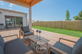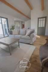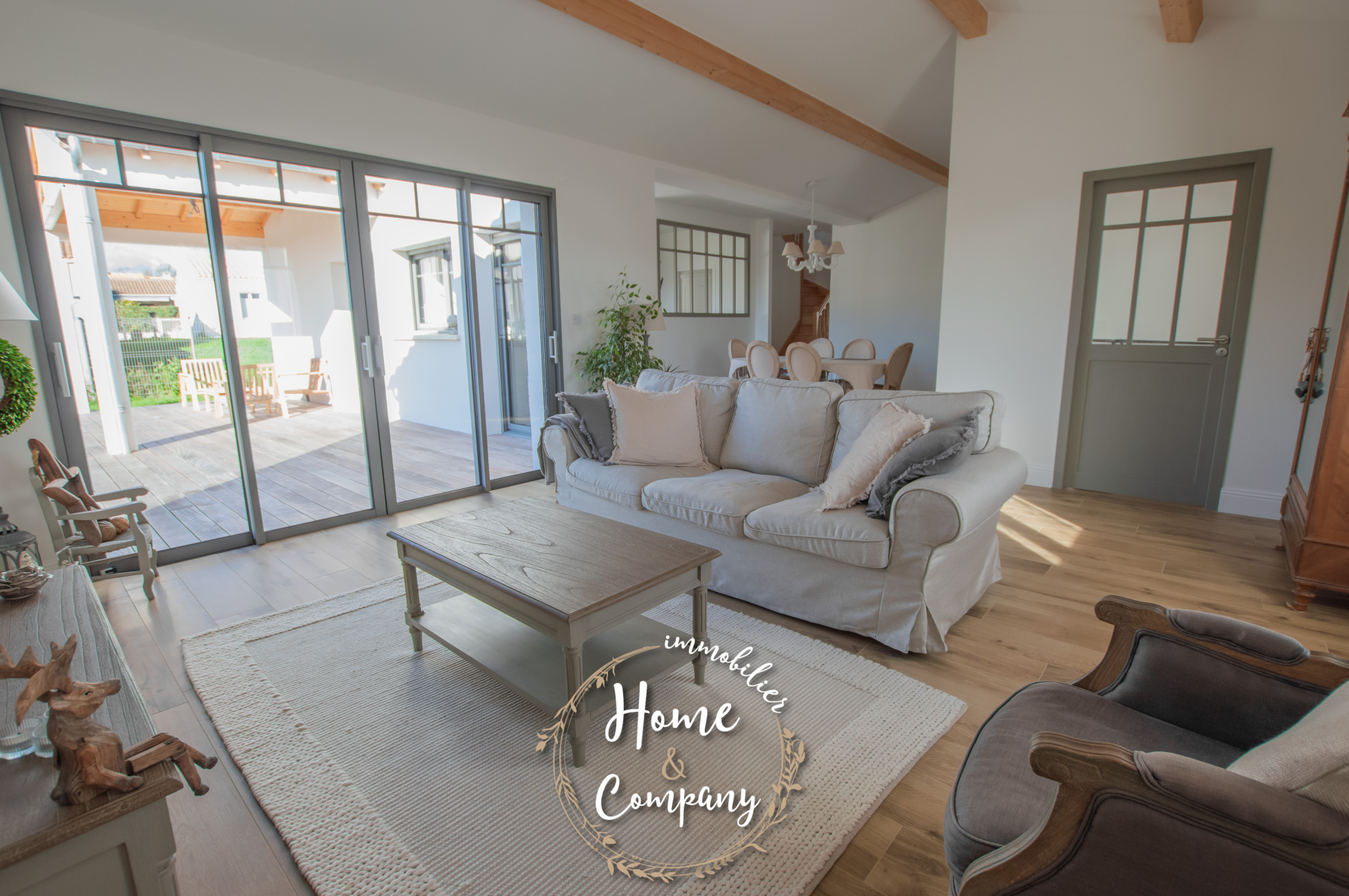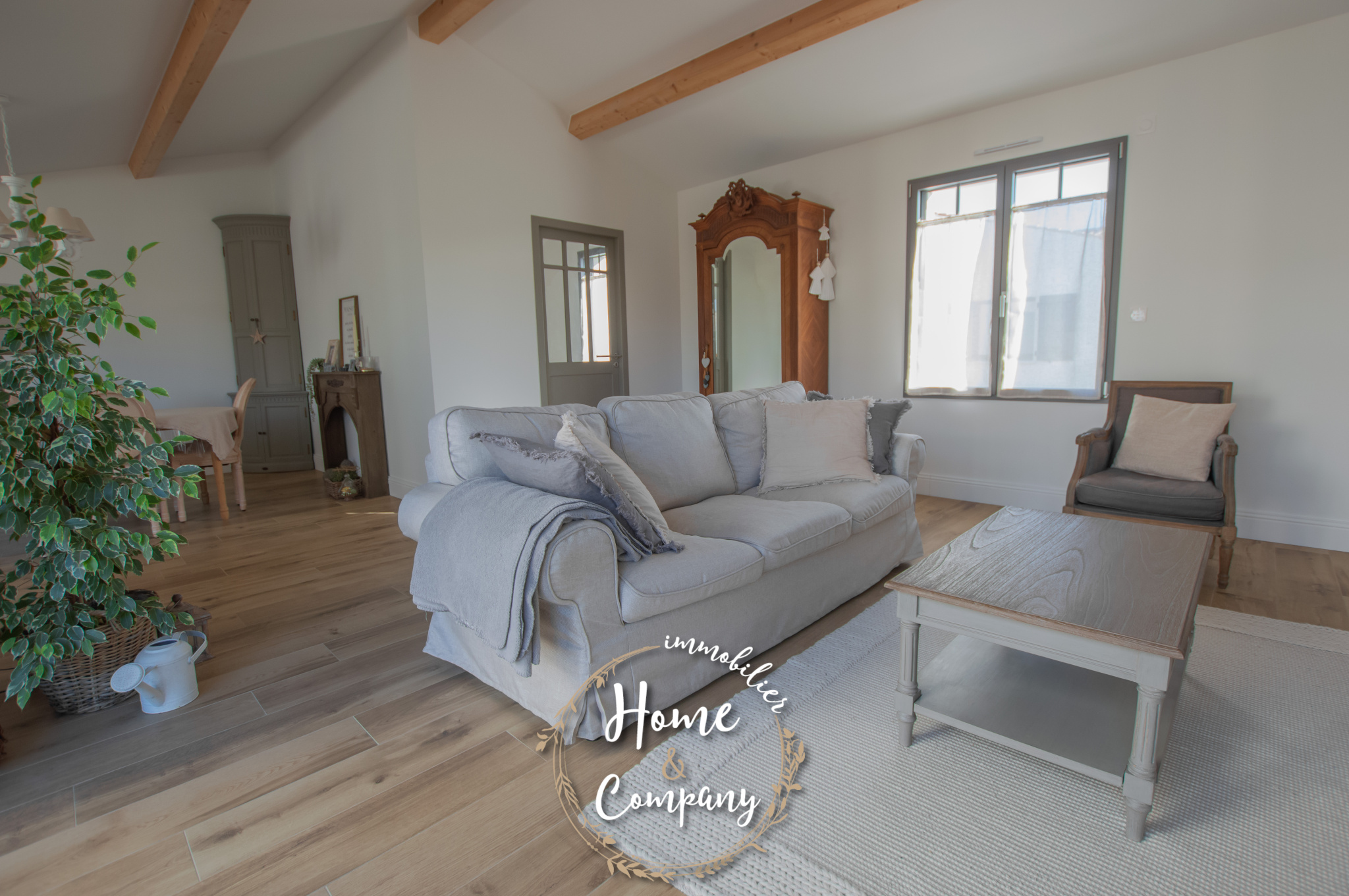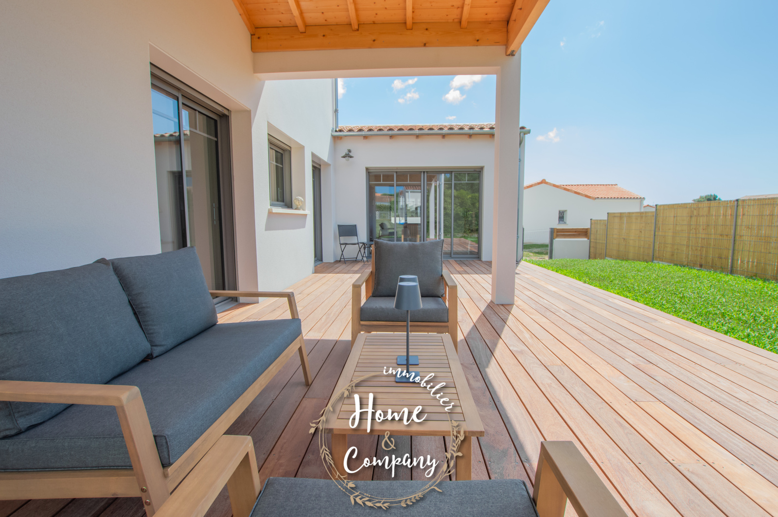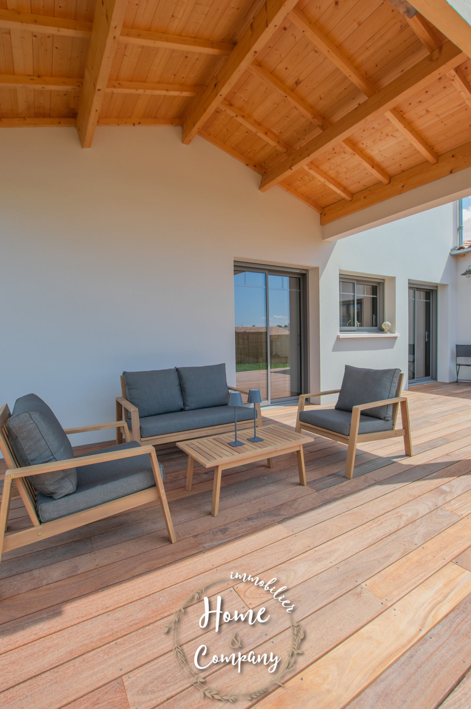 VAUX-SUR-MER - MAISON NEUVE PROCHE DU CENTRE-VILLE - Située à 800m des commerces du centre de VAUX-SUR-MER et à 1900m de la plage de Nauzan, Home & Company Immobilier vous présente en EXCLUSIVITÉ cette belle maison neuve de style rétaise aux normes RE2020, développant 142m2 habitables sur une parcelle de 400m2. Dans un environnement calme tout en étant habité à l'année, elle offre au rez-de-chaussée une entrée avec placard, une belle pièce de vie de 50m2 avec une cuisine semi-ouverte aménagée et équipée, l'ensemble ouvrant sur une terrasse dont une partie couverte qui offrira une vue reposante sur le jardin. Côté nuit, une suite parentale de 24m2 disposant d'une chambre avec placard, d'une salle d'eau et d'un espace dressing, assure une vie de plain-pied en plus d'un bureau de près de 8m2. WC indépendant. L'étage de son côté, regroupe un palier desservant 2 chambres avec placards, une salle de bains (baignoire et douche) et un WC indépendant. Un garage carrelé et isolé de 21m2 ainsi qu'un cellier ouvrant sur un patio, constituent les annexes de cette maison aux prestations soignées avec des garanties (décennale et dommage ouvrages). Cette maison judicieusement pensée vous offrira le confort et les performances énergétiques d'aujourd'hui : chauffage au sol par PAC, vide sanitaire, isolation, domotique (volets roulants), menuiseries alu Kline, débord de toit en chevron, gouttières en zinc... Stationnement privatif sur la parcelle. DONT honoraires 2,90% à la charge de l'acquéreur. Montant moyen estimé des dépenses annuelles d'énergie pour un usage standard, établi à partir des prix de l'énergie de l'année 2021, 2022 et 2023 : entre 460 € et 670€.