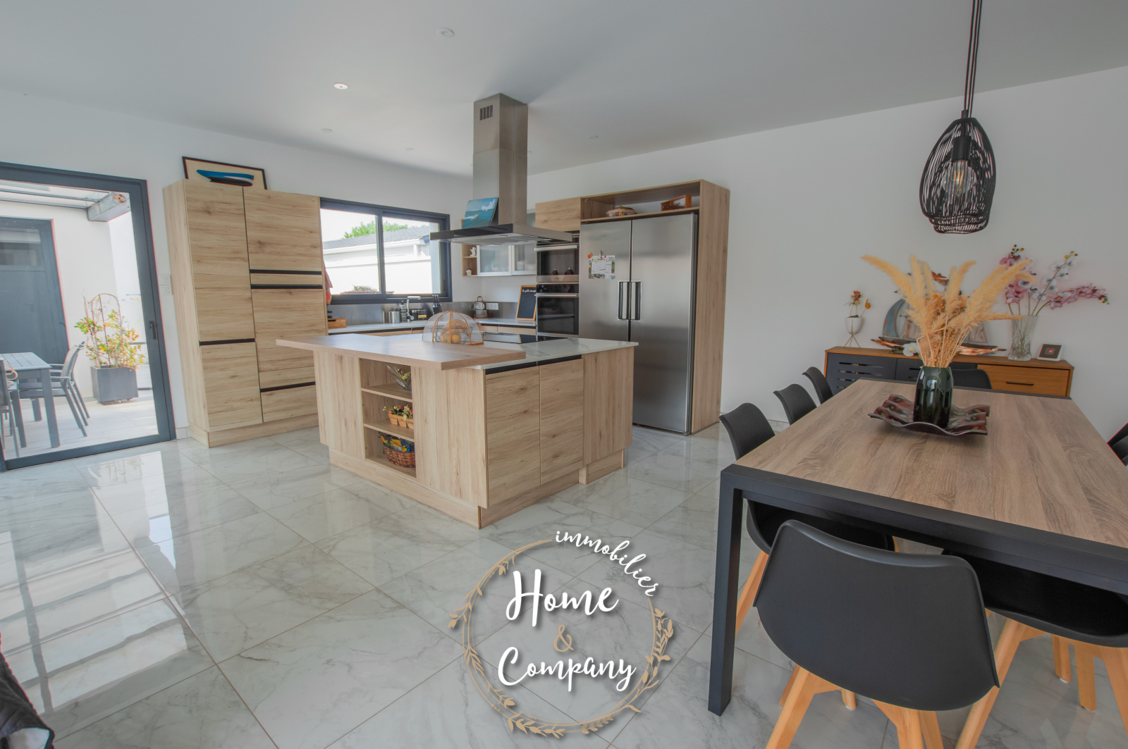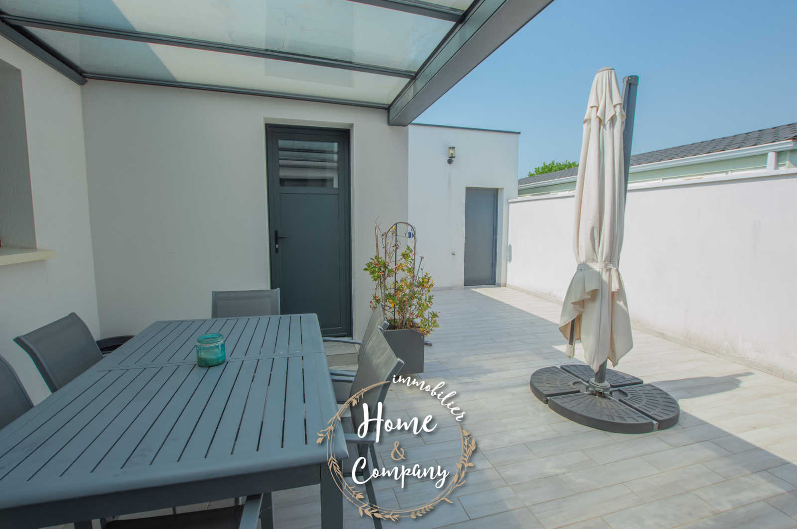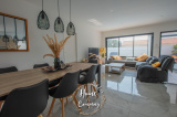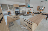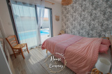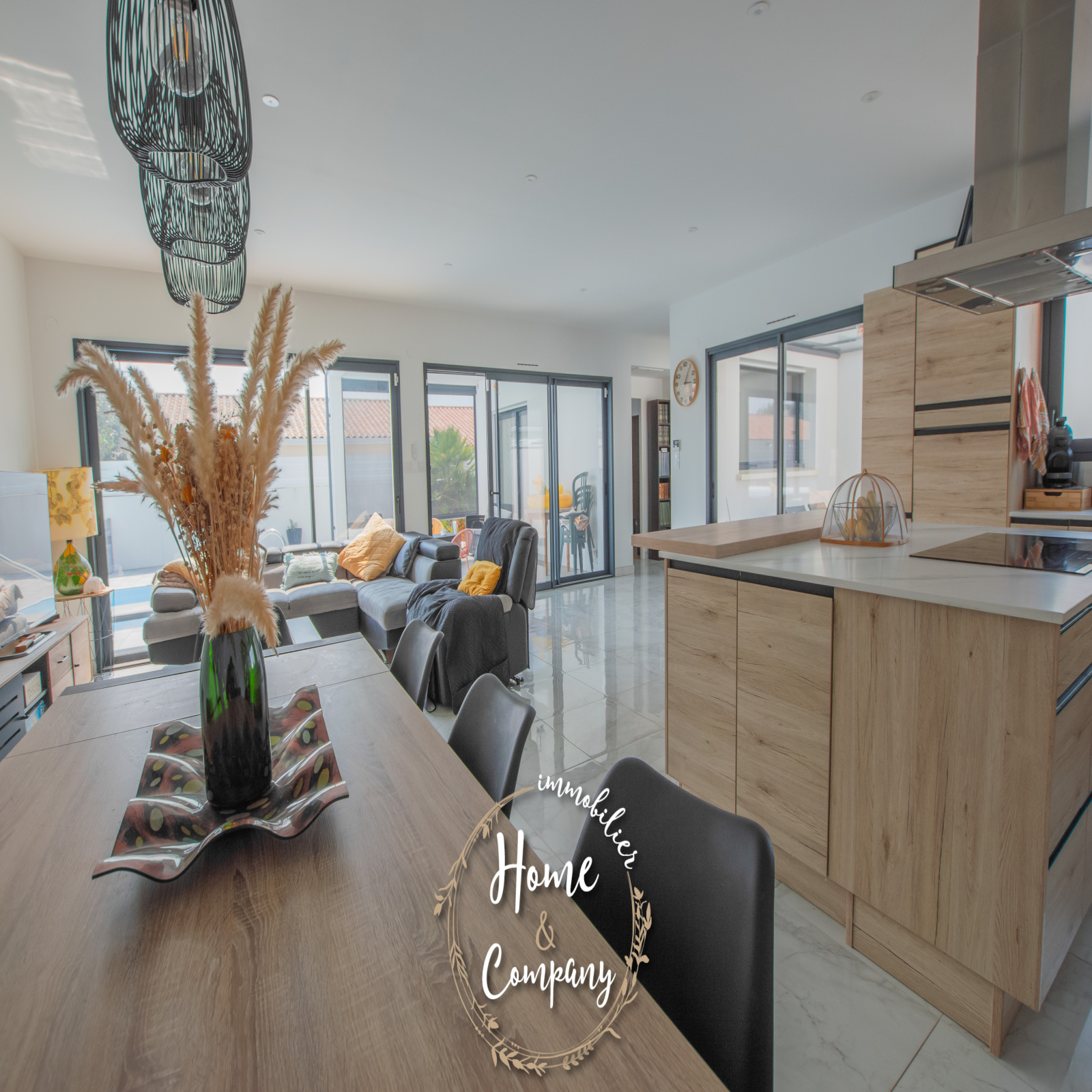 VAUX-SUR-MER - MAISON RÉCENTE CUBIQUE AVEC PISCINE - Située à moins de 2000m de la plage de Nauzan et à moins de 1000m des commerces de VAUX SUR MER, Home & Company Immobilier vous présente en EXCLUSIVITÉ cette agréable maison récente aux normes RT2012 de plain-pied offrant une superficie habitable de 145m2 sur une parcelle de 875m2. Judicieusement pensée et tournée vers ses différents pôles extérieurs, elle saura vous offrir un véritable confort de vie. Dès l'entrée passée, cette maison dévoile une belle pièce de vie de 57m2 baignée de lumière grâce à ses nombreuses ouvertures donnant sur une jolie terrasse dont une partie est couverte. La cuisine ouverte de bonne facture faisant partie intégrante de cette pièce de vie est aménagée et équipée ouvrant sur un patio. Côté nuit, une première partie est composée d’une belle suite parentale de 20m2 disposant d'une chambre, d'une salle d'eau avec WC et d’un dressing. WC indépendant au niveau de l’entrée. En opposition la deuxième partie nuit composée de 3 chambres avec placards dont deux ouvrant sur la terrasse, une salle de bains avec baignoire et douche ainsi qu’un WC. Le jardin est agrémenté d'une piscine (8x4m) chauffée par PAC. Un cellier et un garage de 24m2 constituent les annexes de cette jolie maison. De bonnes prestations sont assurées : accès motorisés, chauffage au sol par PAC... Du stationnement privatif est assuré pour cette maison aboutie. Visite virtuelle sur le site de l'agence Home & Company immobilier. DONT honoraires 3,89% à la charge de l'acquéreur. Montant moyen estimé des dépenses annuelles d'énergie pour un usage standard, établi à partir des prix de l'énergie de l'année 2021, 2022 et 2023 : entre 580€ et 820€.