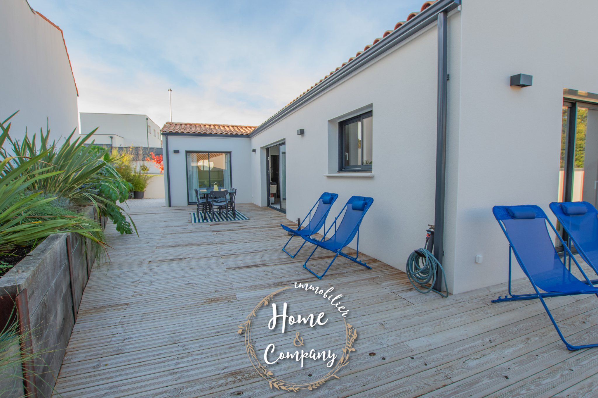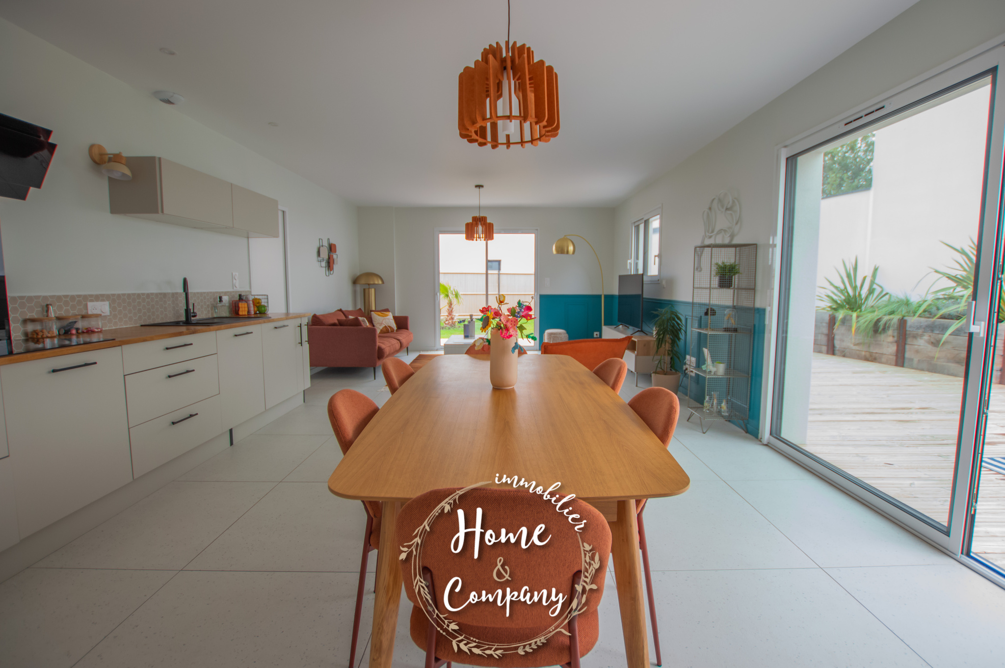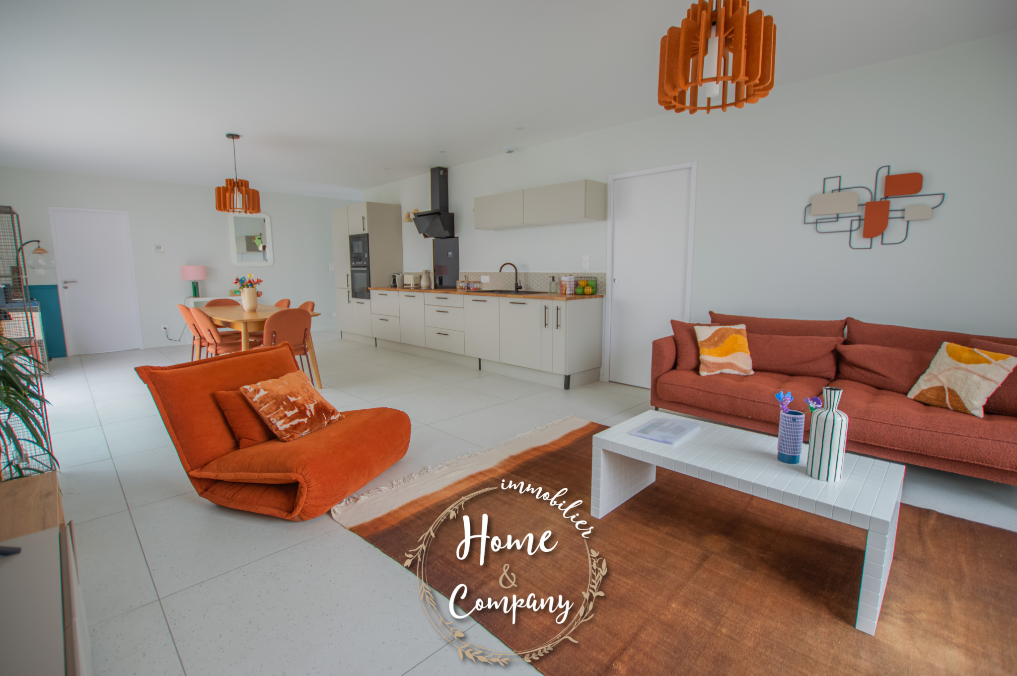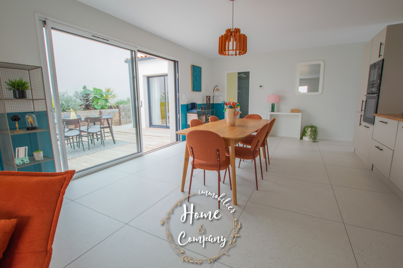 VAUX-SUR-MER - MAISON LUMINEUSE DE PLAIN-PIED - Située proche du centre-ville de VAUX-SUR-MER, Home & Company Immobilier vous présente cette maison de 2024 sous garanties offrant une superficie habitable de 99m2 sur une parcelle de 468m2. Baignée de lumière, elle dévoile une fois l'entrée passée une très belle pièce de vie de 52m2 intégrant une cuisine aménagée et équipée. Ce séjour ouvre par différents accès sur une terrasse en bois exposée SE et SO ainsi que sur le jardin aménagé. Côté nuit, une première partie offre une chambre et une salle d'eau. Puis en opposition, un dégagement vient desservir 2 autres chambres dont une avec placard, une salle d'eau et un WC indépendant. Le jardin bénéficie d'un SPA pour se détendre et une piscine pourrait trouver sa place. Garage et stationnement privatif. DONT honoraires 4% à la charge de l'acquéreur (délégation de mandat). Montant moyen des dépenses annuelles d'énergie pour un usage standard, établi à partir des prix de l'année 2021, 2022, 2023 : entre 420€ et 610€.