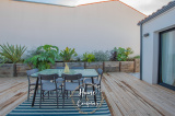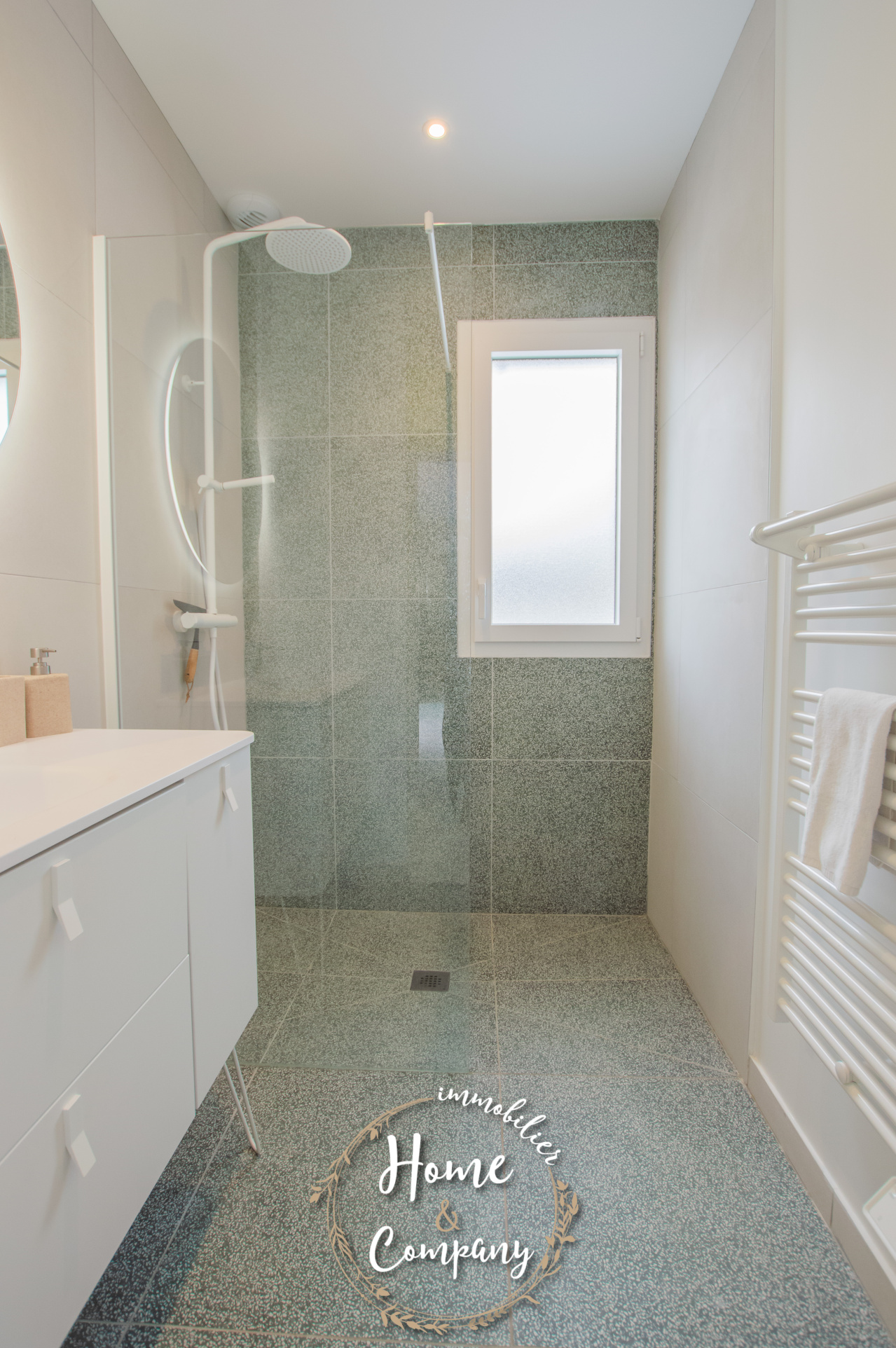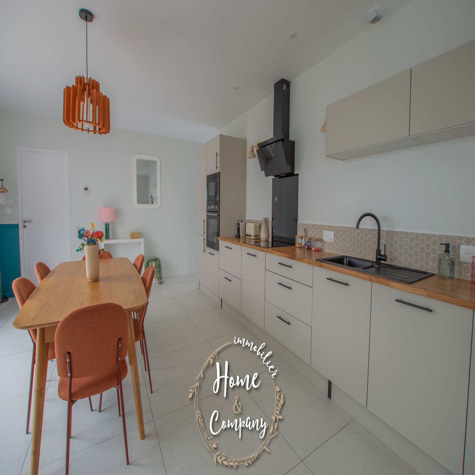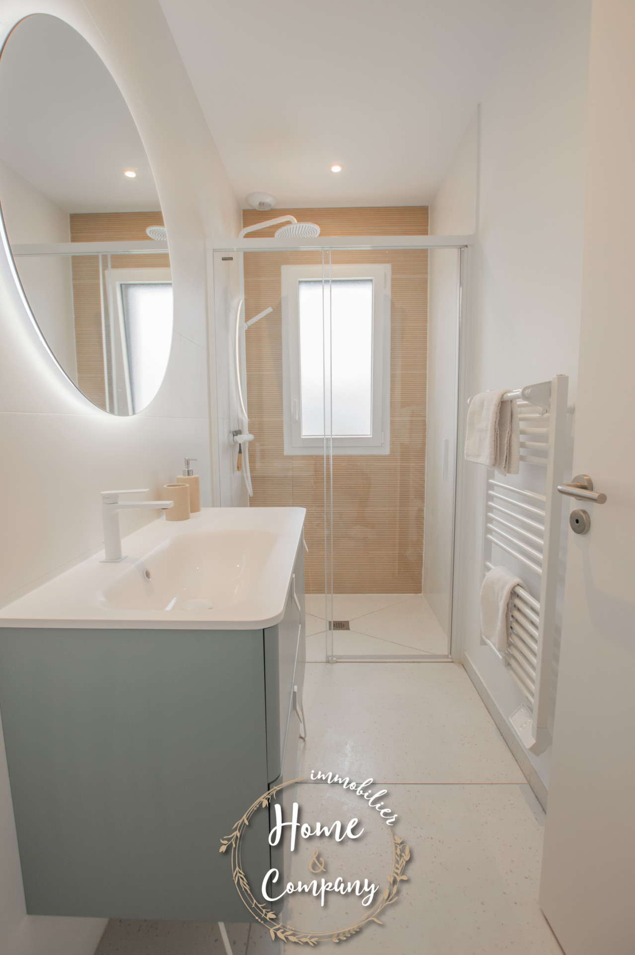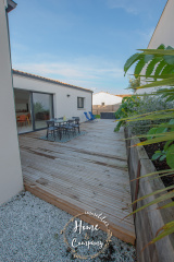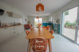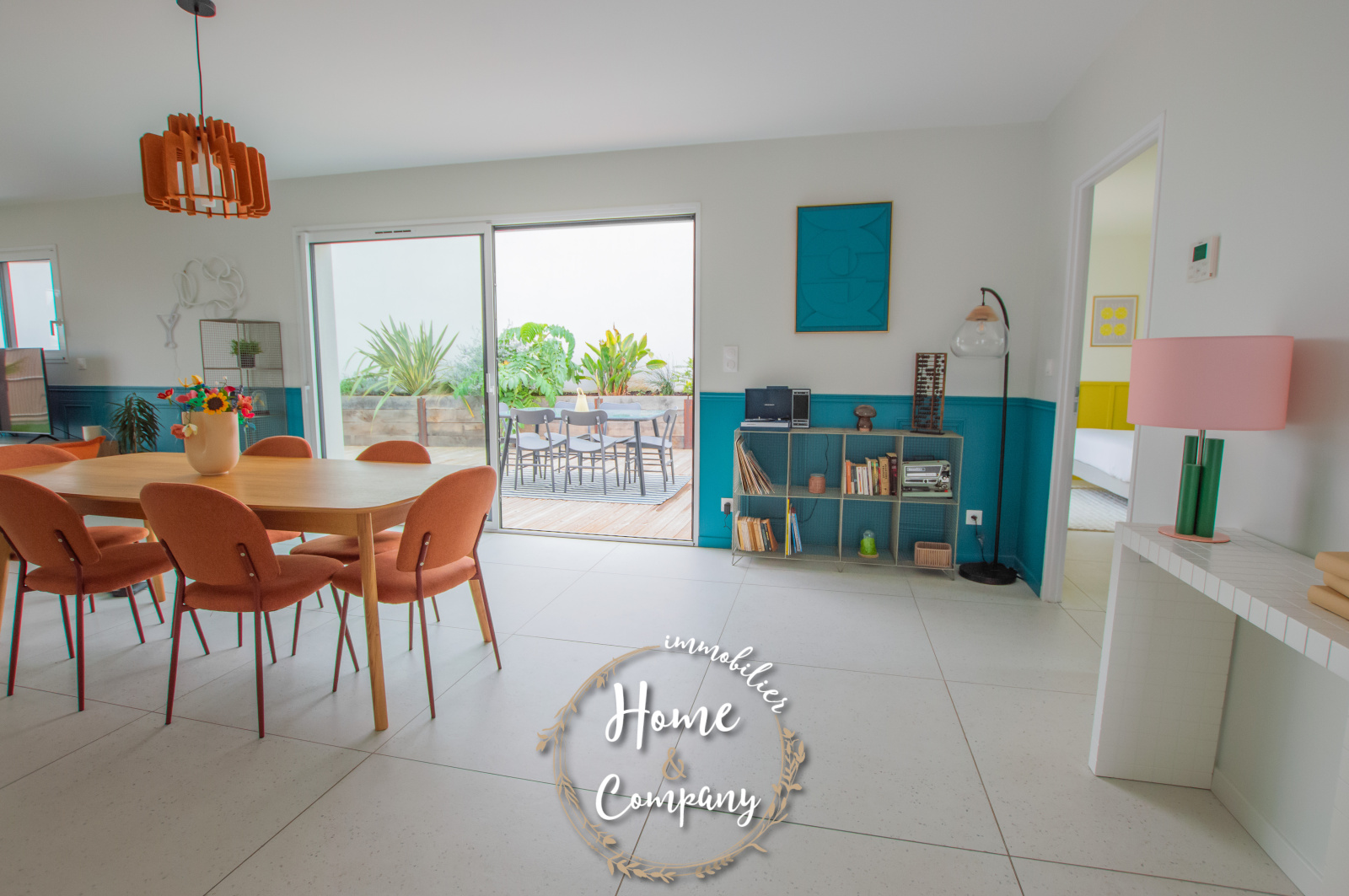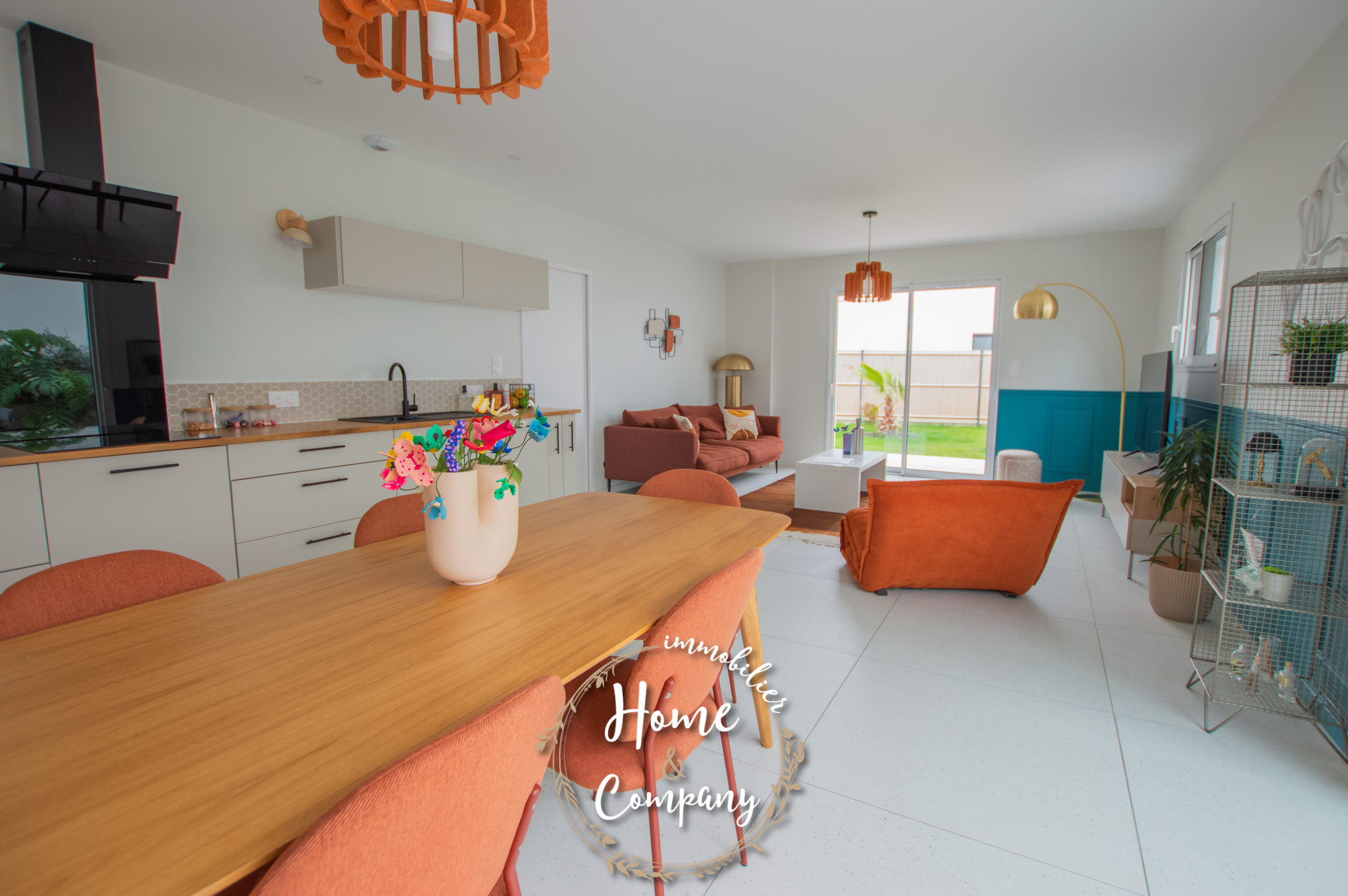 VAUX-SUR-MER - MAISON LUMINEUSE DE PLAIN-PIED - Située proche du centre-ville de VAUX-SUR-MER, Home & Company Immobilier vous présente cette maison de 2024 sous garanties offrant une superficie habitable de 99m2 sur une parcelle de 468m2. Baignée de lumière, elle dévoile une fois l'entrée passée une très belle pièce de vie de 52m2 intégrant une cuisine aménagée et équipée. Ce séjour ouvre par différents accès sur une terrasse en bois exposée SE et SO ainsi que sur le jardin aménagé. Côté nuit, une première partie offre une chambre et une salle d'eau. Puis en opposition, un dégagement vient desservir 2 autres chambres dont une avec placard, une salle d'eau et un WC indépendant. Le jardin bénéficie d'un SPA pour se détendre et une piscine pourrait trouver sa place. Garage et stationnement privatif. DONT honoraires 4% à la charge de l'acquéreur (délégation de mandat). Montant moyen des dépenses annuelles d'énergie pour un usage standard, établi à partir des prix de l'année 2021, 2022, 2023 : entre 420€ et 610€.