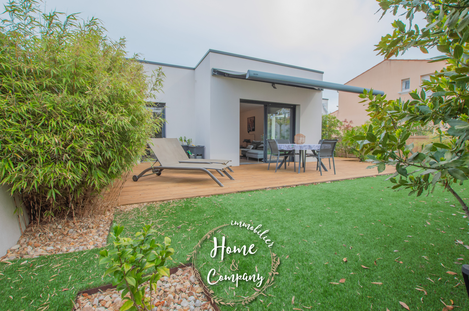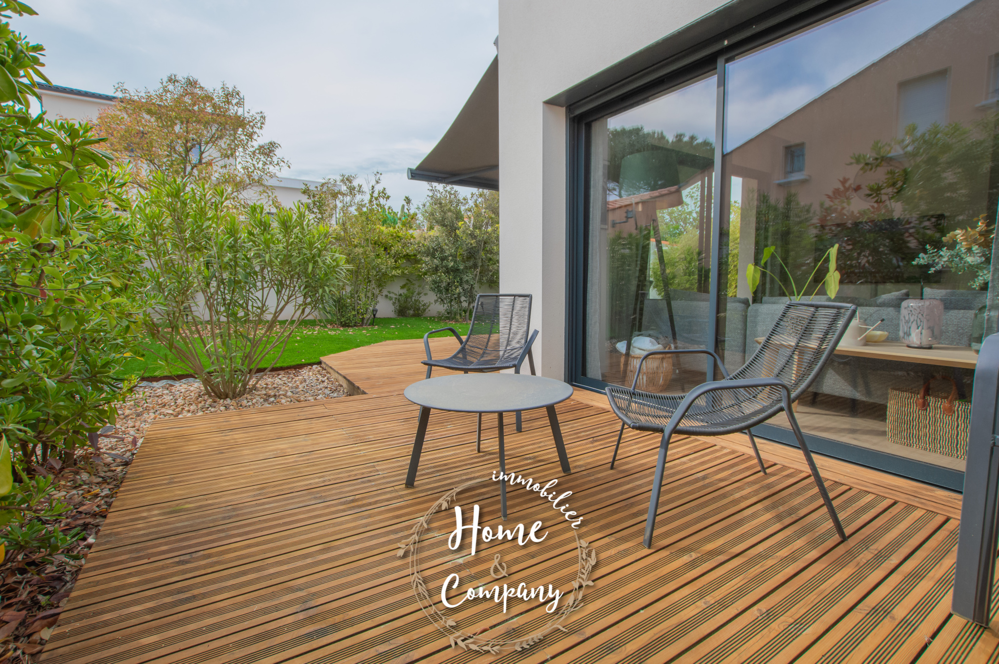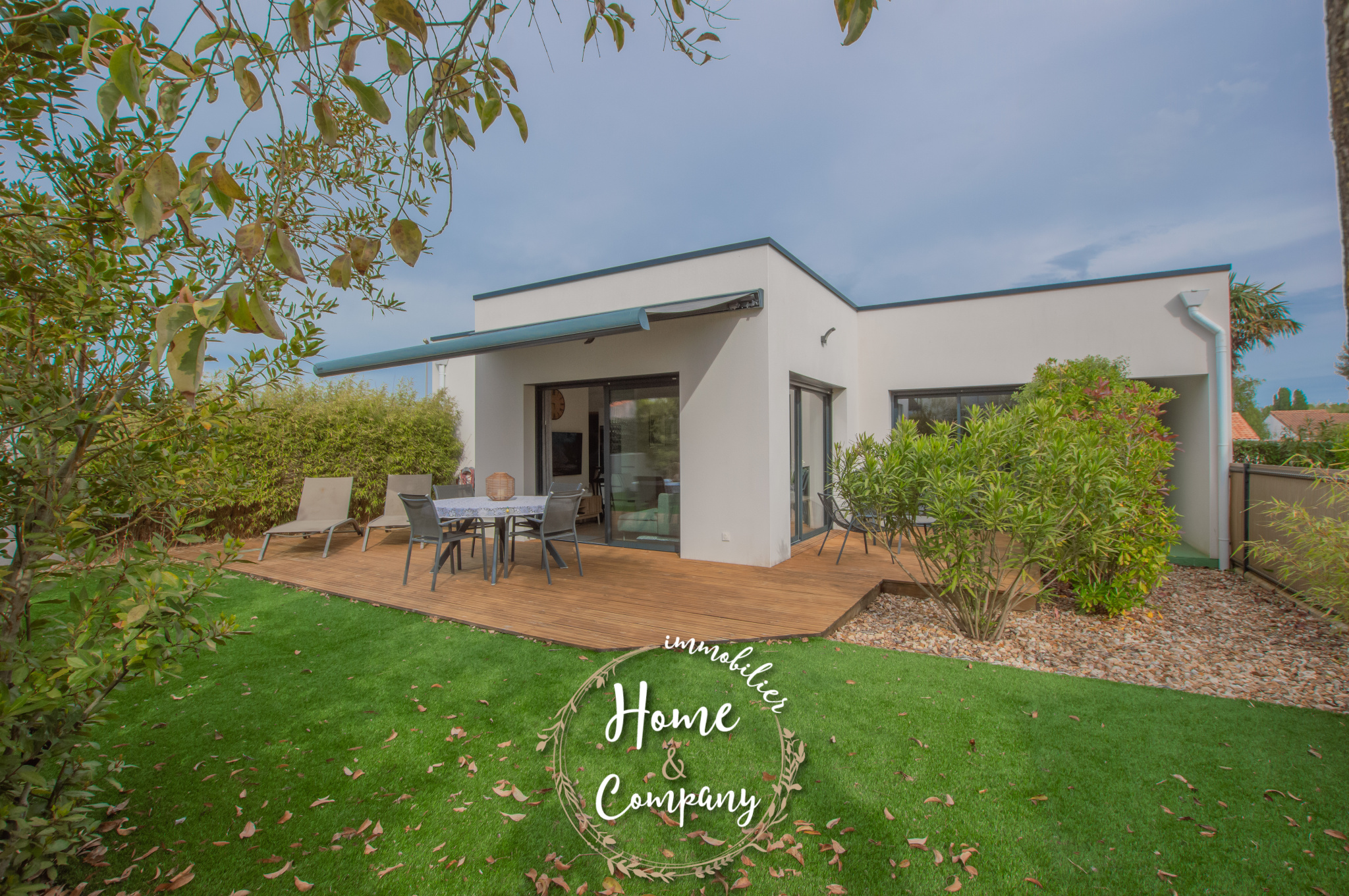 VAUX-SUR-MER - MAISON RÉCENTE DE PLAIN-PIED - Située à moins de 1600m de la plage de Pontaillac et à moins de 750m des commerces du centre-ville de VAUX-SUR-MER, Home & Company Immobilier vous présente cette belle maison récente de plain-pied aux normes RT2012 offrant une superficie habitable de 97m2 sur une parcelle de 348m2. Baignée de lumière, elle dévoile une fois l'entrée passée une très belle pièce de vie de 39m2 intégrant une cuisine aménagée et équipée. Ce séjour ouvre par différents accès sur une terrasse en bois exposée Ouest avec store banne électrique. Côté nuit, une première partie offre deux chambres et une salle d'eau avec WC.Puis en opposition, une chambre parentale ouvrant sur terrasse avec salle d'eau privative et dressing. Un WC indépendant. Un cellier, un garage en sous-sol de 25m2 et stationnement privatif constituent les annexes de cette jolie maison. Côté jardin, celui-ci est entièrement clos et propose différents pôles joliment aménagés.De bonnes performances énergétiques sont assurées grâce notamment au chauffage au sol par PAC, l'isolation... DONT honoraires 3,85% à la charge de l'acquéreur. DPE en cours.