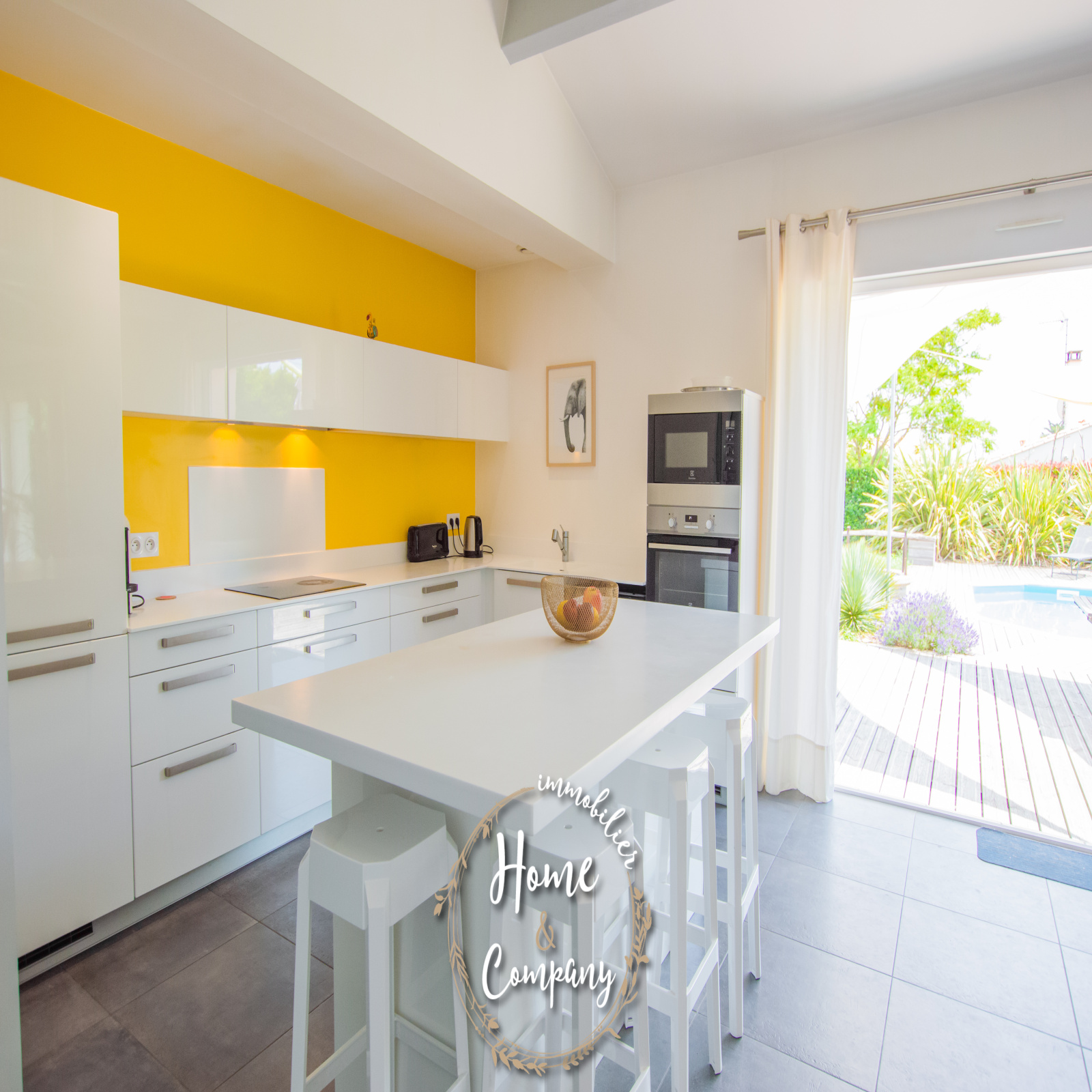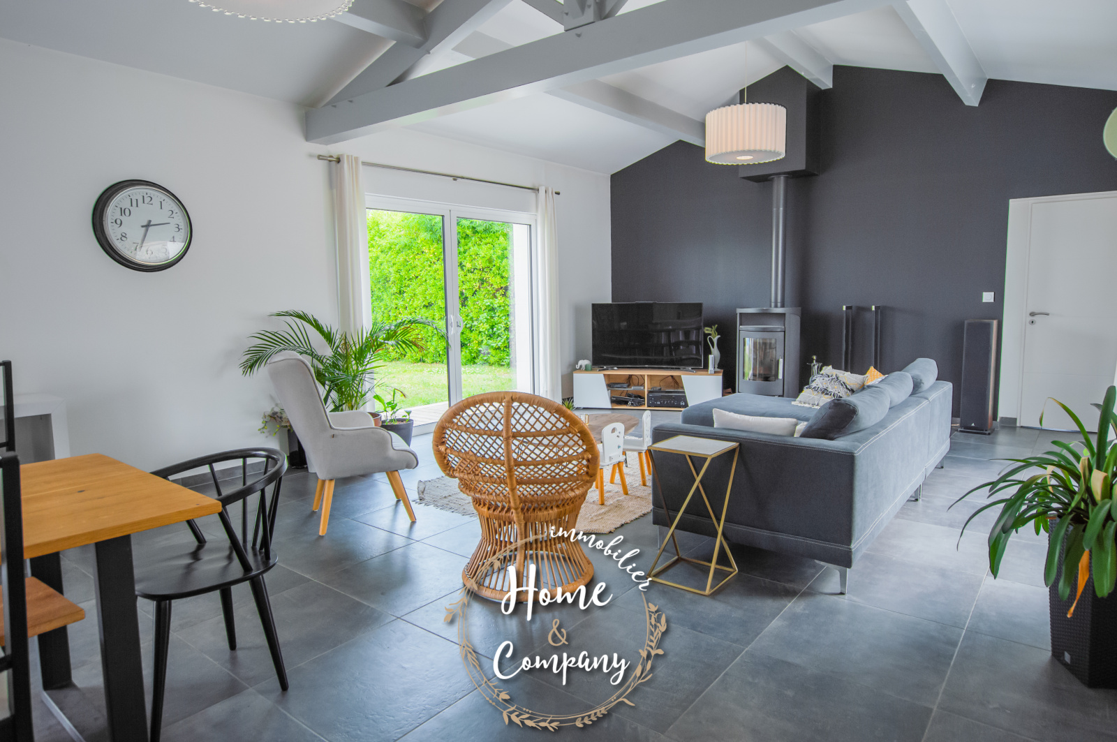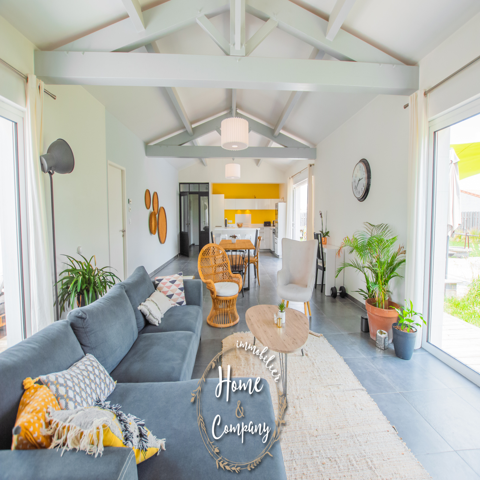 MEDIS - MAISON DE PLAIN-PIED ESPRIT RETAISE - Située proche des commerces du centre bourg de MEDIS, Home & Company Immobilier vous présente en EXCLUSIVITE cette jolie maison aux notes Rétaises développant de plain-pied 173m2 habitables sur une parcelle de 1075m2. L'entrée avec placard faisant office de vestiaire, dévoile par une porte esprit loft, un spacieux séjour de 69m2 avec une belle hauteur sous plafond laissant apparaître des poutres. Ce séjour tourné vers ses extérieurs donne accès par des baies à galandage, à votre convenance, sur un patio intime ou sur une terrasse avec en continuité le jardin et la piscine chauffée. Une cuisine ouverte de type dinatoire complète la pièce de vie. Côté nuit, une chambre parentale avec sa salle de bains/douche est complétée par une seconde partie nuit composée de 3 autres chambres, une salle d'eau et un WC indépendant. Un second WC se trouve dans l'entrée. Une lingerie et un garage de 32m2 constituent les annexes de cette maison où règne une atmosphère très plaisante avec en plus de beaux volumes, des espaces conviviaux pour recevoir. Stationnement privatif sur la parcelle. DONT honoraires 3,90% à la charge de l'acquéreur. Plus de photos et visite virtuelle sur le site de l'agence Home & Company Immobilier.