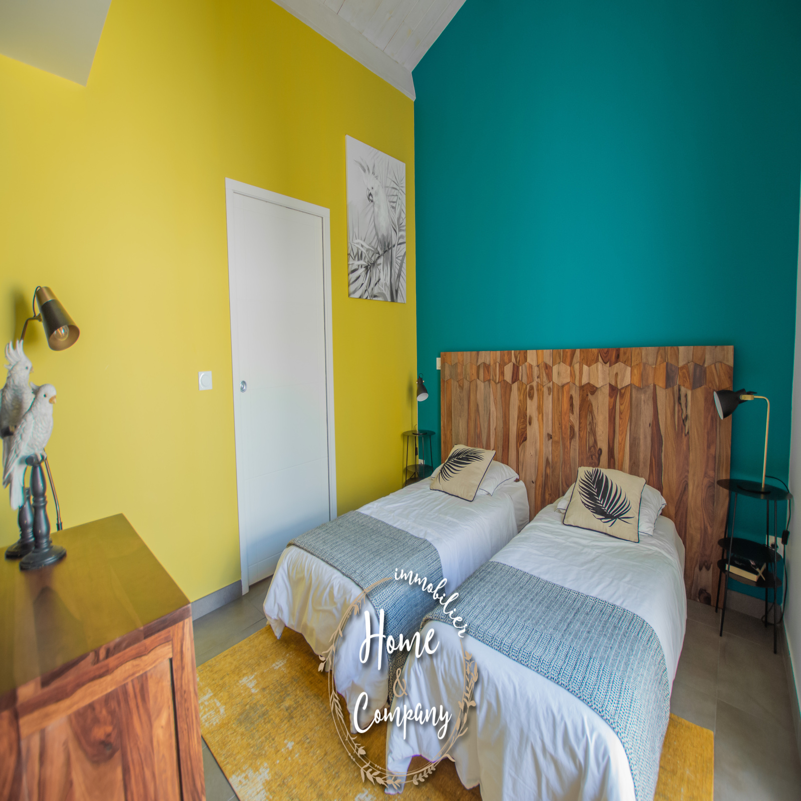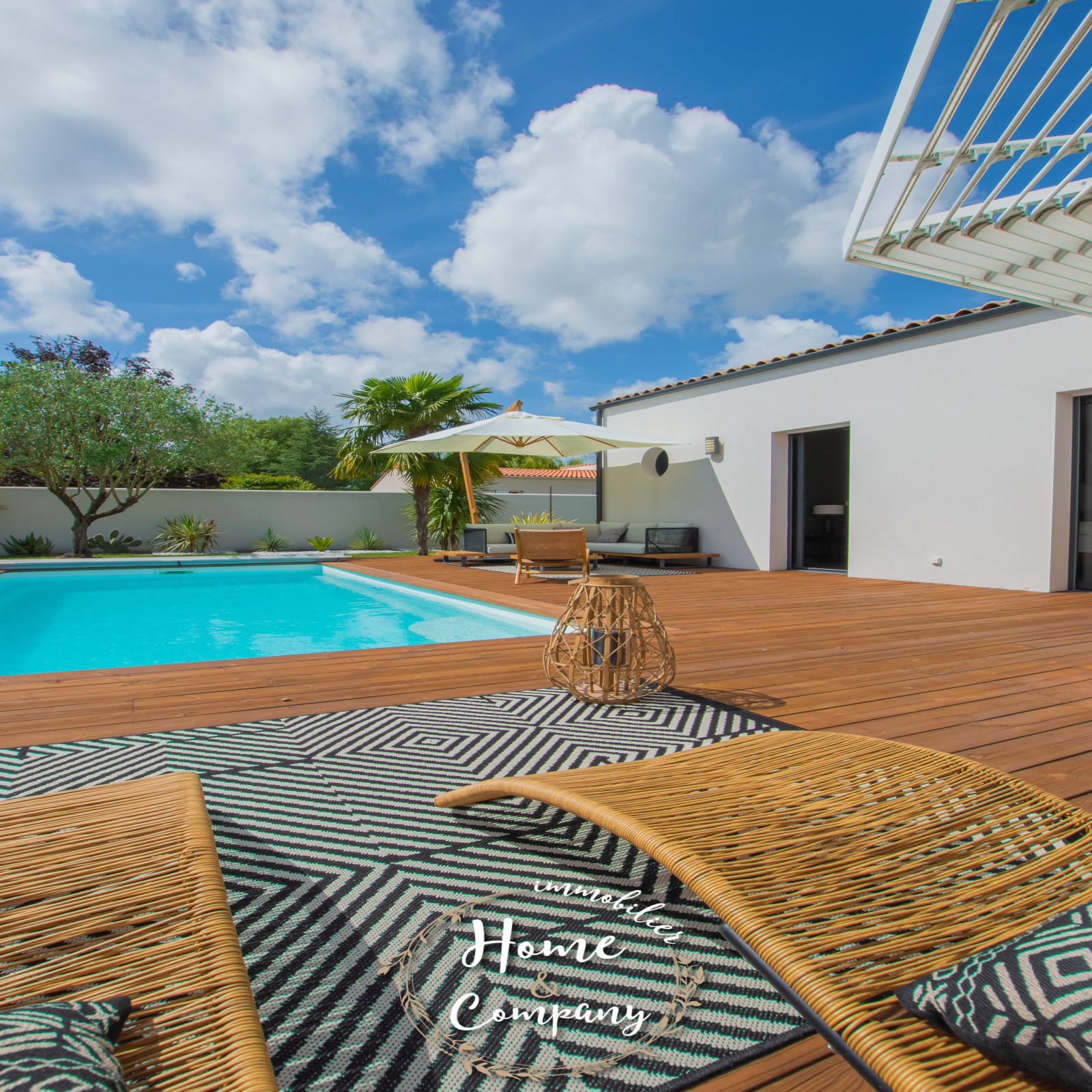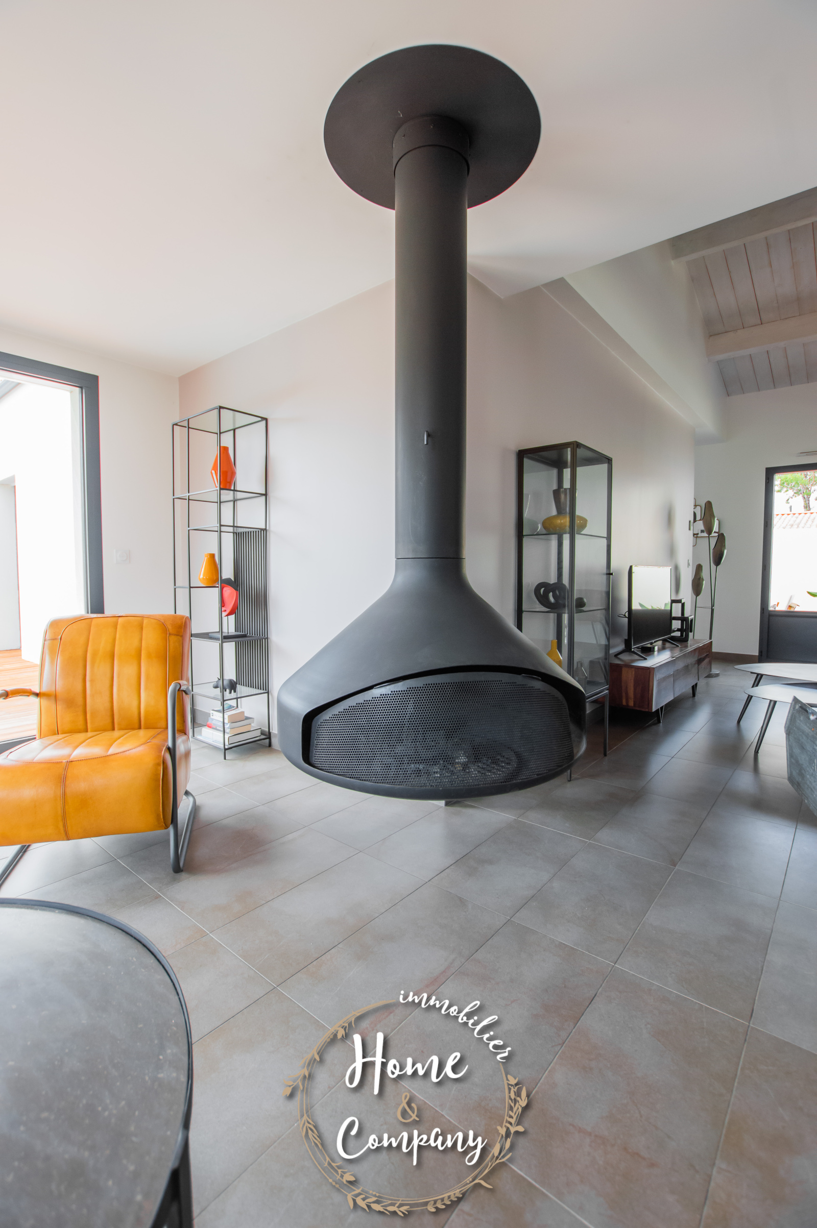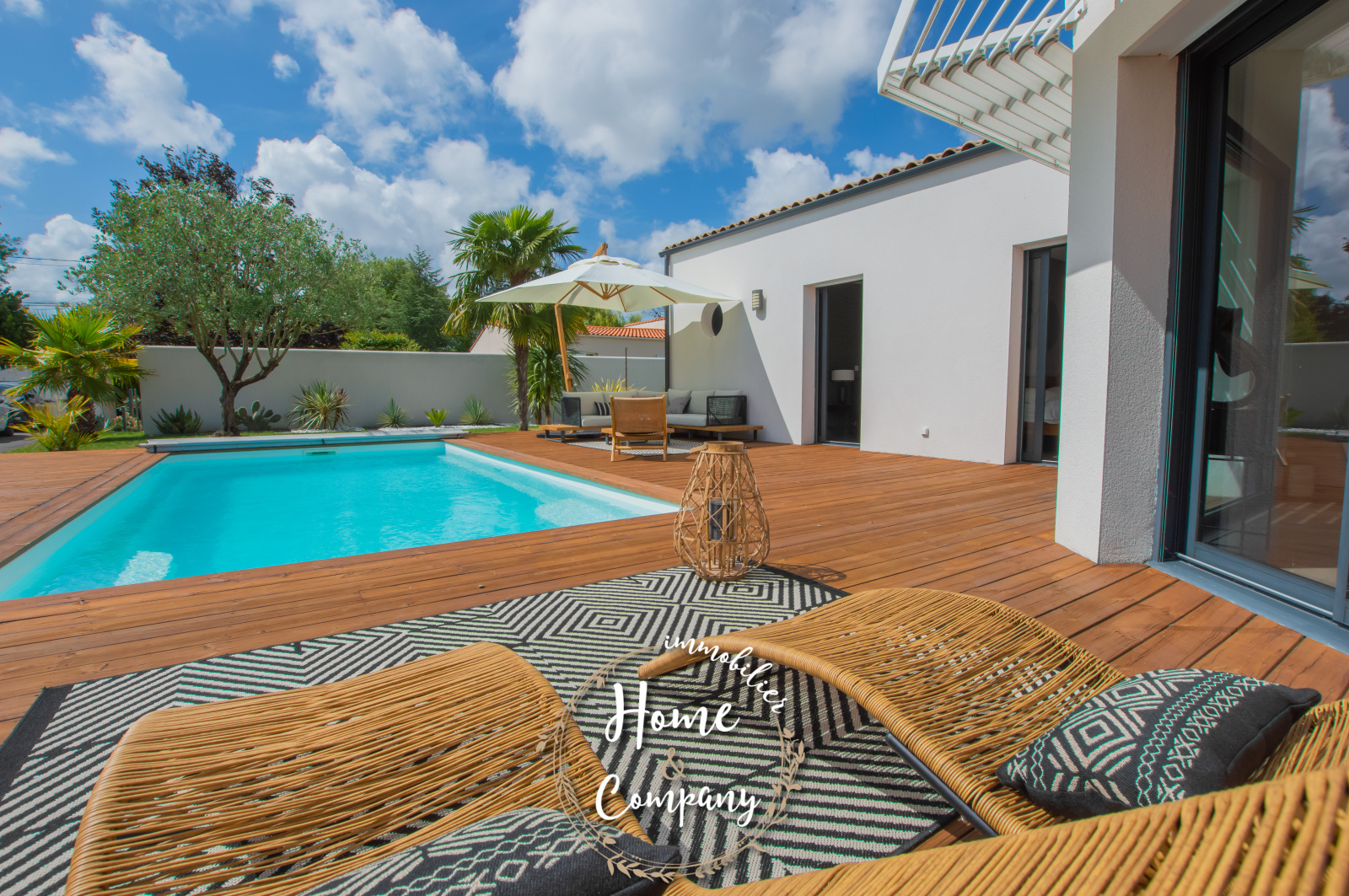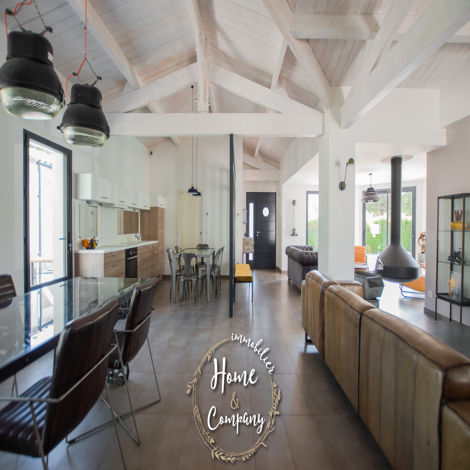 MEDIS - MAISON RECENTE DE PLAIN-PIED AVEC PISCINE - Située à 1200m des commerces du centre-ville de MEDIS, dans un environnement calme et habité à l'année, Home & Company Immobilier vous présente cette magnifique maison de 159 m2 habitables entièrement de plain-pied, en excellent état sur un terrain de 823 m2. Principalement orientée vers ses extérieurs avec de nombreux pôles, cette maison très lumineuse offre une belle pièce de vie de 72 m2 avec poêle à bois suspendu comprennant une cuisine ouverte aménagée et équipée. Le séjour ouvre au choix, soit sur une terrasse en bois avec piscine, soit sur 2 patios permettant de profiter du jardin à chaque moment de la journée. Côté nuit, elle se compose de 2 suites parentales (avec salle d'eau, WC, dressing) et de 2 autres chambres avec chacune une salle d'eau privative et WC. WC indépendant au niveau de l'entrée. Un garage de 40m2, un cellier et une buanderie constituent les annexes de cette maison où l'on retrouve une belle hauteur sous plafond et un très beau jardin paysagé. Stationnement aisé sur la parcelle. Prestations de qualité (chauffage au sol électrique, volets roulants motorisés, baie alu à galandage...). DONT honoraires 3,90% à la charge de l'acquéreur. Montant moyen estimé des dépenses annuelles d'énergie pour un usage standard, établi à partir des prix de l'énergie de l'année 2021 : entre 1420€ et 1970€.