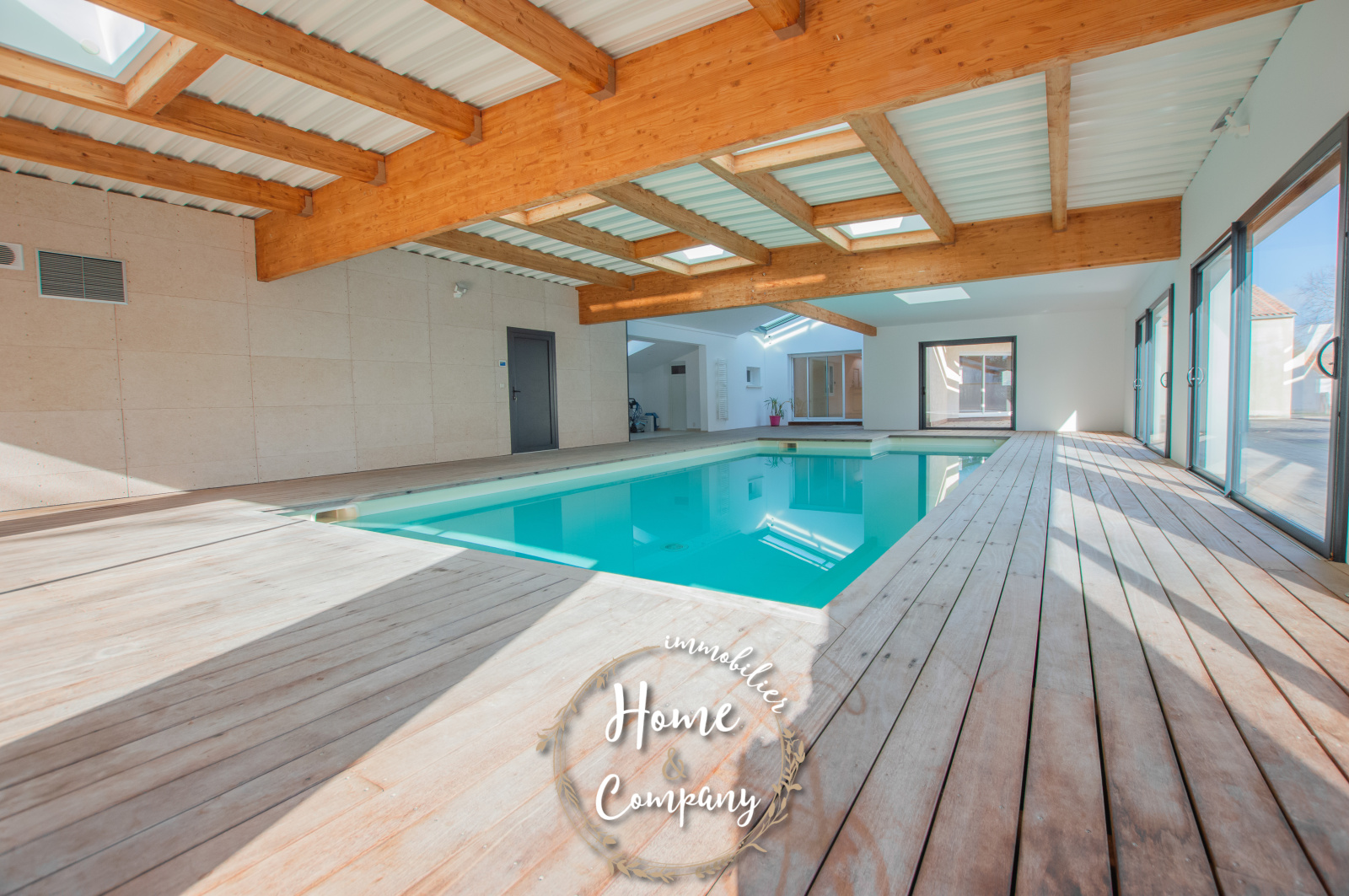 ETAULES - MAISON DE PLAIN-PIED AVEC PISCINE COUVERTE - Située au calme, à moins de 1400m des commerces du centre-ville d'ETAULES, Home & Company Immobilier vous présente cette maison atypique, de plain-pied, offrant une superficie habitable de 154m2 sur une parcelle de 1800m2. Elle offre une entrée avec placard, un séjour de 65m2 avec une cuisine ouverte le tout ouvrant sur une belle terrasse de 150m2. Le côté nuit regroupe 3 chambres, une salle d'eau et un WC indépendant. Un cellier, une buanderie avec douche/WC et un garage de 42m2 constituent les annexes de cette maison. Une superbe piscine couverte de 187m2 réalisée par un architecte agrémente le côté convivial de cette habitation avec en complément, une cuisine d'été offrant une jolie vue sur le jardin boisé. De bonnes prestations sont assurées : chauffage au sol par PAC, aspiration centralisée, volet roulants électriques avec centralisation... Plus de photos et visite virtuelle sur le site de l'agence Home & Company immobilier. DONT honoraires 3,89% à la charge de l'acquéreur. Montant moyen estimé des dépenses annuelles d'énergie pour un usage standard, établi à partir des prix de l'énergie de l'année 2021 : entre 1240€ et 1678€.