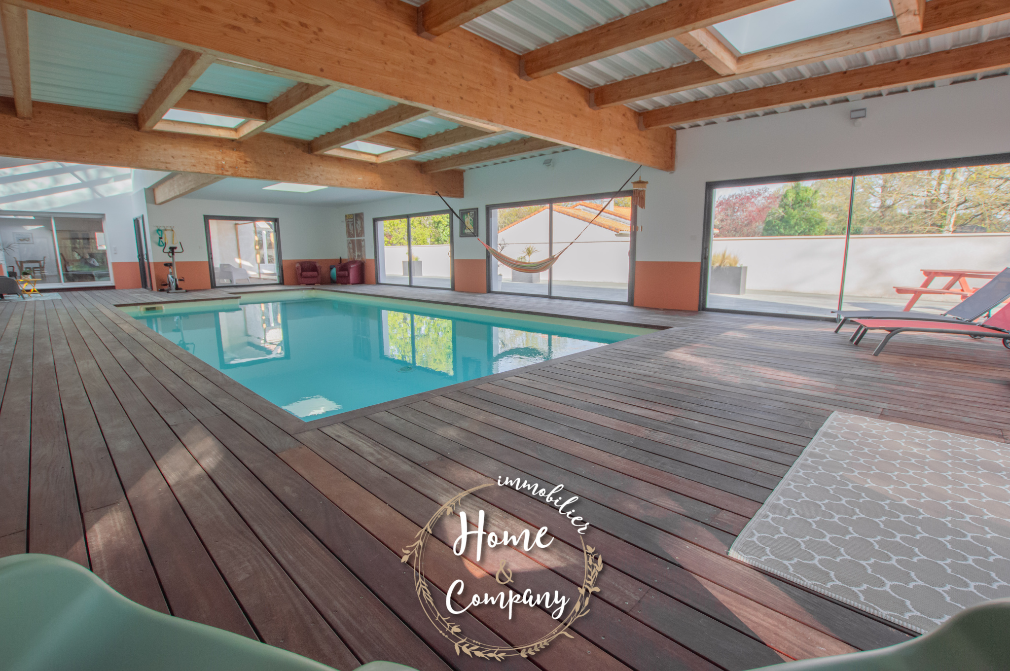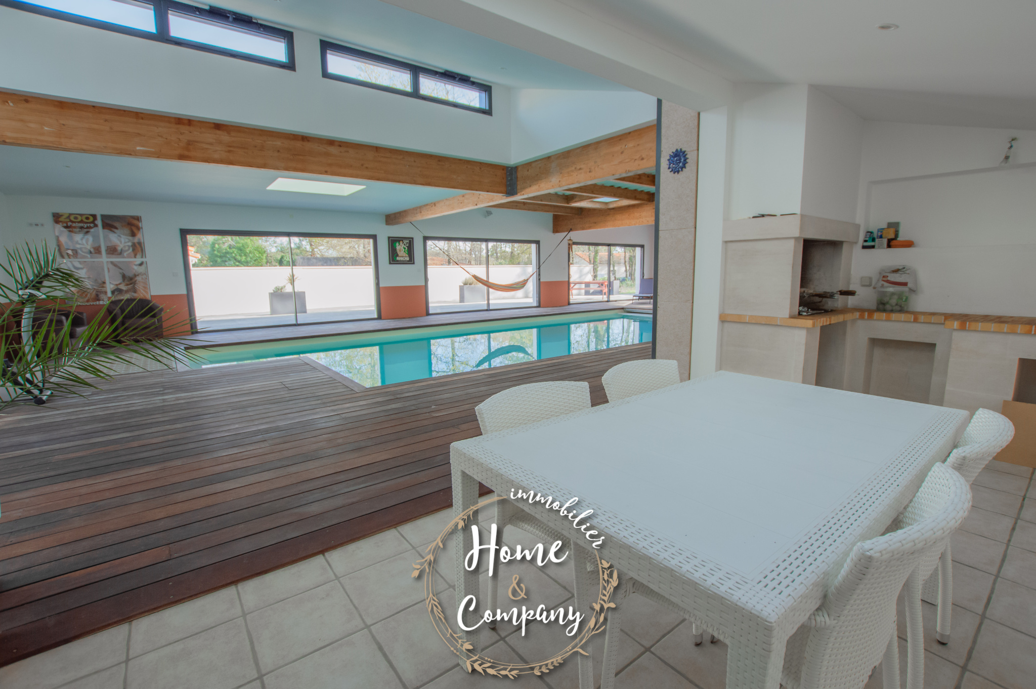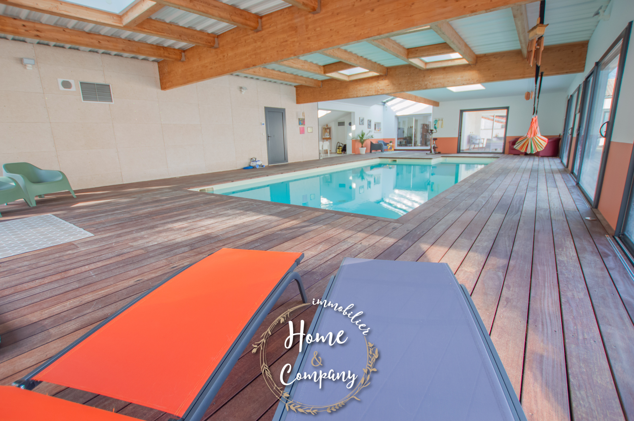 ETAULES - MAISON DE PLAIN-PIED AVEC PISCINE COUVERTE - Située au calme, à moins de 1400m des commerces du centre-ville d'ETAULES, Home & Company Immobilier vous présente cette maison atypique, de plain-pied, offrant une superficie habitable de 154m2 sur une parcelle de 1800m2. Elle offre une entrée avec placard, un séjour de 65m2 avec une cuisine ouverte le tout ouvrant sur une belle terrasse de 150m2. Le premier côté nuit regroupe 3 chambres, une salle d'eau et un WC indépendant. En opposition on retrouve une chambre avec une salle d'eau/WC et un bureau. Un cellier/buanderie et un garage de 42m2 constituent les annexes de cette maison. Une superbe piscine couverte de 187m2 réalisée par un architecte agrémente le côté convivial de cette habitation avec en complément, une cuisine d'été offrant une jolie vue sur le jardin boisé. De bonnes prestations sont assurées : chauffage au sol par PAC, aspiration centralisée, volet roulants électriques avec centralisation... DONT honoraires 3,89% à la charge de l'acquéreur. Montant moyen estimé des dépenses annuelles d'énergie pour un usage standard, établi à partir des prix de l'énergie de l'année 2021 : entre 1240€ et 1678€.