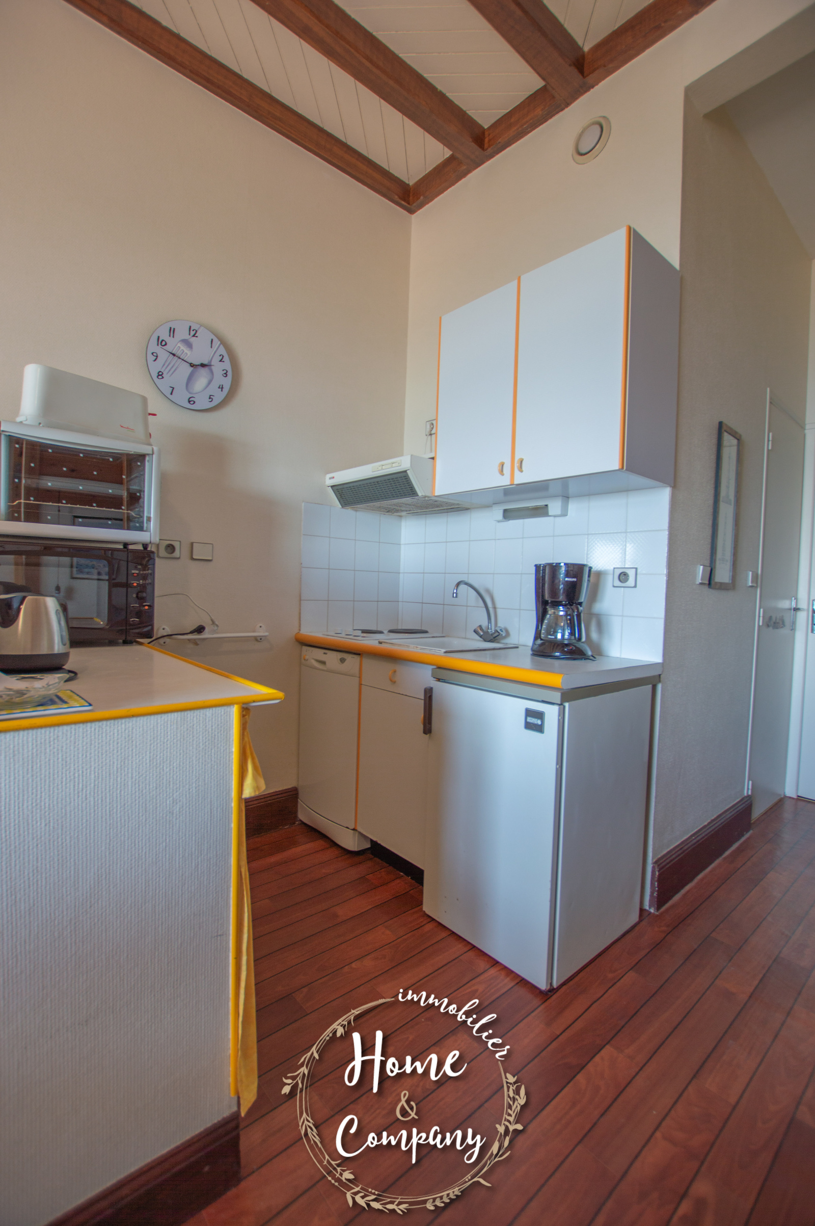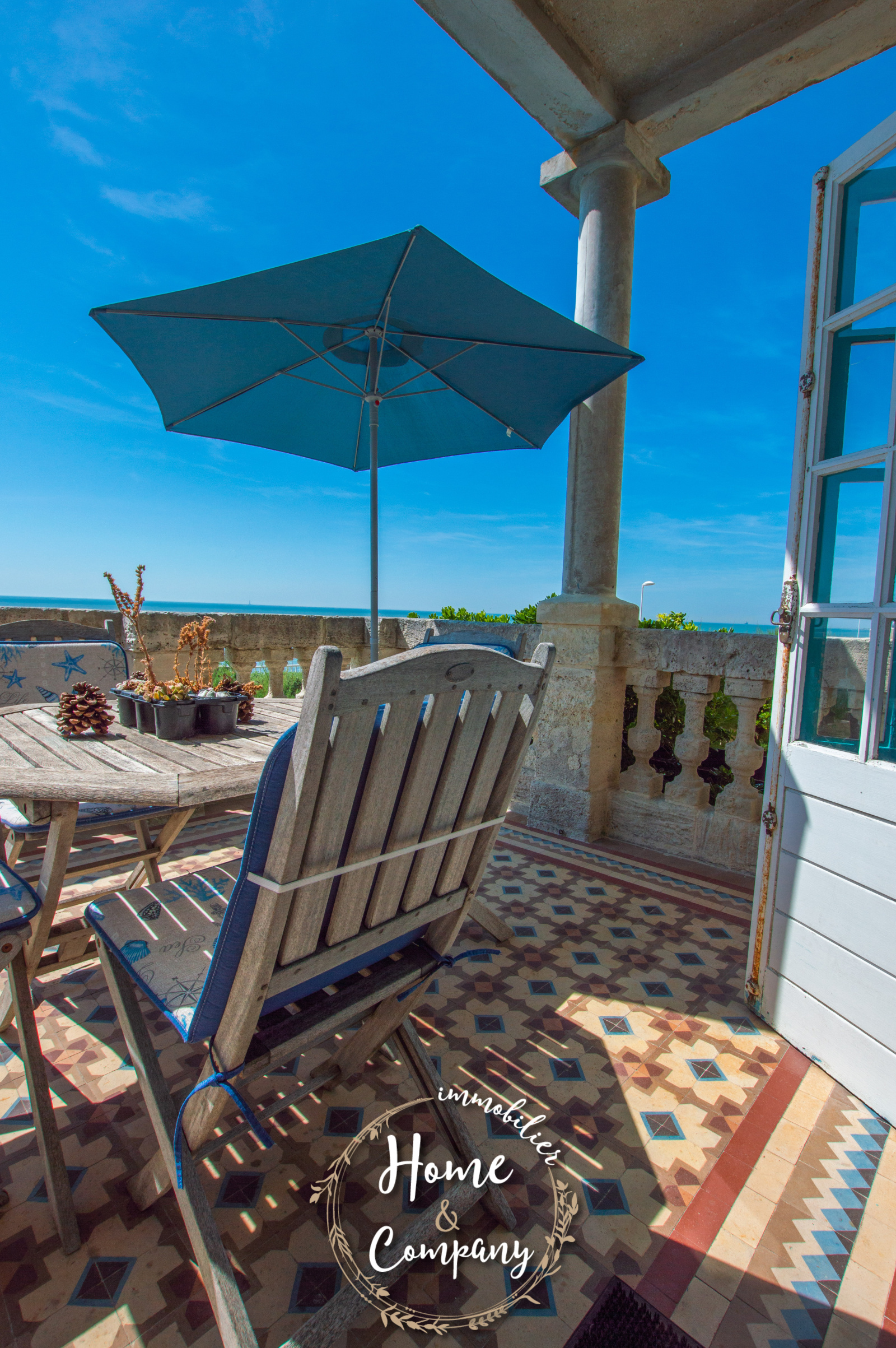 ROYAN PIGEONNIER - APPARTEMENT VUE MER - Situé à 300m de la plage du Pigeonnier et à 700m des commerces de Pontaillac, Home & Company Immobilier vous présente ce bel appartement de 33m2 dans une magnifique bâtisse en pierre avec une terrasse de 14m2 pleine vue MER. Judicieusement agencé, il offre une entrée, une pièce de vie de 22,50m2 avec kitchenette, une chambre, une SDE avec WC. Dans le respect de son architecture, l'appartement offre une belle hauteur sous plafond, des poutres, des menuiseries bois, des carreaux de ciment pour la terrasse... Cet appartement idéal en lieu de villégiature est complet. Une place de parking et une cave constituent les annexes de ce bien à l'emplacement privilégié. DONT honoraires 3,86% à la charge de l'acquéreur. Plus de photos et visite virtuelle sur le site de l'agence Home & Company Immobilier.
