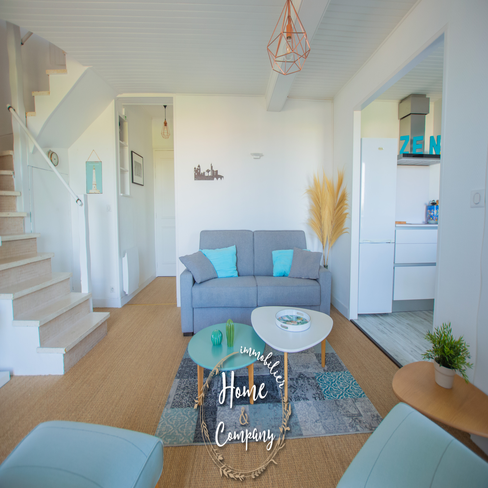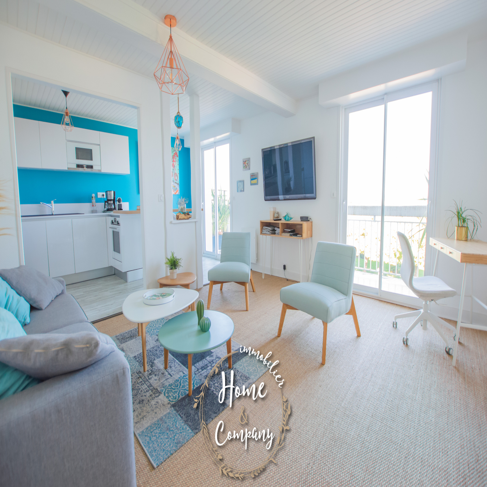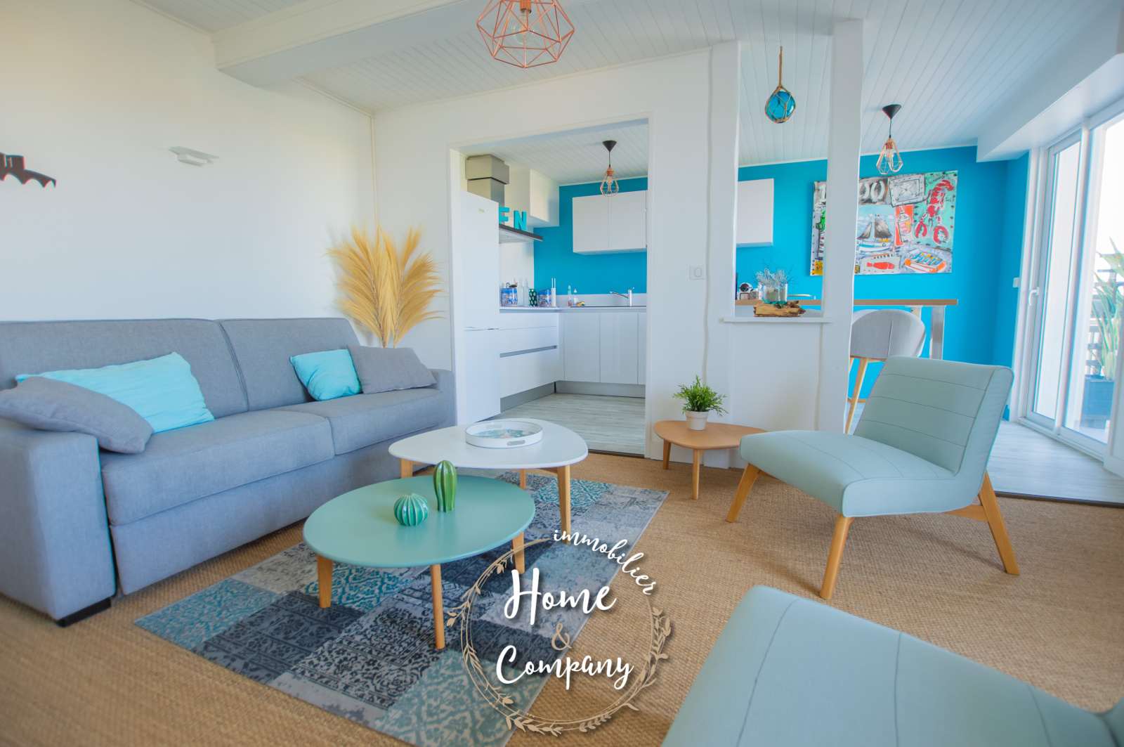 ROYAN QUARTIER DU PORT - APPARTEMENT VUE MER - Situé à 350m de la plage de Foncillon, dans le quartier du Port de ROYAN et à proximité immédiate des commerces du centre-ville, Home & Company Immobilier vous présente ce bel appartement de type duplex avec une VUE MER, développant 50m2 habitables. Au 3ème et dernier étage avec ascenseur, ce beau duplex joliment rénové, offre une entrée, un beau séjour lumineux exposé SE, une cuisine ouverte ouvrant sur un balcon et une salle d'eau avec WC. L'étage regroupe une chambre, une salle d'eau avec WC et un couchage d'appoint mansardé avec velux de 7,54m2 de surface utile non comprise dans la surface habitable. L'architecture des années 50 se fait ressentir dans les lieux. Cet appartement fonctionnel séduit par son emplacement et sa magnifique vue surplombant la vie animée de ROYAN. DONT honoraires 3,89% à la charge de l'acquéreur. Visite virtuelle sur le site de l'agence Home & Company Immobilier. Montant moyen estimé des dépenses annuelles d'énergie pour un usage standard, établi à partir des prix de l'énergie de l'année 2021 : entre 850€ et 1180€.