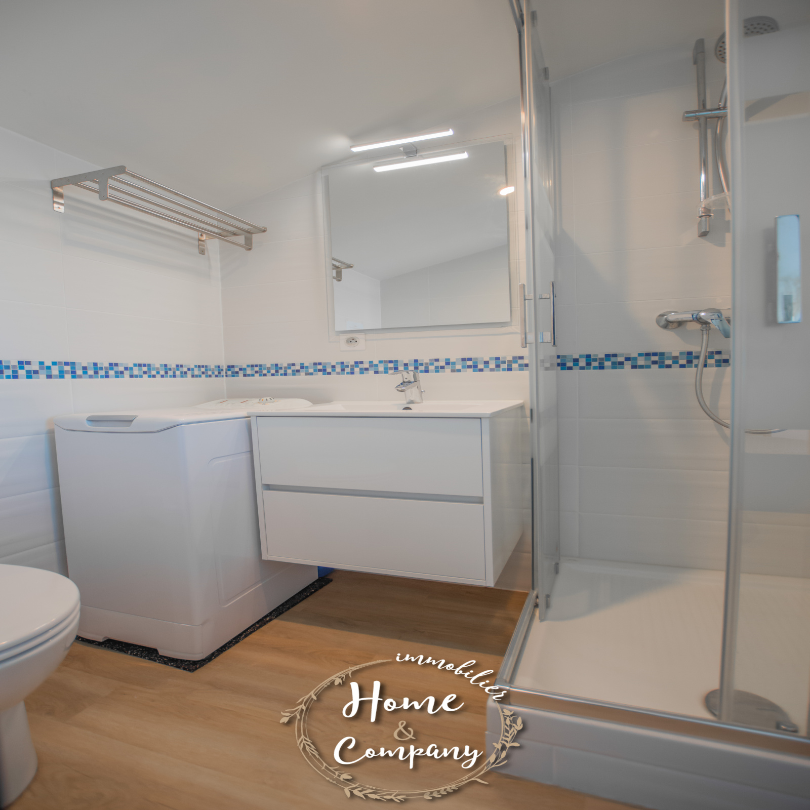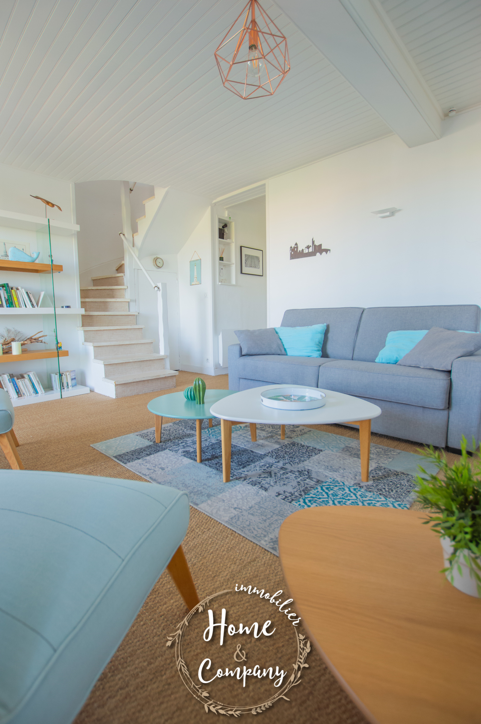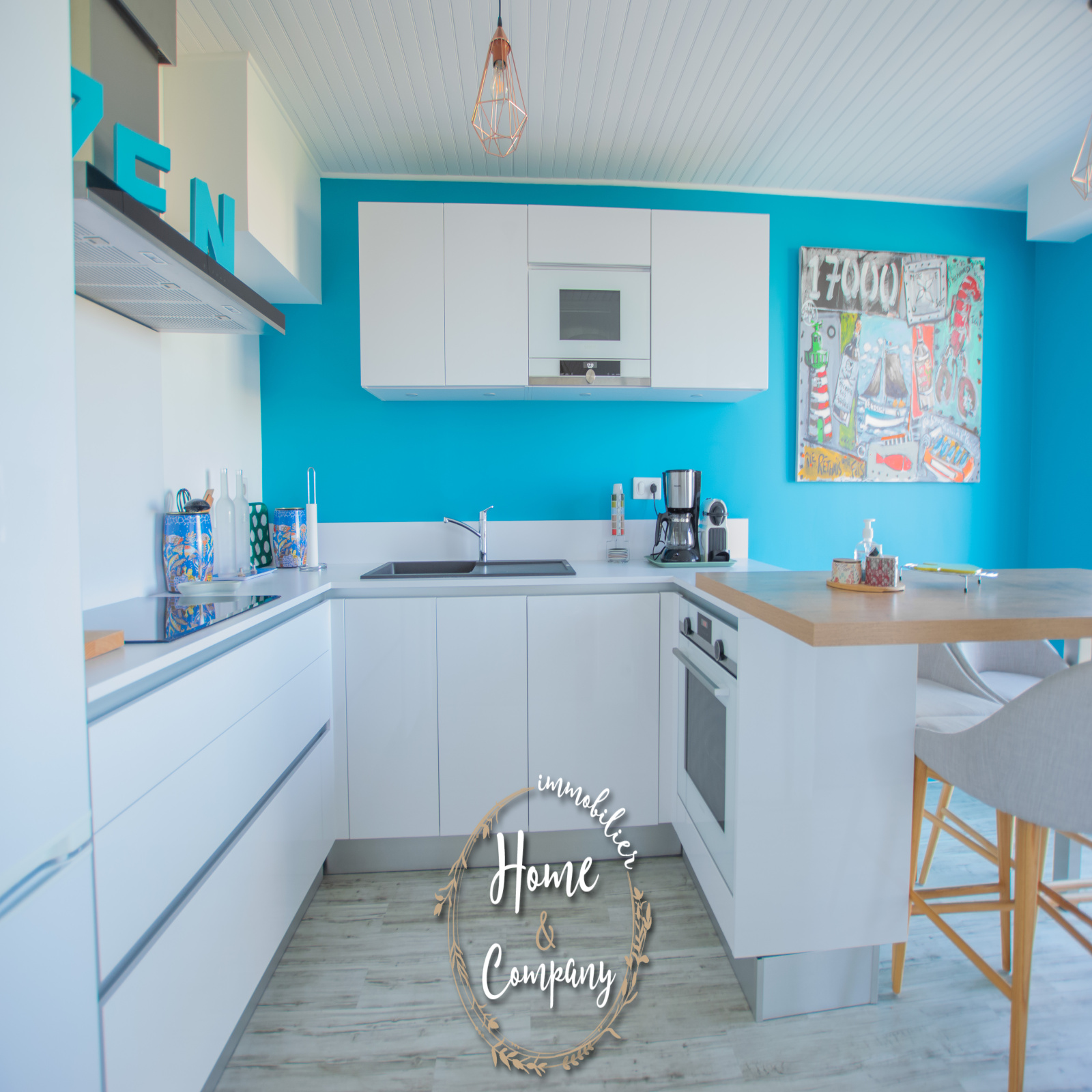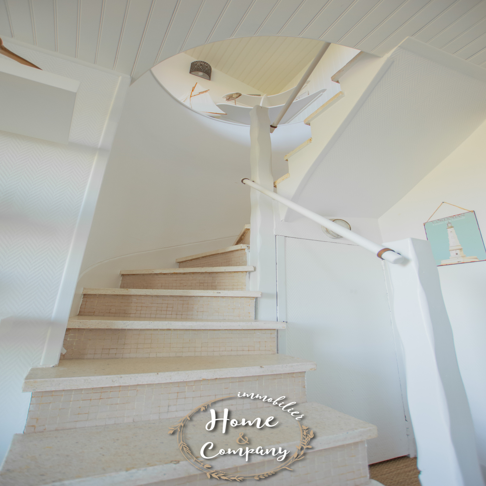 ROYAN QUARTIER DU PORT - APPARTEMENT VUE MER - Situé à 350m de la plage de Foncillon, dans le quartier du Port de ROYAN et à proximité immédiate des commerces du centre-ville, Home & Company Immobilier vous présente ce bel appartement de type duplex avec une VUE MER, développant 50m2 habitables. Au 3ème et dernier étage avec ascenseur, ce beau duplex joliment rénové, offre une entrée, un beau séjour lumineux exposé SE, une cuisine ouverte ouvrant sur un balcon et une salle d'eau avec WC. L'étage regroupe une chambre, une salle d'eau avec WC et un couchage d'appoint mansardé avec velux de 7,54m2 de surface utile non comprise dans la surface habitable. L'architecture des années 50 se fait ressentir dans les lieux. Cet appartement fonctionnel séduit par son emplacement et sa magnifique vue surplombant la vie animée de ROYAN. DONT honoraires 3,89% à la charge de l'acquéreur. Visite virtuelle sur le site de l'agence Home & Company Immobilier. Montant moyen estimé des dépenses annuelles d'énergie pour un usage standard, établi à partir des prix de l'énergie de l'année 2021 : entre 850€ et 1180€.