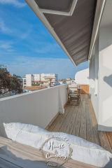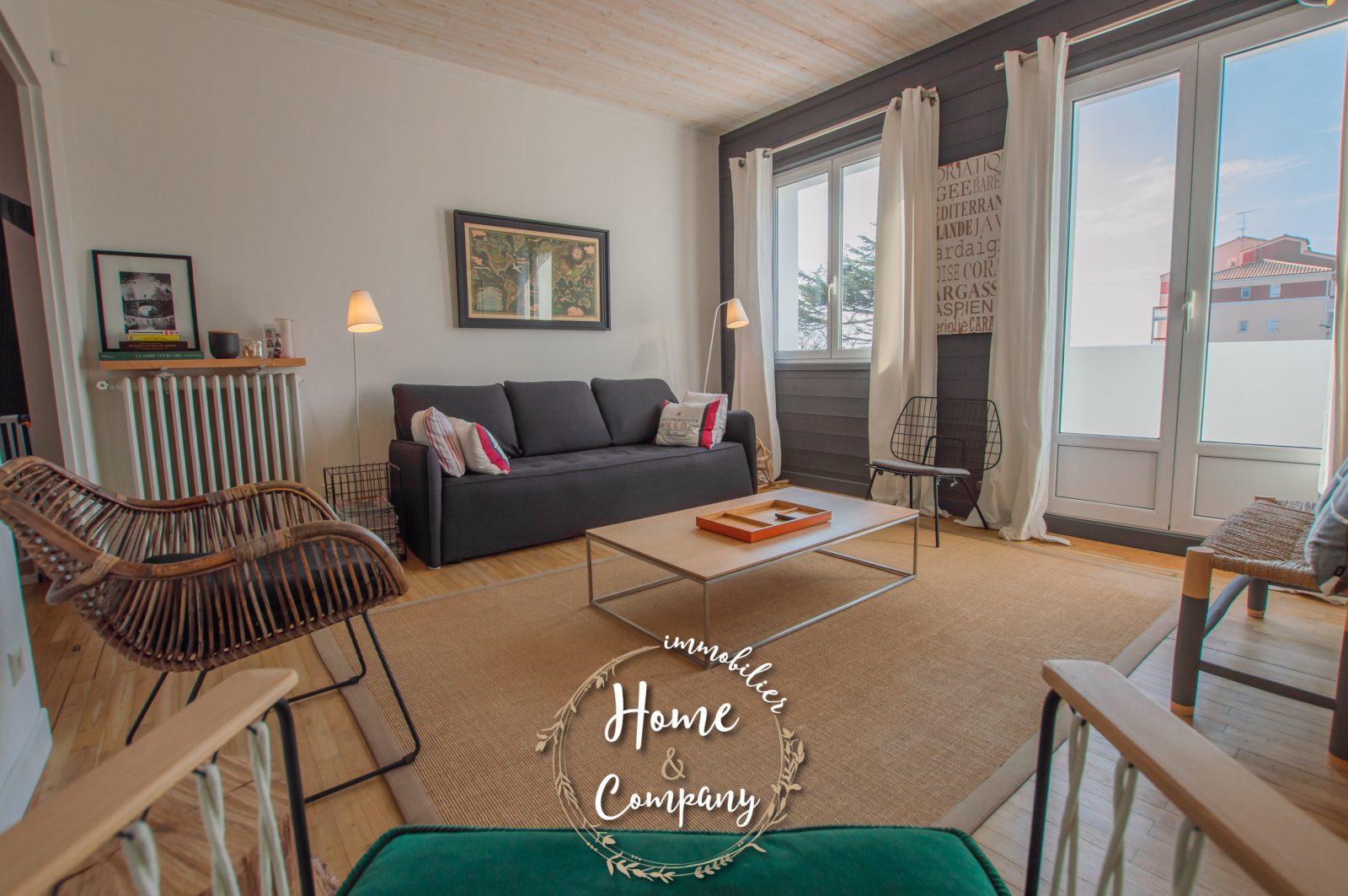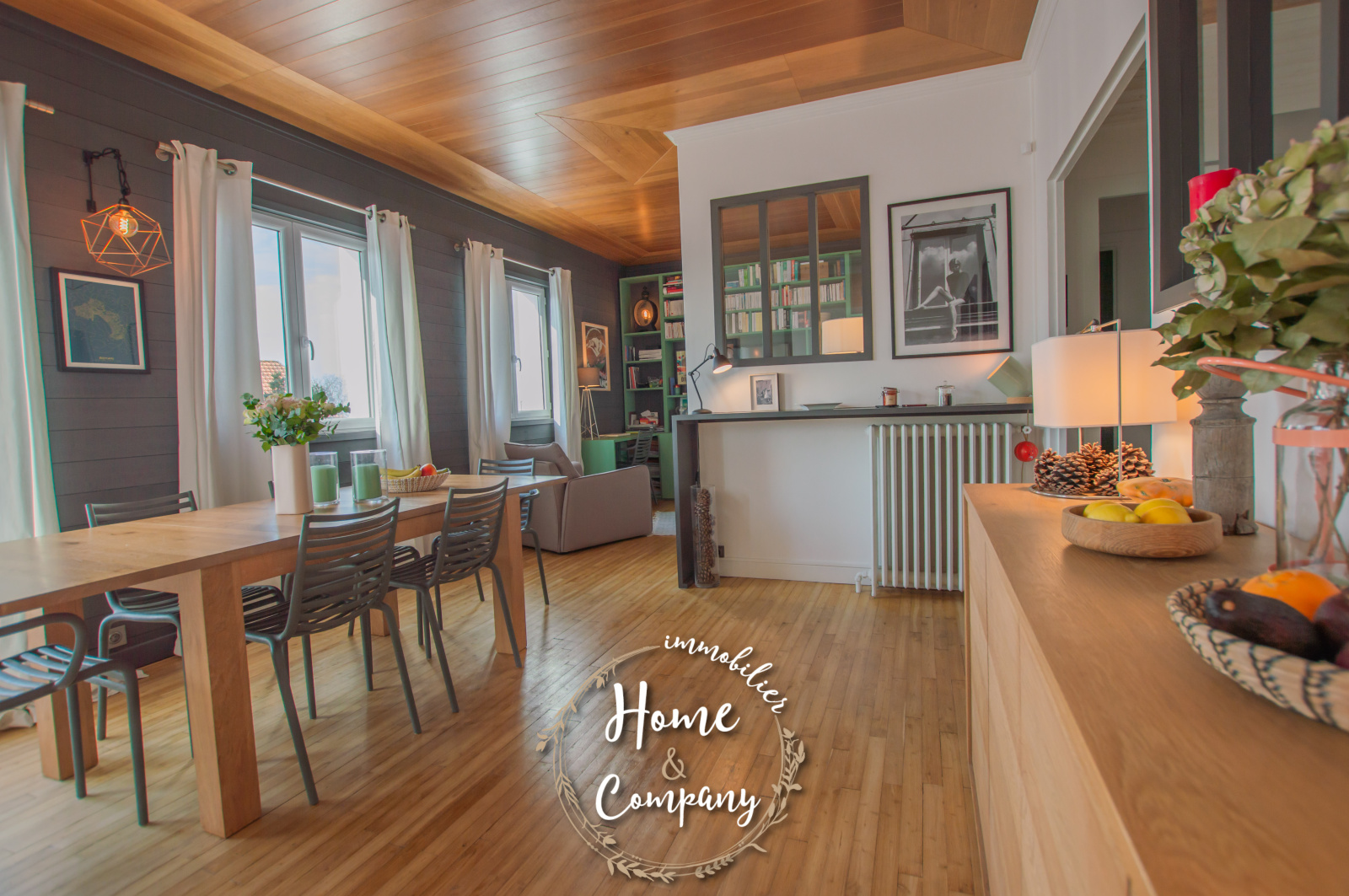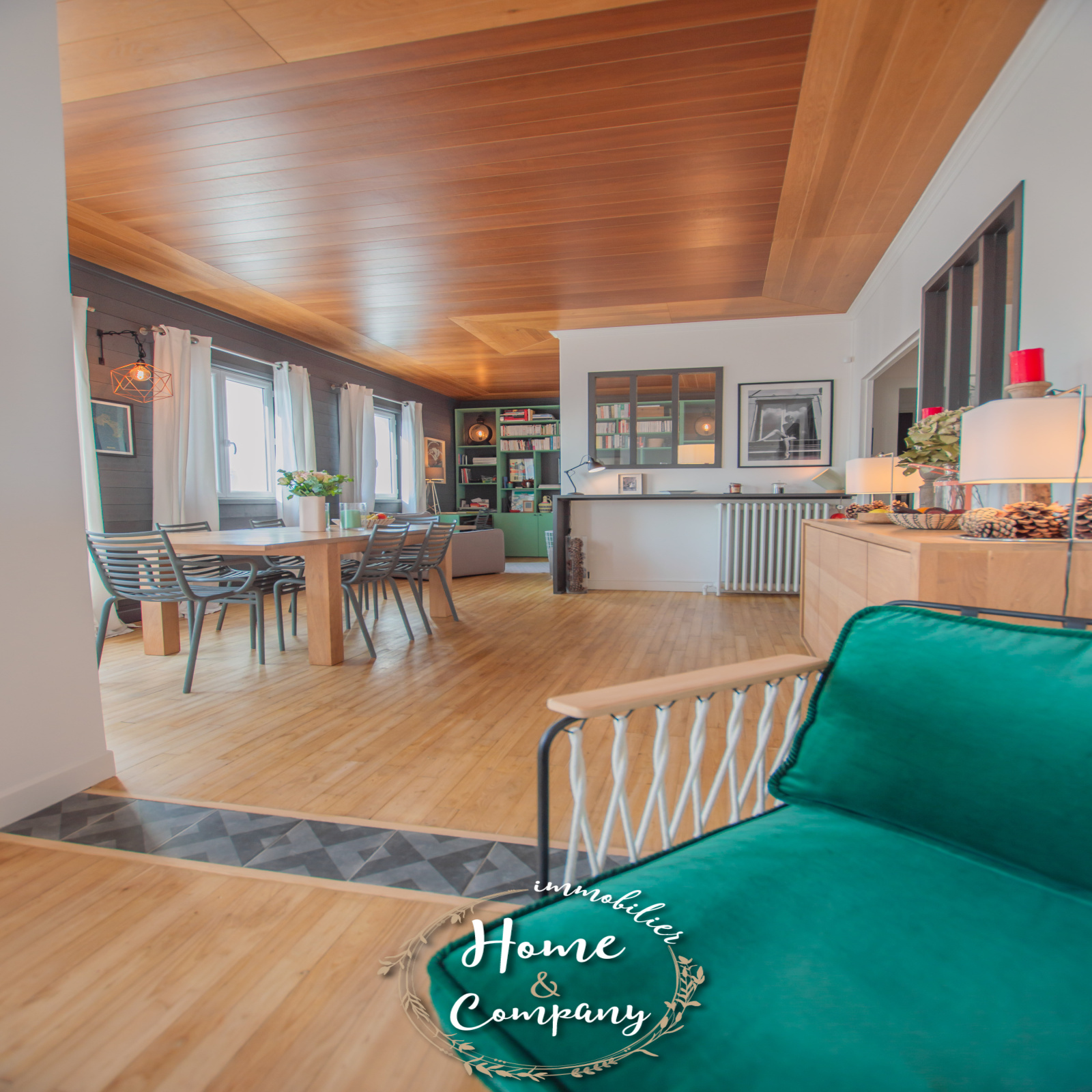 ROYAN LE CHAY - APPARTEMENT AU DERNIER ETAGE - Situé dans un secteur très convoité à 450m de la plage du Chay avec des aperçus mer et à 800m des commerces du centre-ville de ROYAN, Home & Company Immobilier vous présente ce magnifique appartement rénové de 101m2 habitables au 3ème et dernier étage d'une petite résidence sécurisée sans ascenseur. Remanié et rénové avec goût, il est présenté dans un excellent état où règne une atmosphère plus que plaisante. Cet appartement dispose d'un espace séjour de 42m2 dont une partie est utilisée en un coin petit salon plus intime le tout ouvrant sur une terrasse filante offrant une vue dégagée et des aperçus mer, une cuisine indépendante de type laboratoire aménagée et équipée, un dégagement avec placard desservant une première partie nuit réservée à l'espace propriétaire avec une chambre, une SDE et un WC indépendant. En opposition, la deuxième partie nuit est composée de 2 chambres dont une avec aperçu mer, une SDB, un WC indépendant et une buanderie. Une cour commune, 1 cave et 1 garage constituent les annexes de ce bien rare sur le secteur. DONT honoraires 3,88% à la charge de l'acquéreur. Plus de photos et visite virtuelle sur le site de l'agence Home & Company Immobilier.