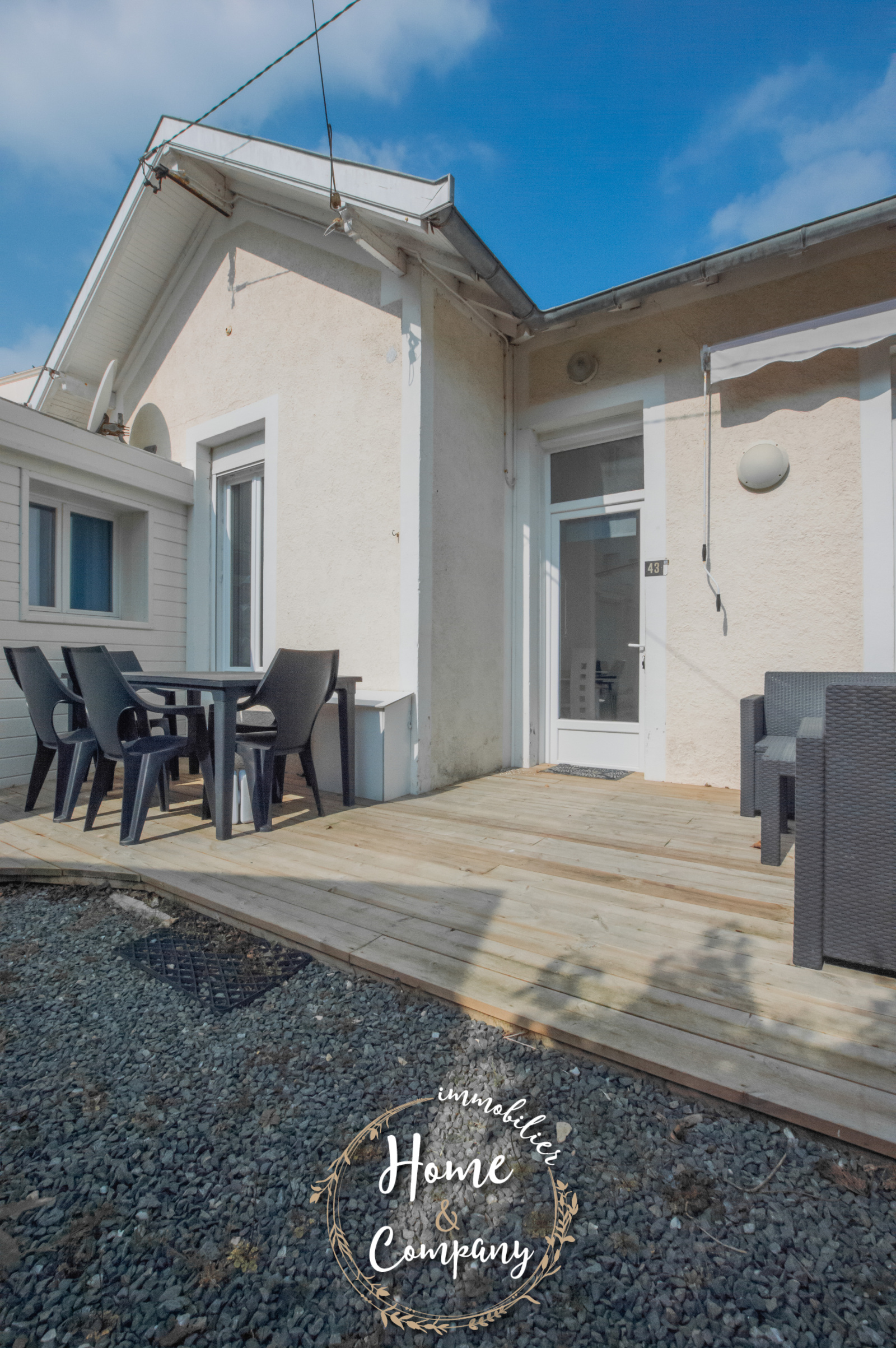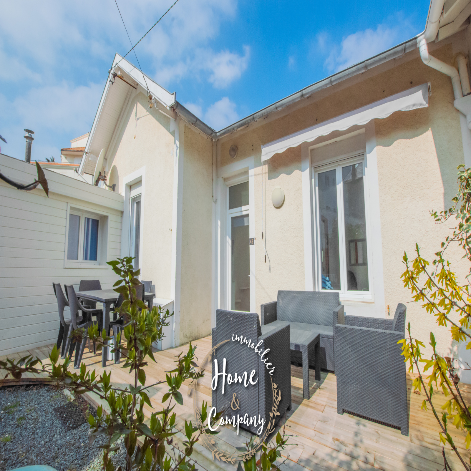 ROYAN PONTAILLAC - MAISON DE PLAIN-PIED STYLE ARCACHONNAISE - Situé à 150m de la plage de Pontaillac et à 200m de ses commerces, Home & Company Immobilier vous présente cette jolie maison rénovée de 52m2 habitables sur une parcelle de terrain de 130m2. Elle offre un séjour avec cuisine ouverte ouvrant sur une belle terrasse exposée plein SUD de quoi profiter des beaux jours. Côté nuit, cette maison propose 2 chambres dont une avec placard et une salle d'eau avec WC. Un garage constitue l'annexe de cette maison. Son emplacement privilégié souligne incontestablement un lieu de villégiature idéal. DONT honoraires 3,90% à la charge de l'acquéreur. Plus de photos et visite virtuelle sur le site de l'agence Home & Company Immobilier.