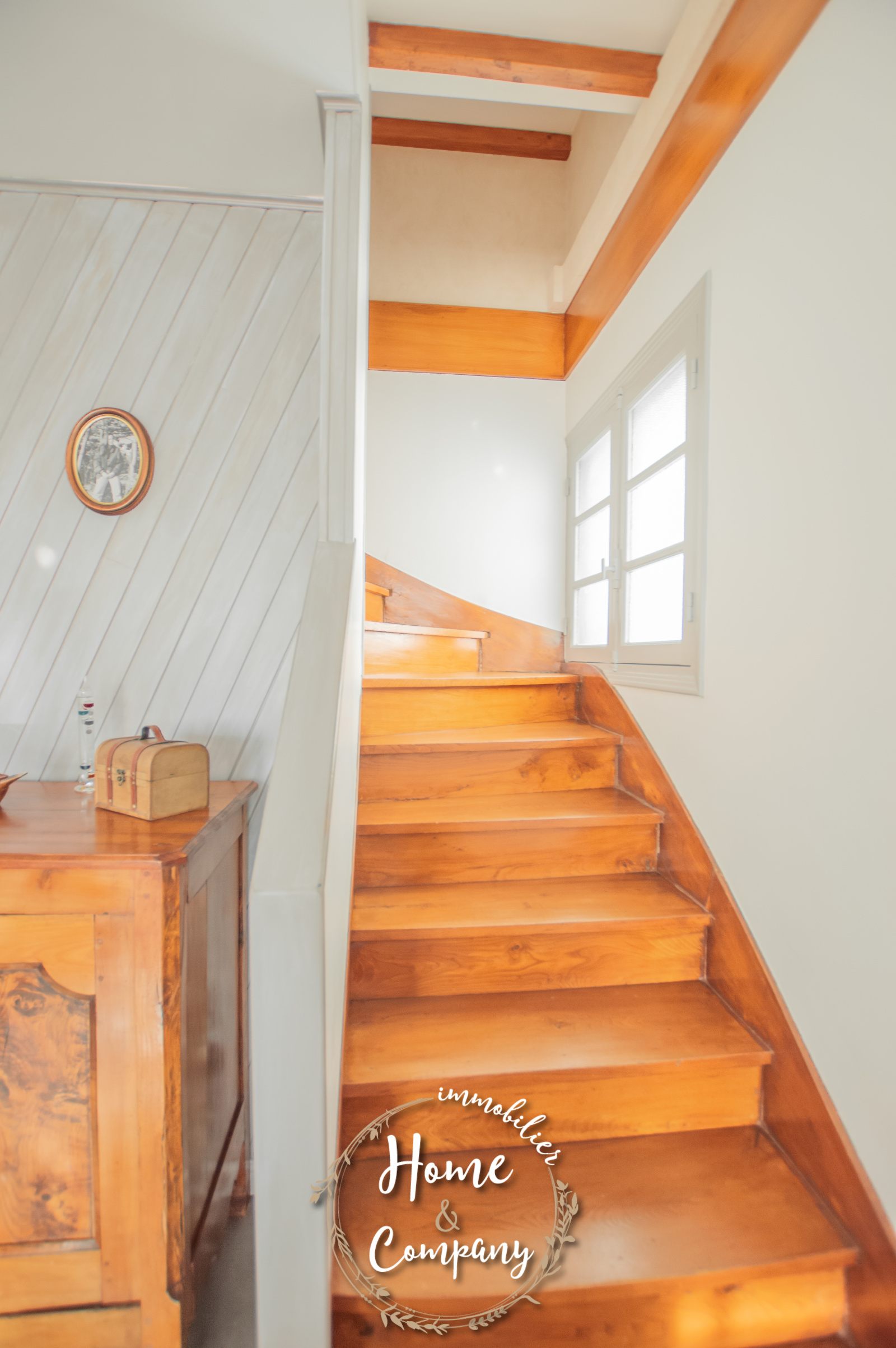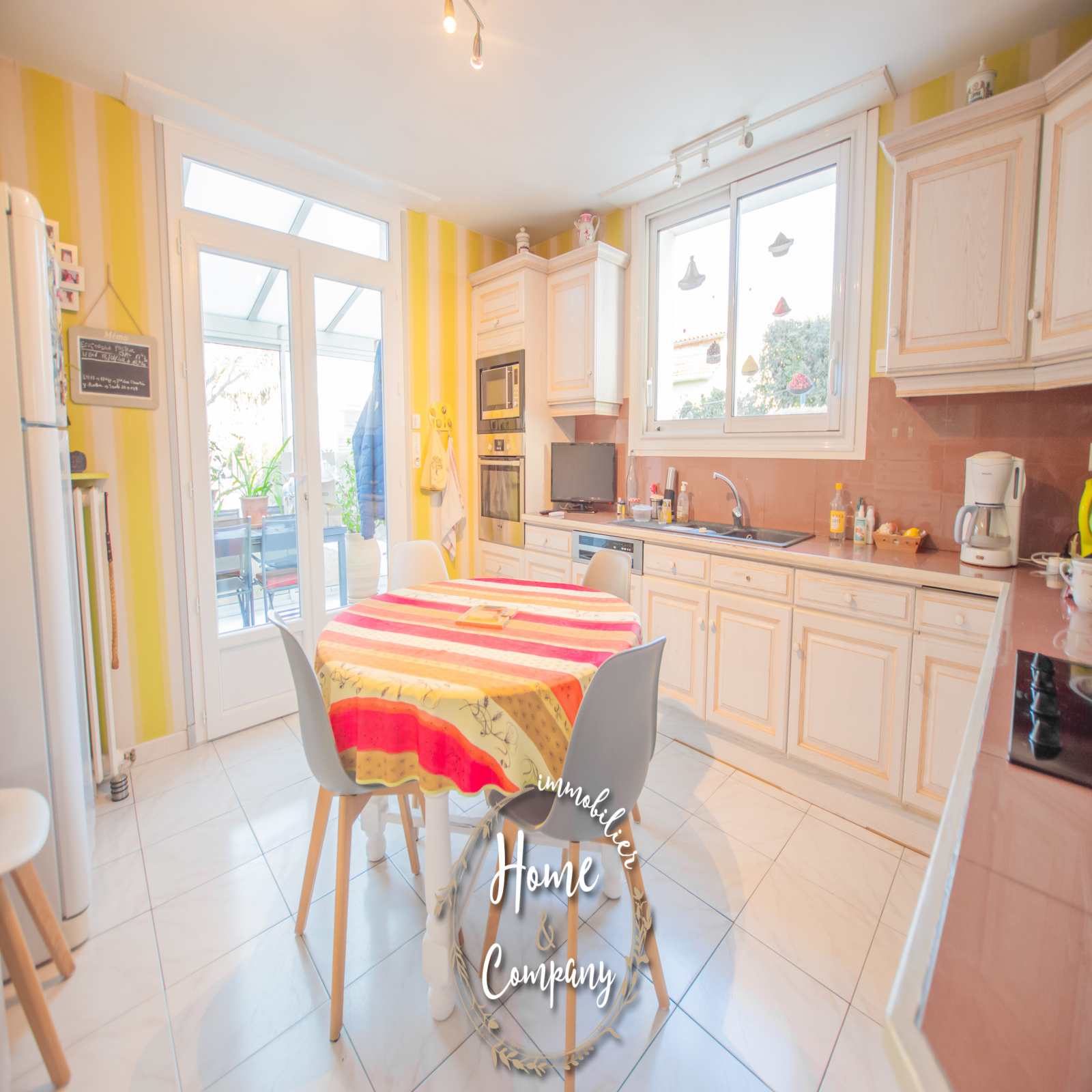 ROYAN - MAISON DE TYPE CITADINE - Située proche des commodités, Home & Company Immobilier vous présente cette maison de ville sur 3 niveaux sur un jardin intime de 846m2 avec piscine. Elle développe 98m2 habitables de la manière suivante : une entrée pouvant se faire par le séjour lumineux, un dégagement amenant à la cuisine équipée indépendante de type dinatoire puis une véranda vue sur le jardin. Le dégagement dessert également un bureau, une salle de bains et un WC indépendant. A l'étage un palier amène en opposition à 2 chambres avec de nombreux rangements. Combles. Le sous-sol semi-enterré offre un garage de 23m3. Côté jardin, de nombreux espaces ont été dessinés : coin repas abrité, piscine, dépendances pour faire du stockage, potager... Stationnement privatif. DONT honoraires 3,90% à la charge de l'acquéreur. Plus de photos et visite virtuelle sur le site de l'agence Home & Company Immobilier. Montant moyen estimé des dépenses annuelles d'énergie pour un usage standard, établi à partir des prix de l'année 2021 : entre 920 et 1320€.