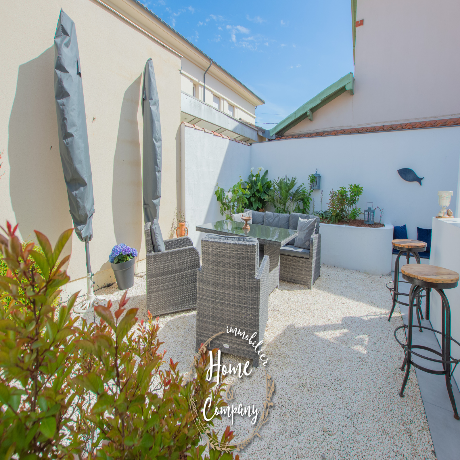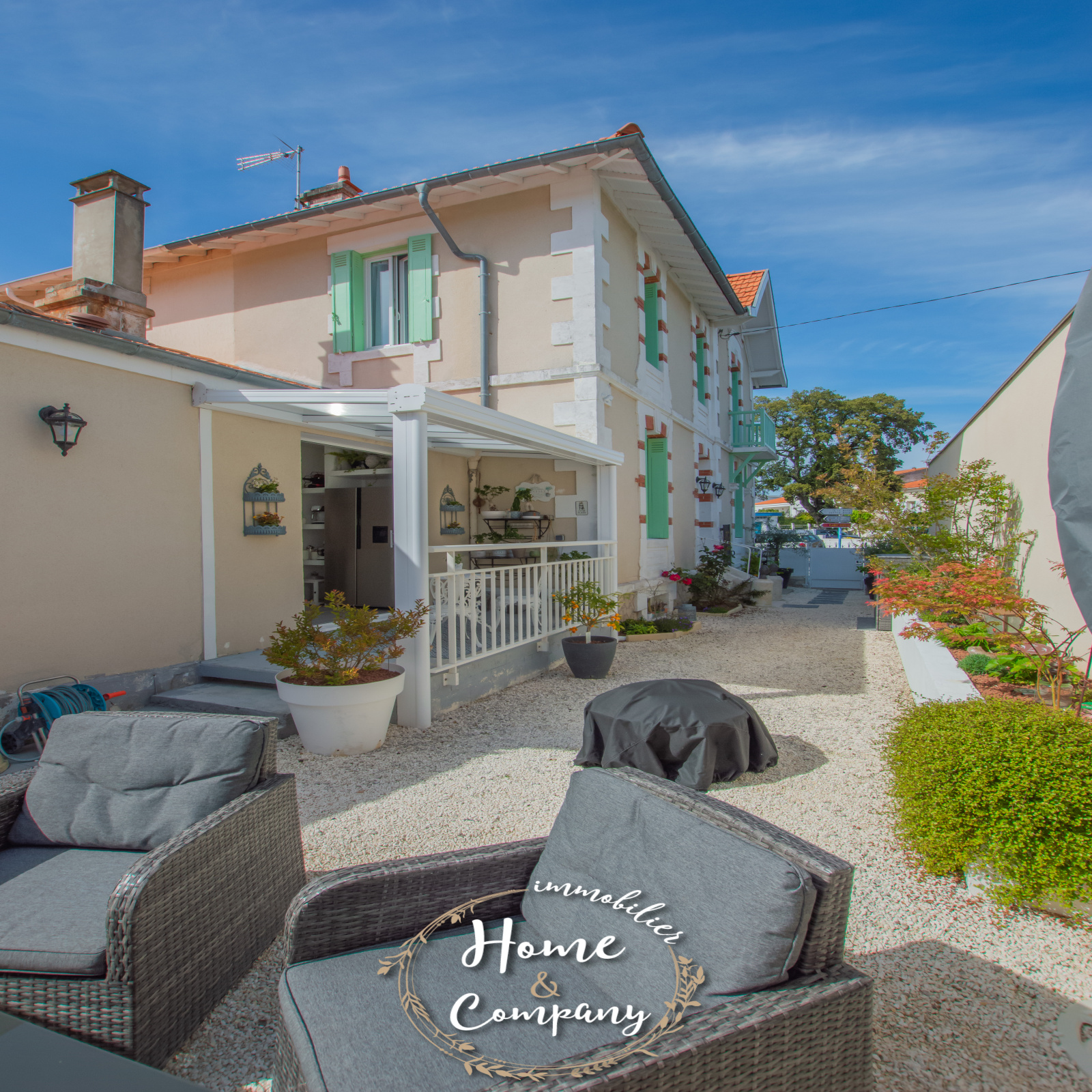 ROYAN BORDURE DU PARC - MAISON DES ANNÉES 1900 RÉNOVÉE - Située proche de la plage de la Grande Conche de ROYAN et des commerces du Marché du Parc, Home & Company Immobilier vous présente cette charmante maison ayant été rénovée en 2021. Véritable citadine de 105m2 habitables sur une parcelle de 152m2, elle offre une jolie entrée avec placard, un salon intime, en opposition une salle à manger avec une belle cheminée décorative, une cuisine indépendante aménagée et équipée ouvrant sur une terrasse couverte. Pour compléter le rez-de-chaussée nous retrouvons une salle de bains avec WC. À l'étage, un dégagement avec placard dessert 2 chambres dont une avec placard et l'autre avec double dressing proposant également de la chambre un accès sur balcon. Ces deux chambres disposent d’une salle d'eau et d’un WC indépendant. En souplex, un dégagement dessert 2 autres chambres avec dressing. Une lingerie et un débarras constituent les annexes de cette coquette maison. Le jardin minéralisé offre un espace cocooning, détente, et sa cuisine d'été invite à passer de bons moments... Visite virtuelle sur le site de l'agence Home & Company immobilier. DONT honoraires 3,89% à la charge de l'acquéreur. Montant moyen estimé des dépenses annuelles d'énergie pour un usage standard, établi à partir des prix de l'énergie de l'année 2021 : entre 1300€ et 1780€.
