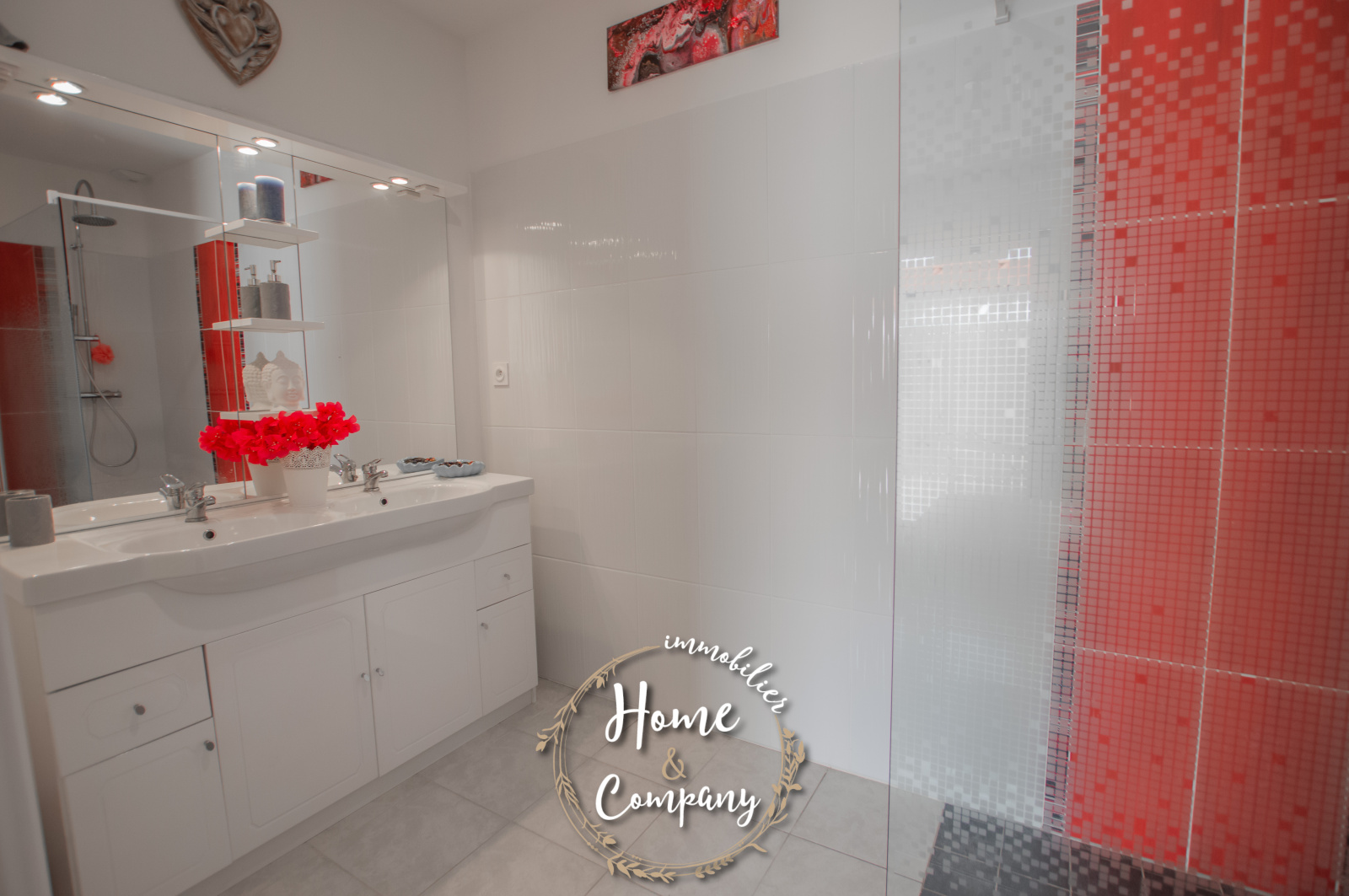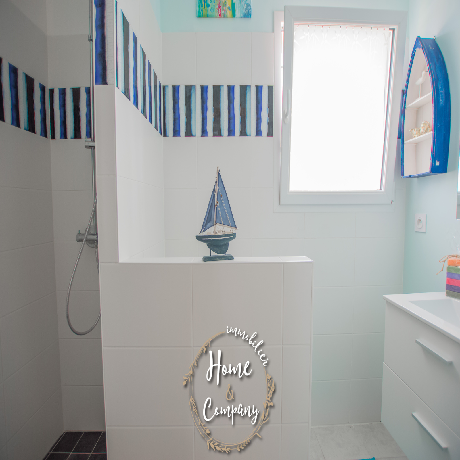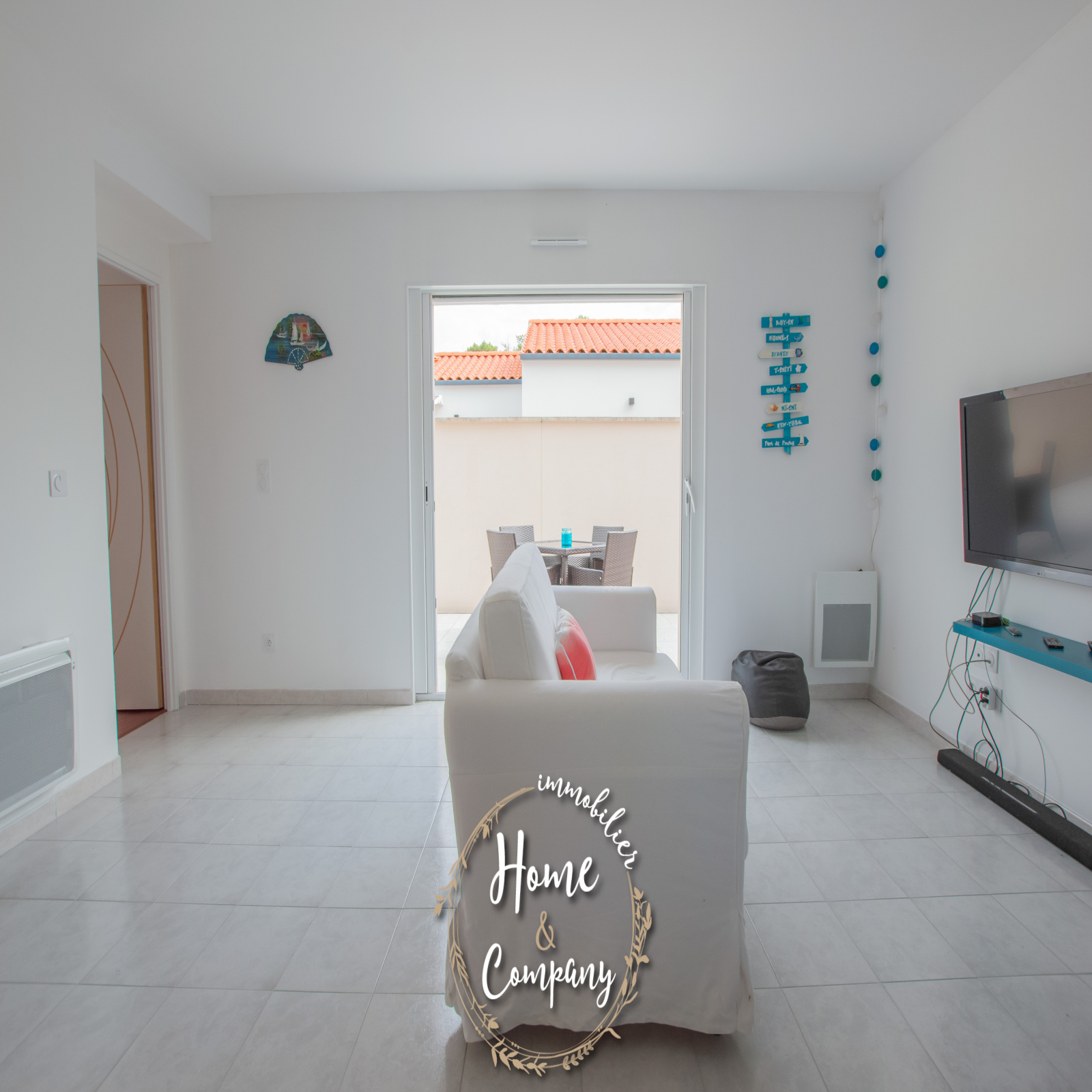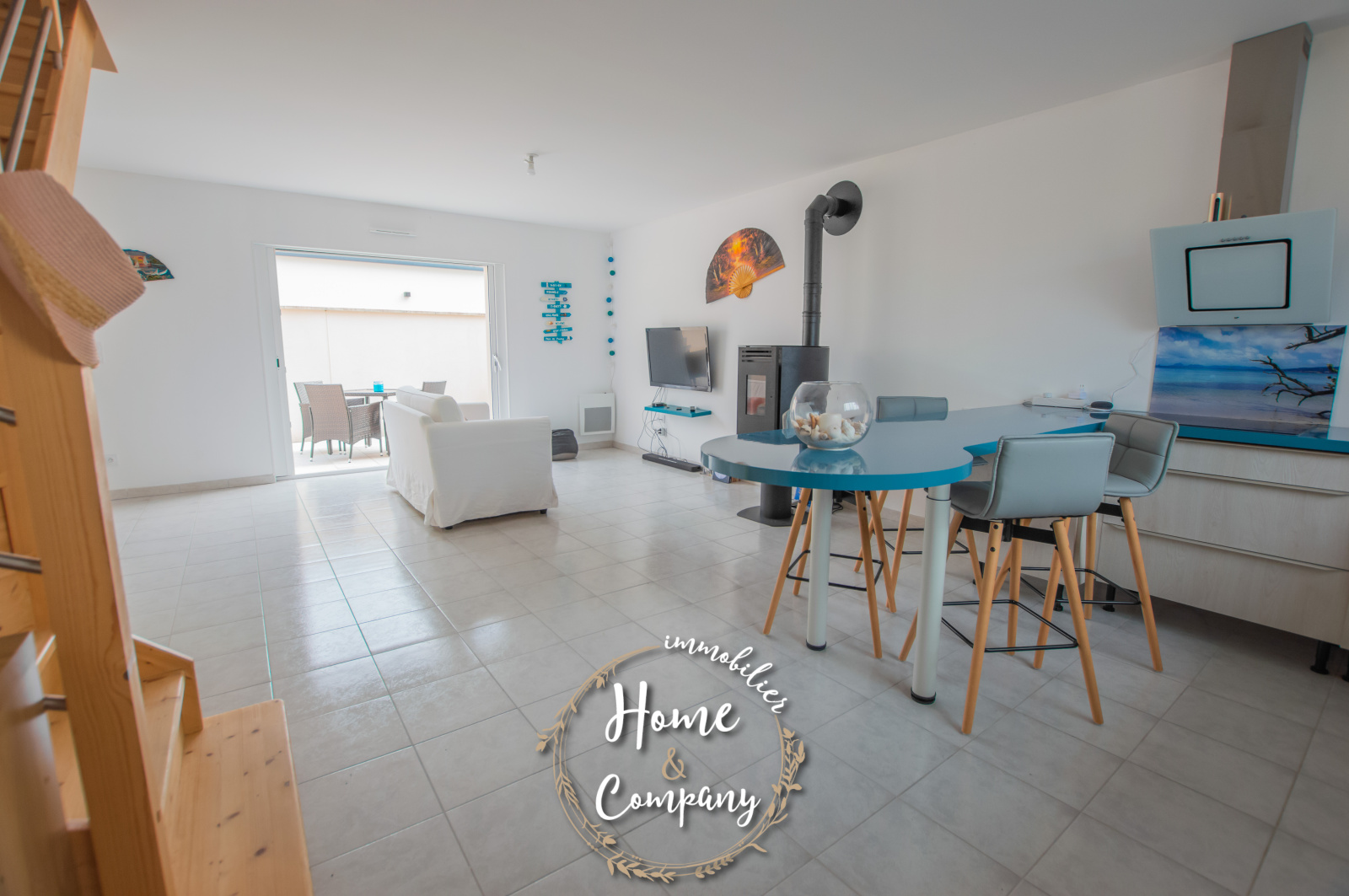 ROYAN - MAISON RECENTE - Située dans un quartier calme et habité à l'année, à 1500 m des commerces et à environ 3km de la plage de Pontaillac, Home & Company Immobilier vous présente en EXCLUSIVITE cette jolie maison aux normes RT2012 sur deux niveaux développant environ 85m2 habitables sur une parcelle de 249m2. Au rez-de-chaussée, cette maison propose un séjour lumineux de près de 38m2 comprenant une cuisine aménagée. Il ouvre par une baie vitrée à une terrasse intime et ombragée. Côté nuit, une chambre avec une salle d'eau privative et WC, assure une vie de plain-pied. Pour compléter la capacité d'accueil, l'escalier en bois donnera accès à 2 chambres spacieuses se partageant une salle d'eau avec WC. Côté jardin, ce dernier demandera peu d'entretien. Du stationnement sur la parcelle est assuré en plus d'un garage de 15m2. DONT honoraires 3,82% à la charge de l'acquéreur. Visite virtuelle sur le site de l'agence Home & Company Immobilier. Montant moyen estimé des dépenses annuelles d'énergie pour un usage standard, établi à partir des prix de l'énergie de l'année 2021 : entre 720€ et 1020€.