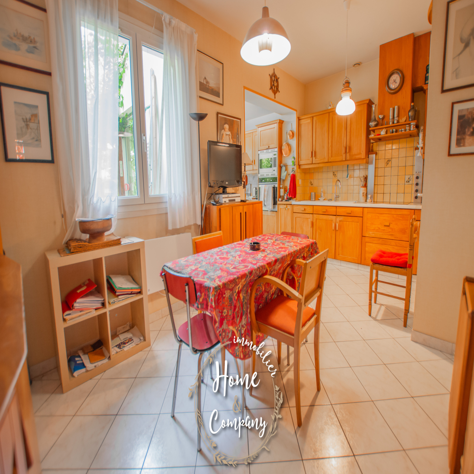 ROYAN CENTRE-VILLE - MAISON DES ANNÉES 50 - Située à quelques mètres de la plage de Foncillon et proche du Marché Central de ROYAN, Home & Company Immobilier vous présente cette maison de ville sur 2 niveaux avec ascenseur (et escalier), développant 104m2 habitables sur une parcelle de 136m2. Elle offre au rez-de-chaussée, une entrée, un salon, une salle à manger avec cuisine ouverte ouvrant sur un jardinet, une salle d'eau et un WC indépendant. À l'étage, un palier dessert 2 chambres dont une ouvrant sur un balcon à la vue sur le jardin, un bureau/chambre, une salle d'eau et un WC indépendant. Un atelier et cave constituant au fond du terrain les annexes de cette citadine. Le jardin offre un cocon de verdure au calme et sans vis-à-vis dans lequel on oublie totalement d'être en cœur de ville. DONT honoraires 3,90% à la charge de l'acquéreur. Visite virtuelle sur le site de l'agence Home & Company Immobilier. Montant moyen des dépenses annuelles d'énergie pour un usage standard, établi à partir des prix de l'année 2021 : entre 1890€ et 2558€.