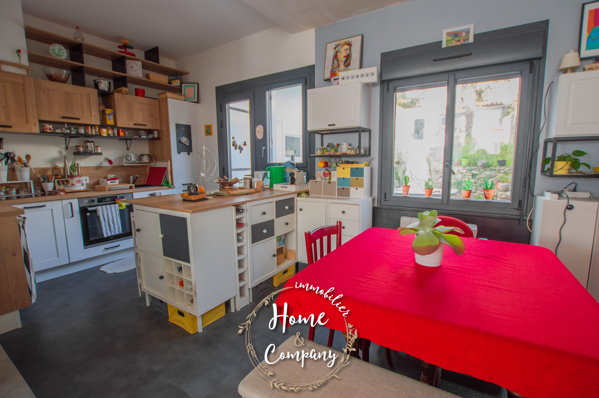 ROYAN CENTRE - MAISON DE VILLE AVEC JARDINET - Située proche des commerces, au calme dans le centre de ROYAN, Home & Company Immobilier vous présente cette maison des années 50 rénovée proposant sur 2 niveaux une superficie habitable de 82m2 sur une parcelle de 164m2. L'entrée dessert une pièce de vie de 35m2 avec une cheminée comprenant une cuisine ouverte ouvrant sur une terrasse et le jardin. WC indépendant. L'étage regroupe la partie nuit avec 3 chambres, un dressing, une salle d'eau et un WC. Côté jardin, 2 terrasses vous offriront un coin repas ou un coin détente. Une annexe de 13m2 ainsi qu'un débarras complètent le tout. DONT honoraires 3,87% à la charge de l'acquéreur. Montant moyen estimé des dépenses annuelles d'énergie pour un usage standard, établi à partir des prix de l'énergie de l'année 2021, 2022 et 2023 : entre 1600€ et 2200€.