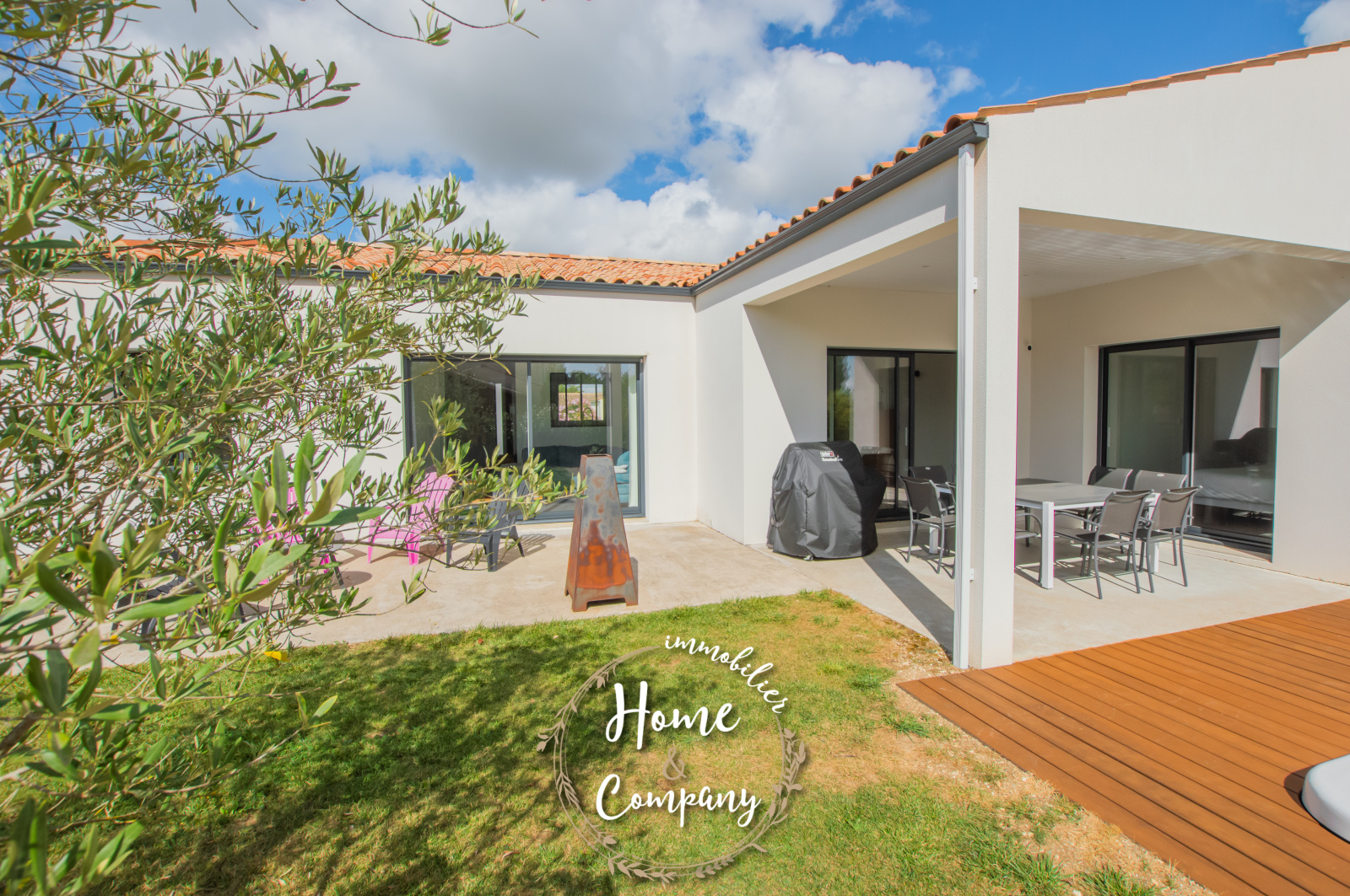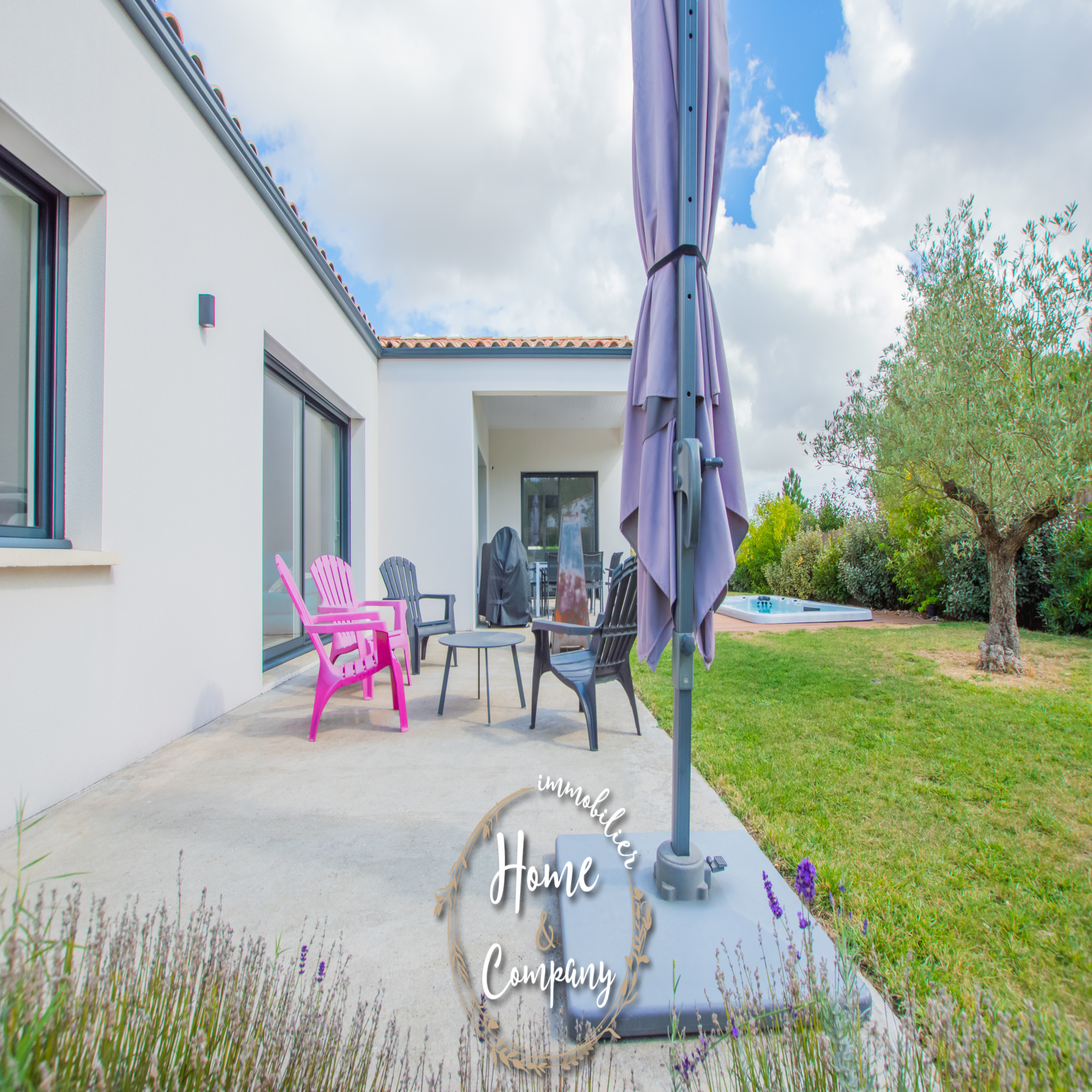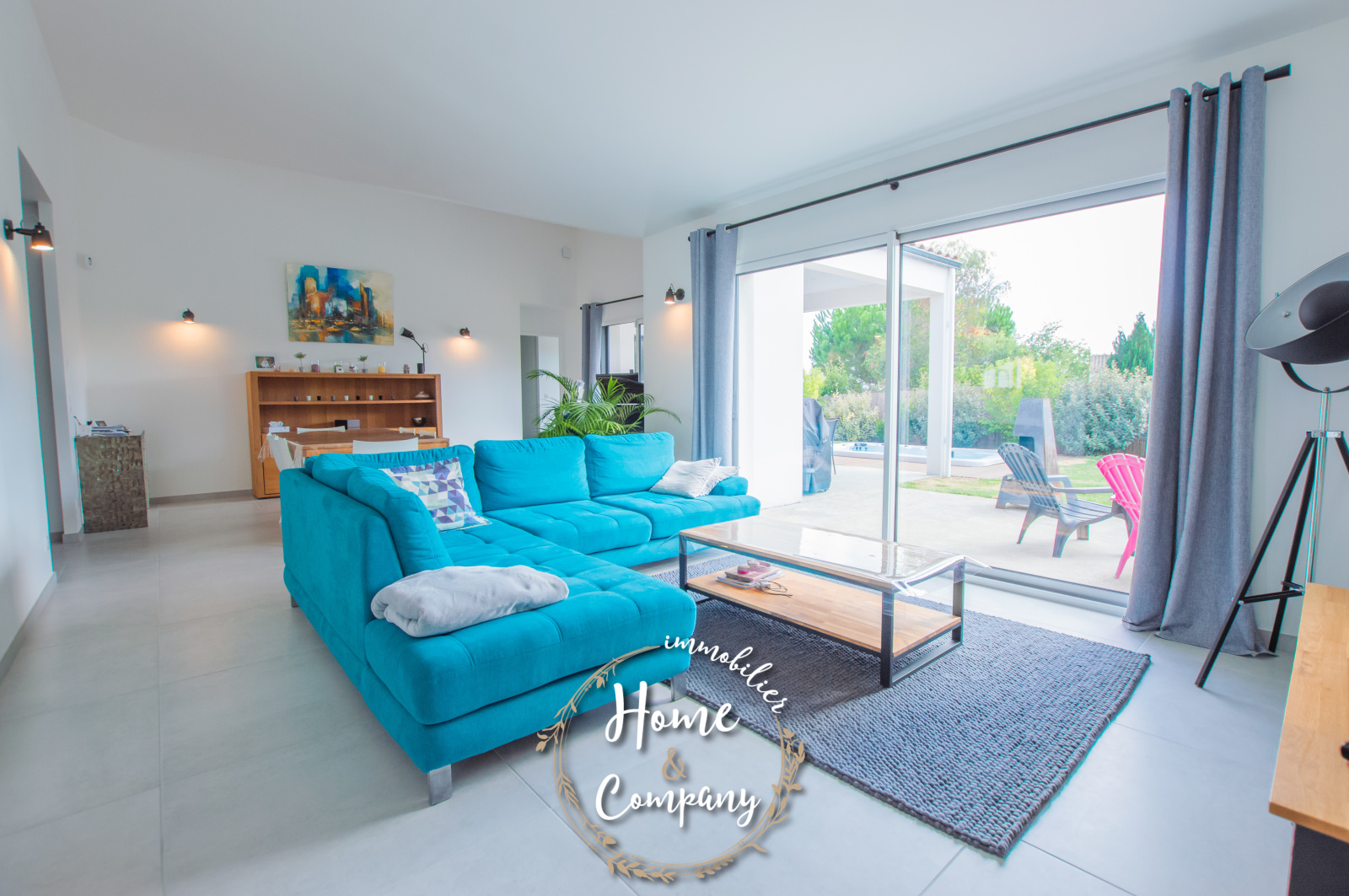 SAINT-SULPICE-DE-ROYAN - BELLE MAISON DE PLAIN-PIED - Située à quelques mètres des commerces du centre-bourg de ST SULPICE, Home & Company Immobilier vous présente en EXCLUSIVITE cette jolie maison récente de 173m2 habitables entièrement de plain-pied et présentée dans un état irréprochable sur une parcelle de 1108m2. Judicieusement pensée, cette maison offre un véritable confort de vie. L'entrée passée, un vaste séjour de 45m2 avec belle hauteur sous plafond dévoile de belles perspectives sur le jardin paysagé, une cuisine aménagée et équipée. Côté nuit, 2 espaces ont été créé ; le premier est une véritable suite parentale avec chambre vue sur terrasse et jardin, dressing aménagé, WC et SDE privative. En opposition, le second espace propose 4 chambres, une salle de bains avec douche et WC indépendant. Rien ne manque : cellier, lingerie, double garage de 53m2. Le jardin paysagé dispose de terrasses, d'un SPA encastré et d'une aire de stationnement. Prestations de qualité. Plus de photos et visite virtuelle sur le site de l'agence Home & Company immobilier. DONT honoraires 3,86% à la charge de l'acquéreur. Montant moyen estimé des dépenses annuelles d'énergie pour un usage standard, établi à partir des prix de l'énergie de l'année 2021 : entre 685€ et 927€.