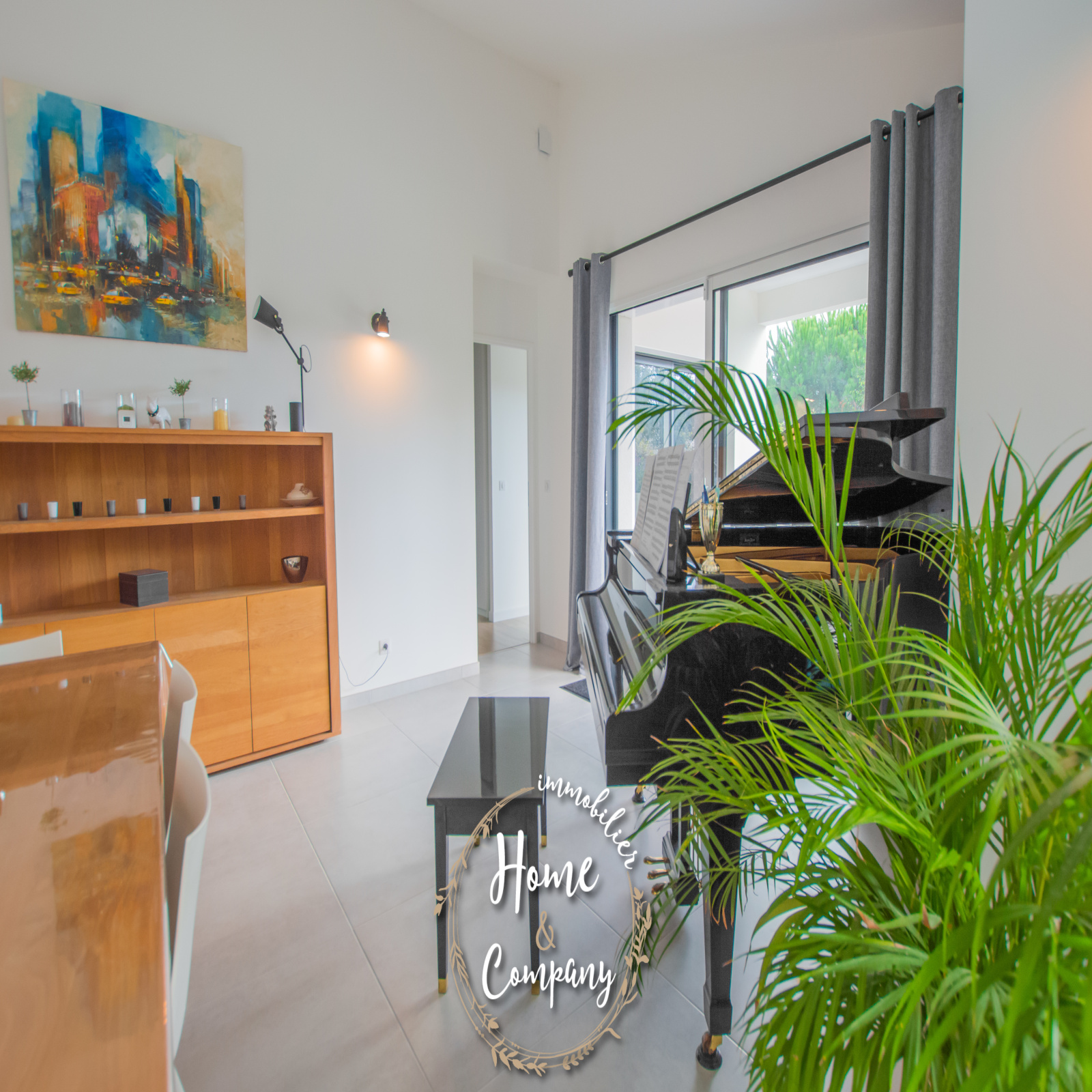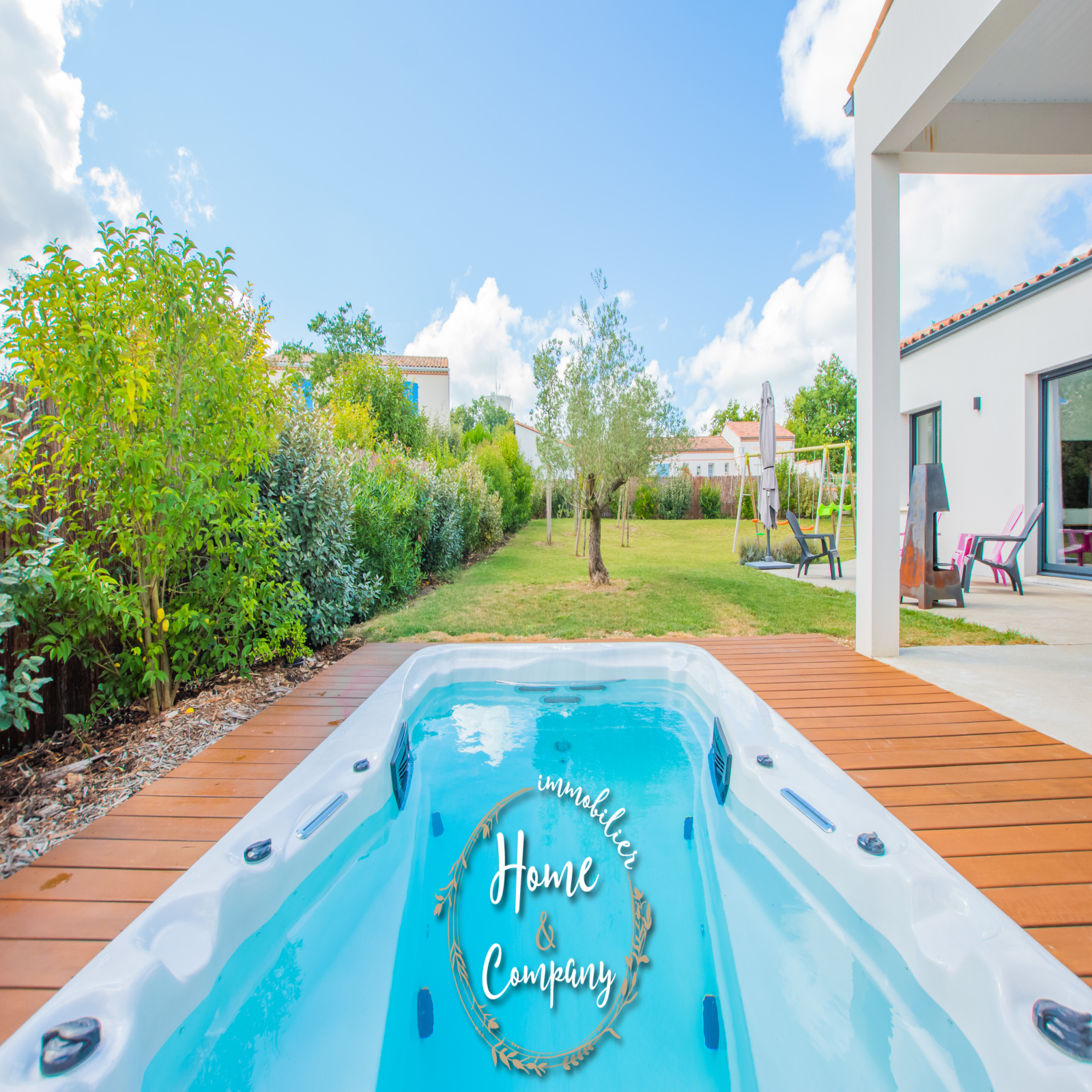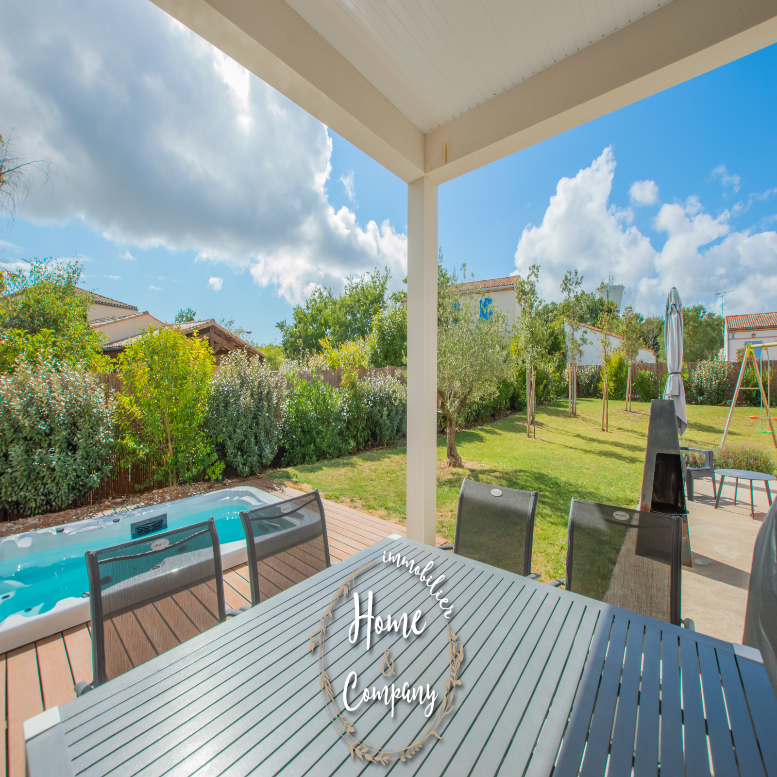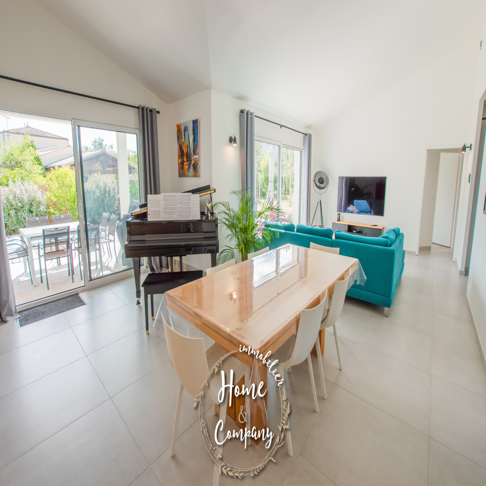 SAINT-SULPICE-DE-ROYAN - BELLE MAISON DE PLAIN-PIED - Située à quelques mètres des commerces du centre-bourg de ST SULPICE, Home & Company Immobilier vous présente en EXCLUSIVITE cette jolie maison récente de 173m2 habitables entièrement de plain-pied et présentée dans un état irréprochable sur une parcelle de 1108m2. Judicieusement pensée, cette maison offre un véritable confort de vie. L'entrée passée, un vaste séjour de 45m2 avec belle hauteur sous plafond dévoile de belles perspectives sur le jardin paysagé, une cuisine aménagée et équipée. Côté nuit, 2 espaces ont été créé ; le premier est une véritable suite parentale avec chambre vue sur terrasse et jardin, dressing aménagé, WC et SDE privative. En opposition, le second espace propose 4 chambres, une salle de bains avec douche et WC indépendant. Rien ne manque : cellier, lingerie, double garage de 53m2. Le jardin paysagé dispose de terrasses, d'un SPA encastré et d'une aire de stationnement. Prestations de qualité. Plus de photos et visite virtuelle sur le site de l'agence Home & Company immobilier. DONT honoraires 3,86% à la charge de l'acquéreur. Montant moyen estimé des dépenses annuelles d'énergie pour un usage standard, établi à partir des prix de l'énergie de l'année 2021 : entre 685€ et 927€.