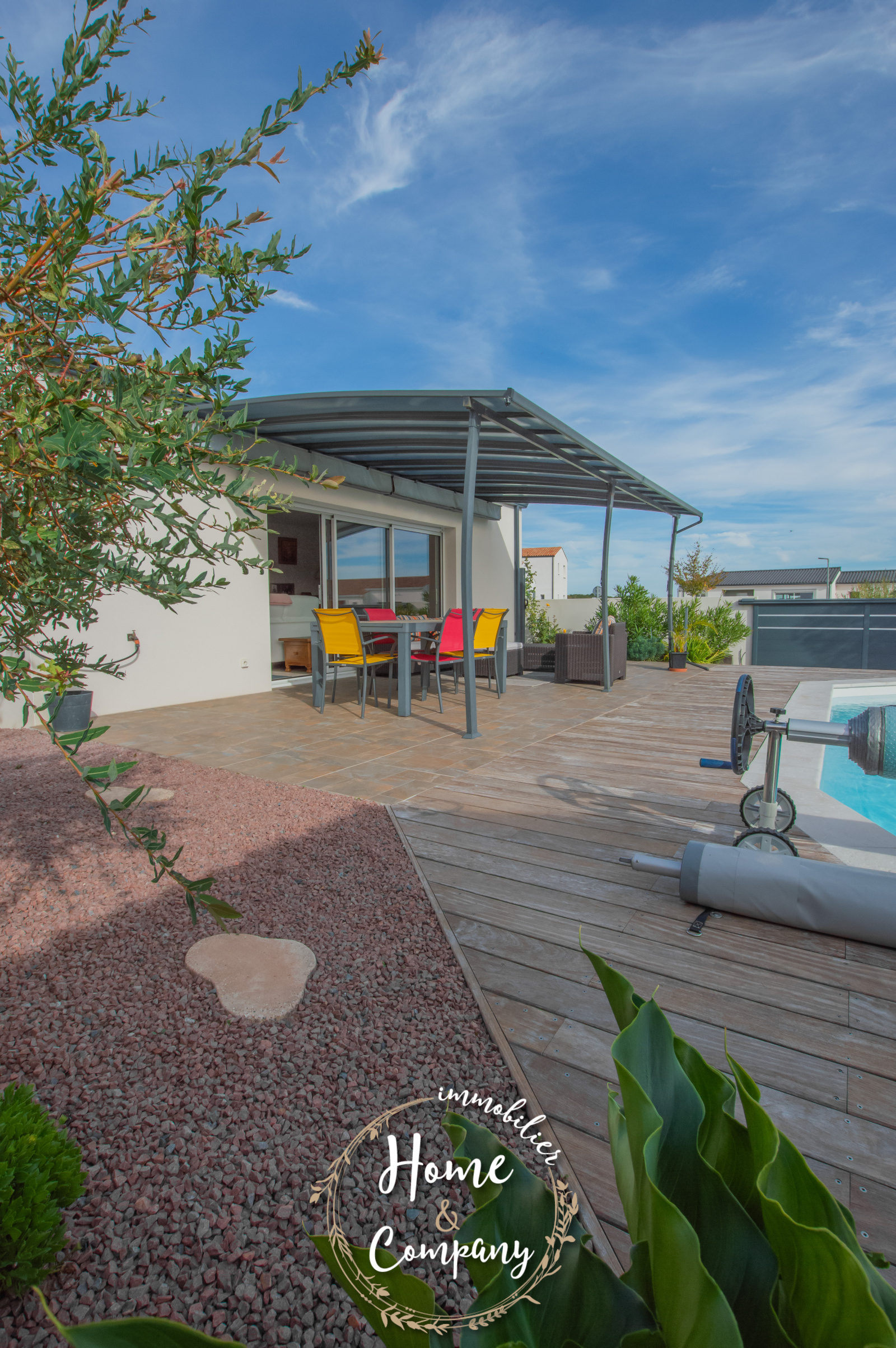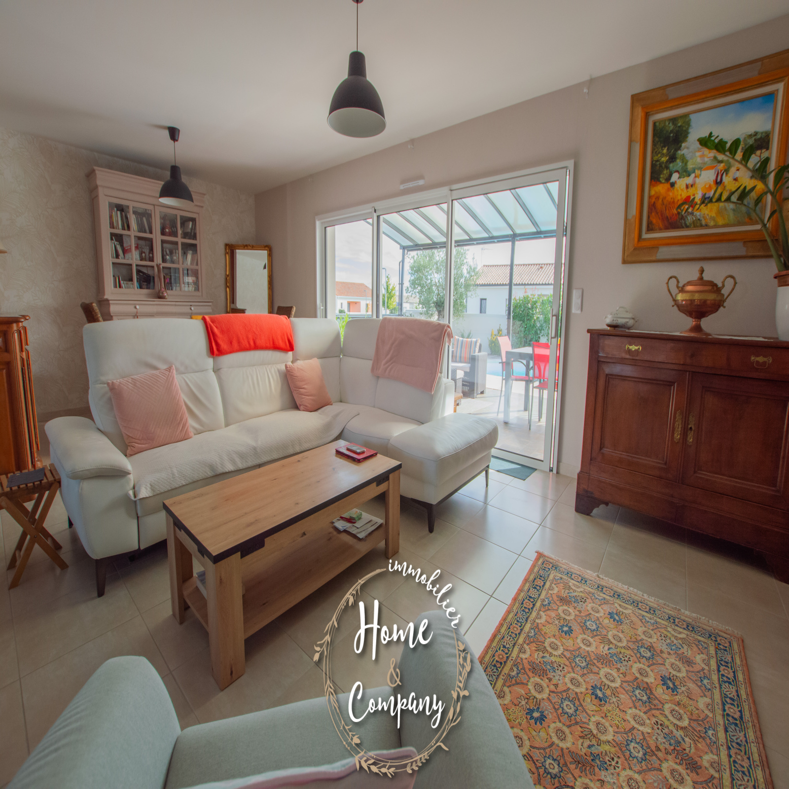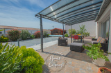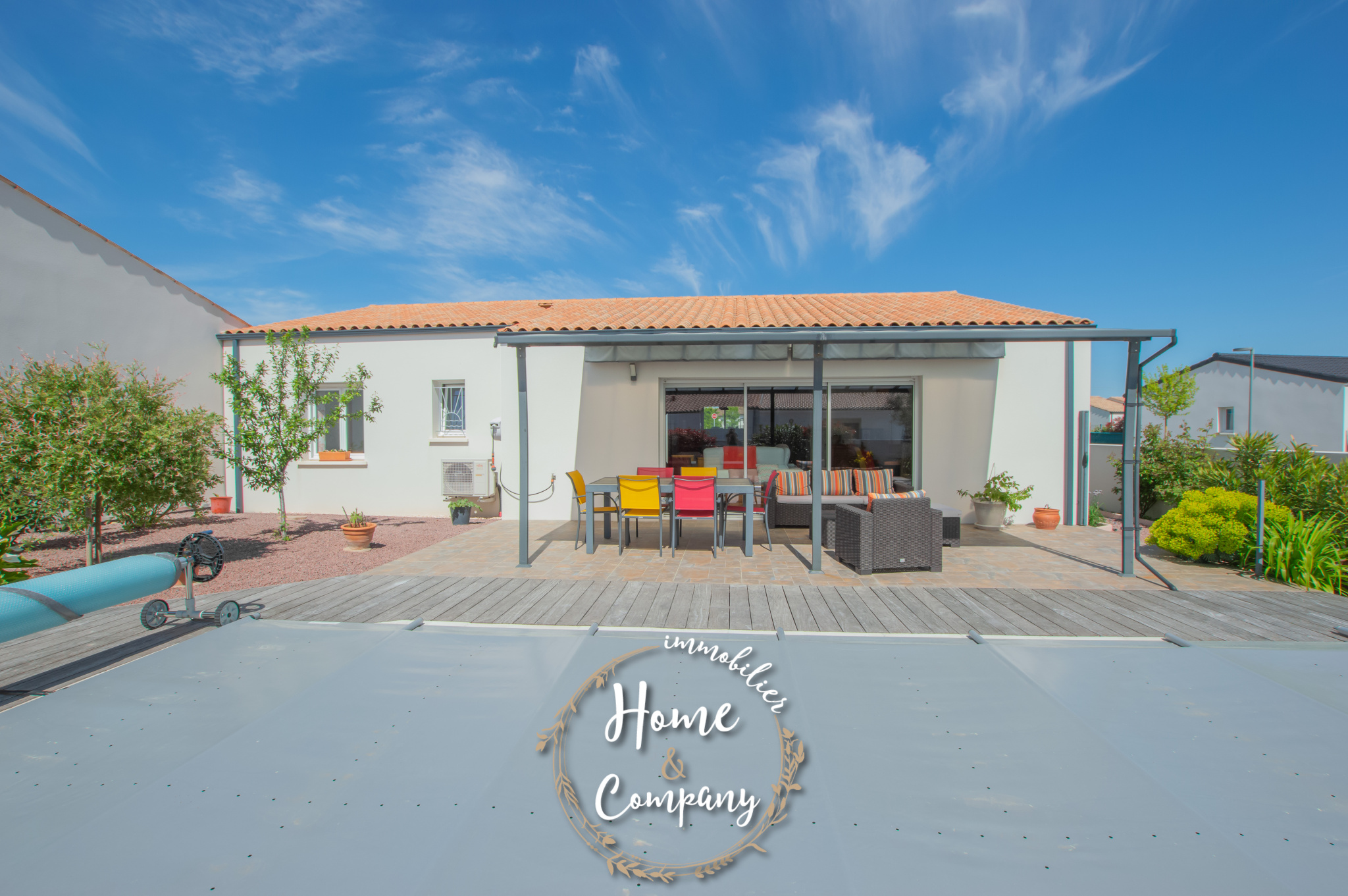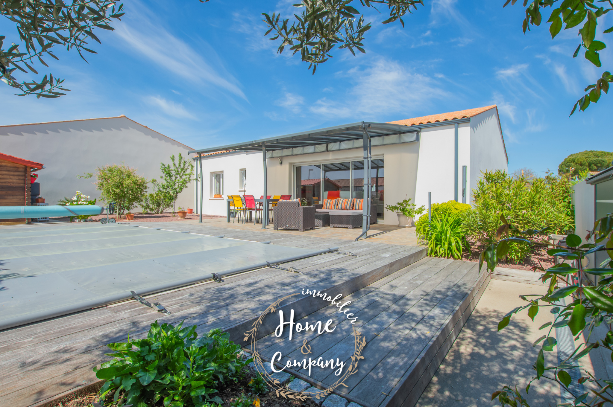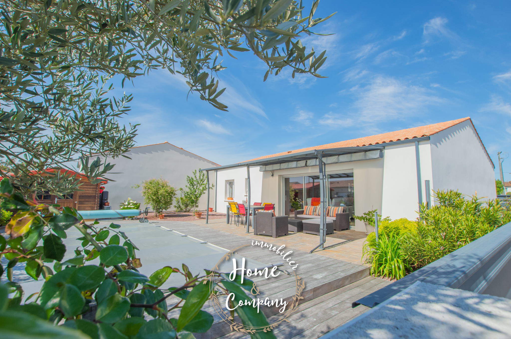 SAINT-SULPICE-DE-ROYAN - MAISON RÉCENTE DE PLAIN-PIED - Située à quelques mètres des commerces du centre, Home & Company Immobilier vous présente cette maison de 2021 de plain-pied offrant 97m2 habitables sur une parcelle de 418m2. Elle offre une entrée, une belle pièce de vie de 54m2 intégrant une cuisine ouverte aménagée et équipée. Le séjour ouvre par une grande baie vitrée sur une terrasse exposée SO vue sur la piscine chauffée. Un dégagement avec placard vient desservir l'espace nuit composé de 3 chambres avec placards, d'une salle d'eau et d'un WC indépendant. Un garage et un abri de jardin constituent les annexes de cette maison agréable, aboutie et très bien entretenue. Stationnement sur la parcelle. DONT honoraires 3,54% à la charge de l'acquéreur. Montant moyen estimé des dépenses annuelles d'énergie pour un usage standard, établi à partir des prix de l'énergie de l'année 2021, 2022 et 2023 : entre 510€ et 730€.