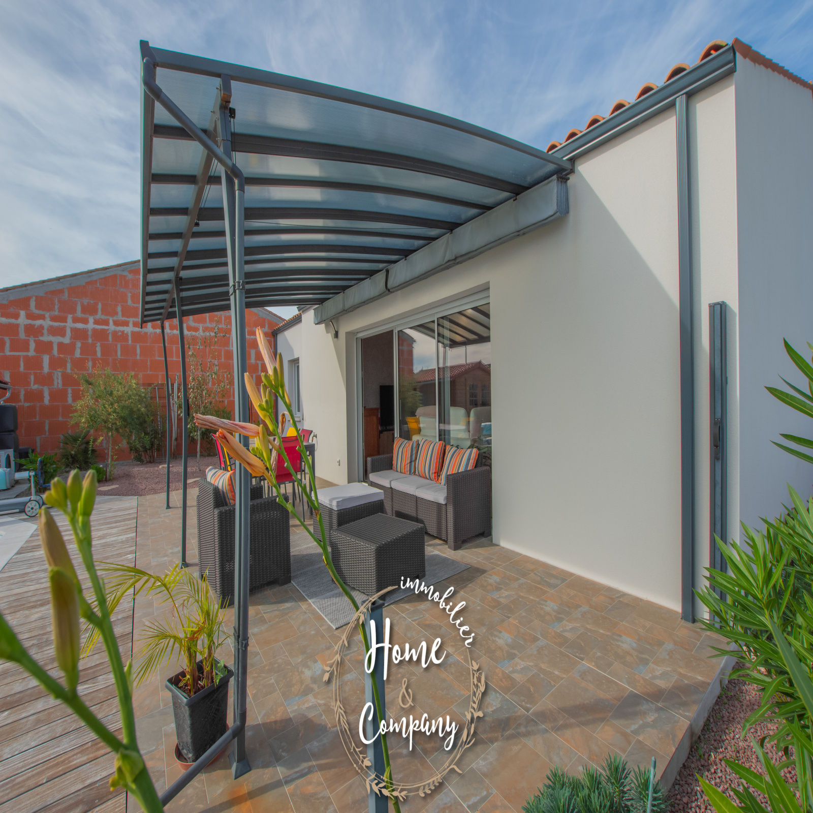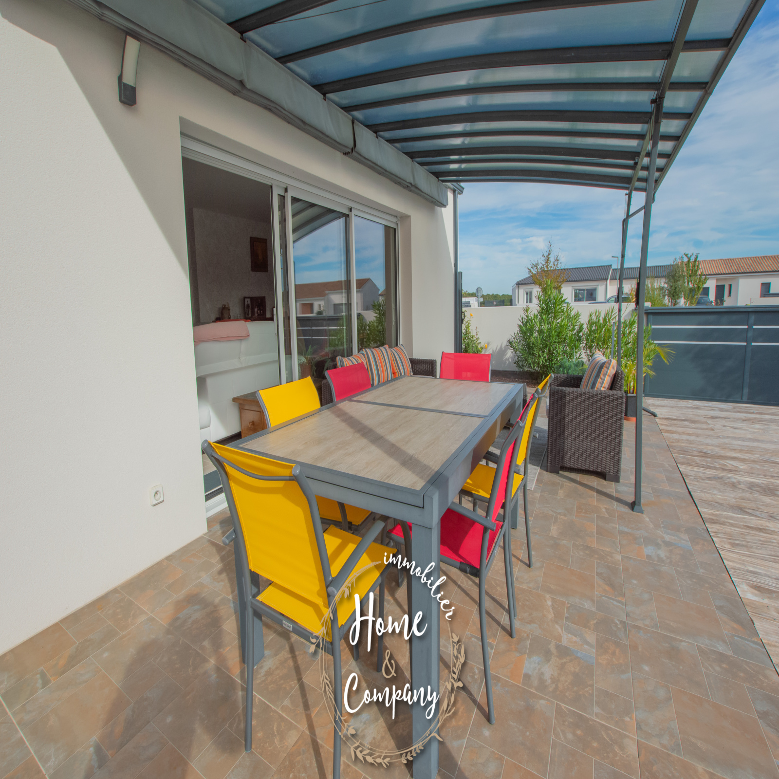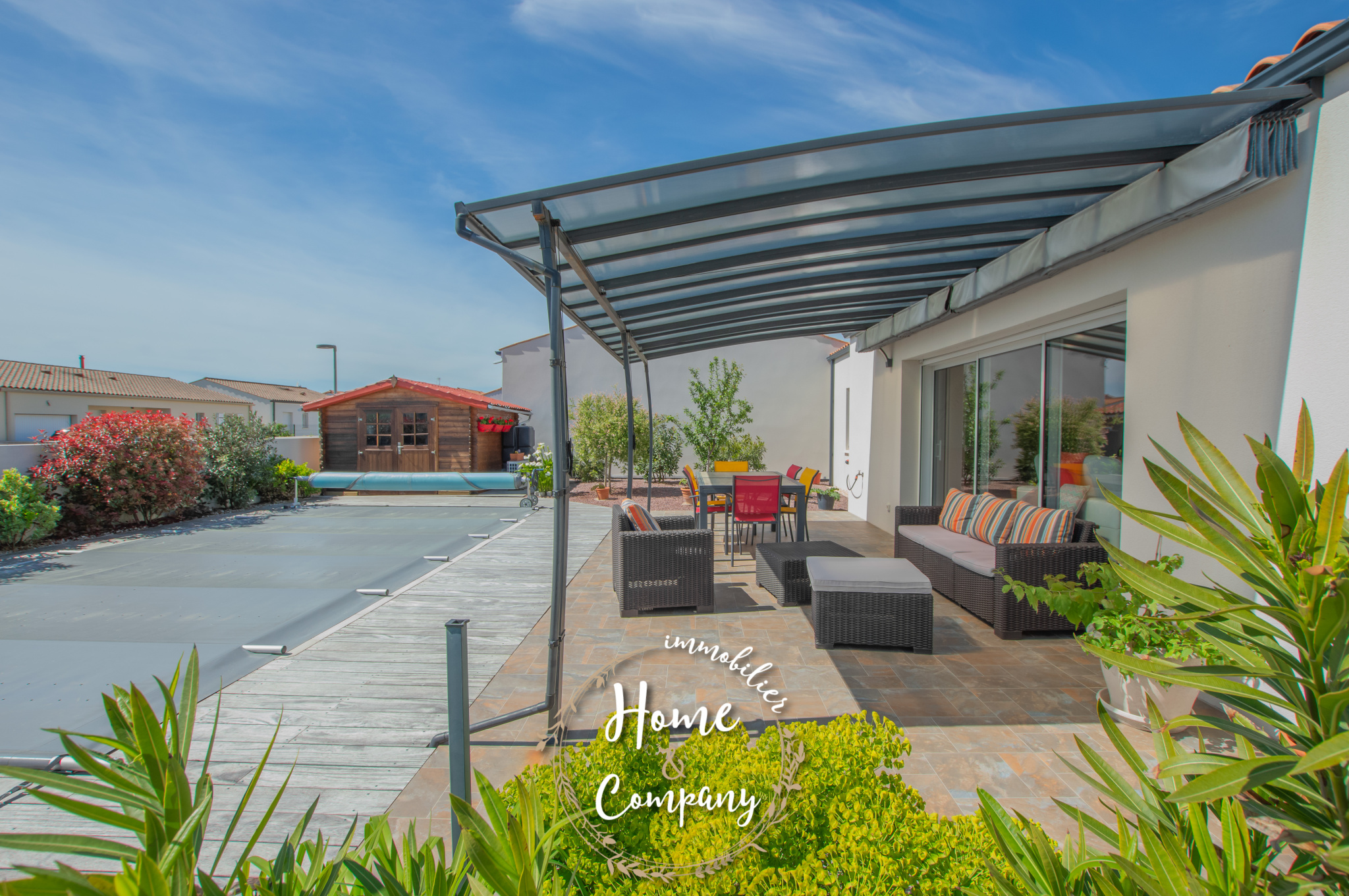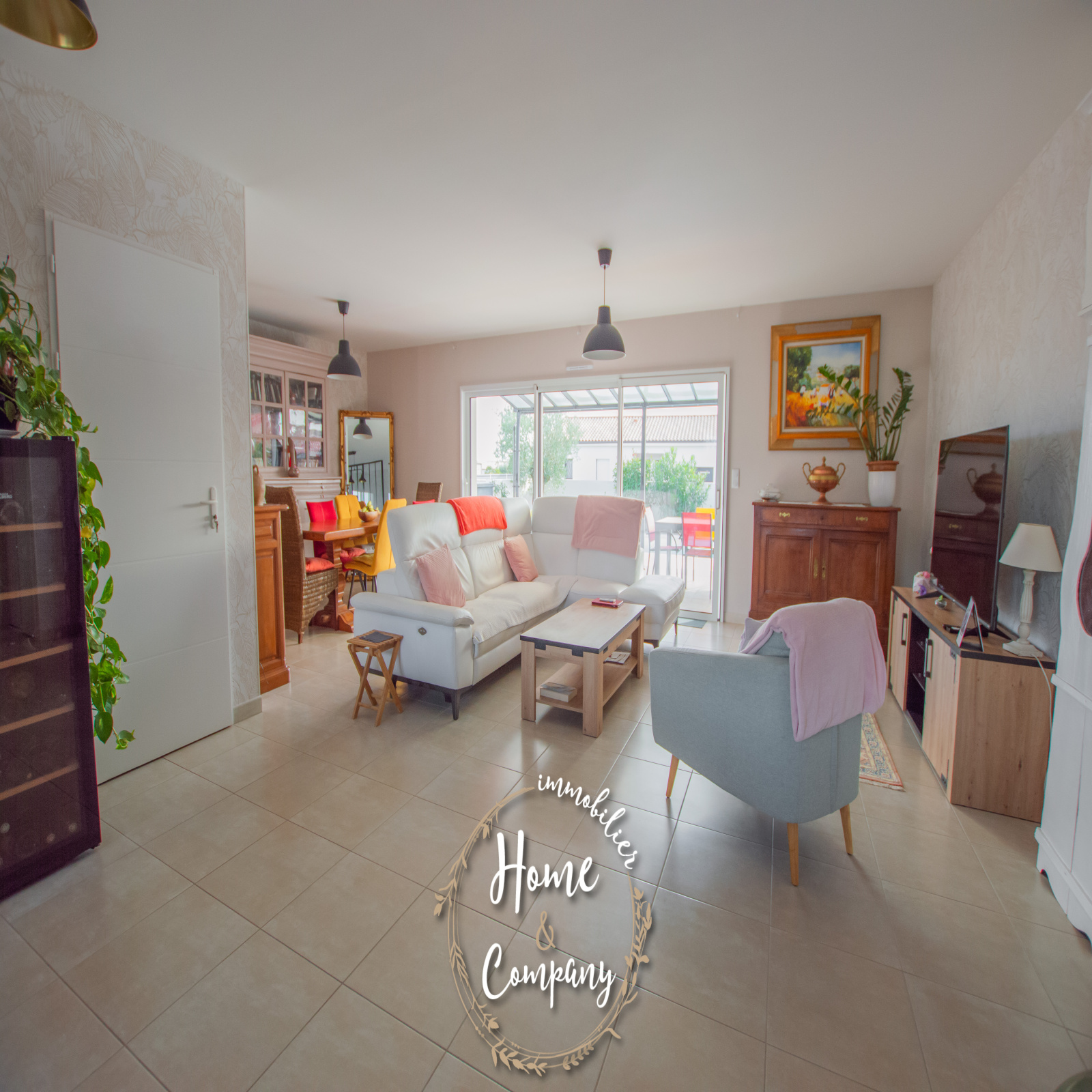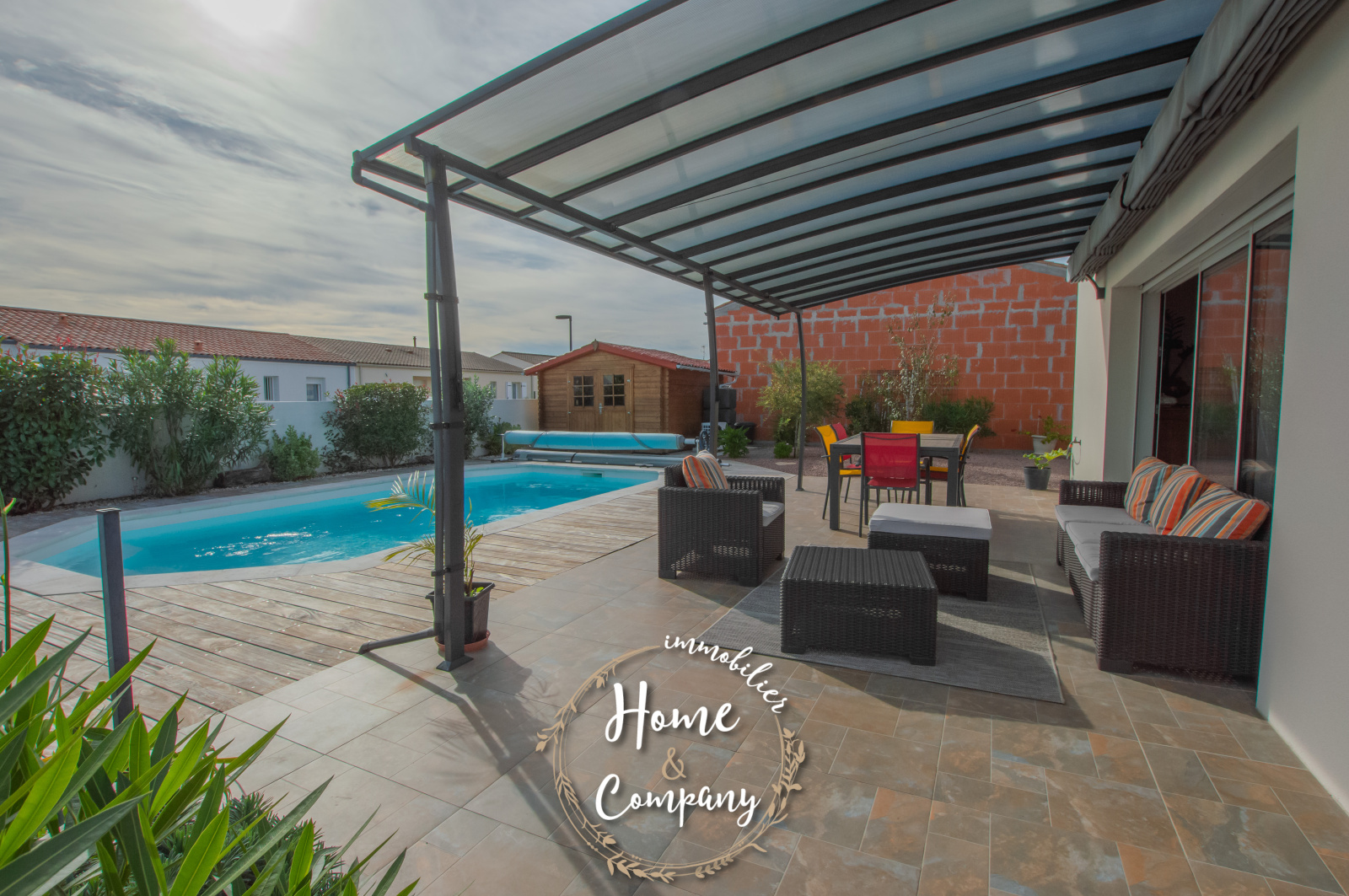 SAINT-SULPICE-DE-ROYAN - MAISON RÉCENTE DE PLAIN-PIED - Située à quelques mètres des commerces du centre, Home & Company Immobilier vous présente cette maison de 2021 de plain-pied offrant 97m2 habitables sur une parcelle de 418m2. Elle offre une entrée, une belle pièce de vie de 54m2 intégrant une cuisine ouverte aménagée et équipée. Le séjour ouvre par une grande baie vitrée sur une terrasse exposée SO vue sur la piscine chauffée. Un dégagement avec placard vient desservir l'espace nuit composé de 3 chambres avec placards, d'une salle d'eau et d'un WC indépendant. Un garage et un abri de jardin constituent les annexes de cette maison agréable, aboutie et très bien entretenue. Stationnement sur la parcelle. DONT honoraires 3,54% à la charge de l'acquéreur. Montant moyen estimé des dépenses annuelles d'énergie pour un usage standard, établi à partir des prix de l'énergie de l'année 2021, 2022 et 2023 : entre 510€ et 730€.
