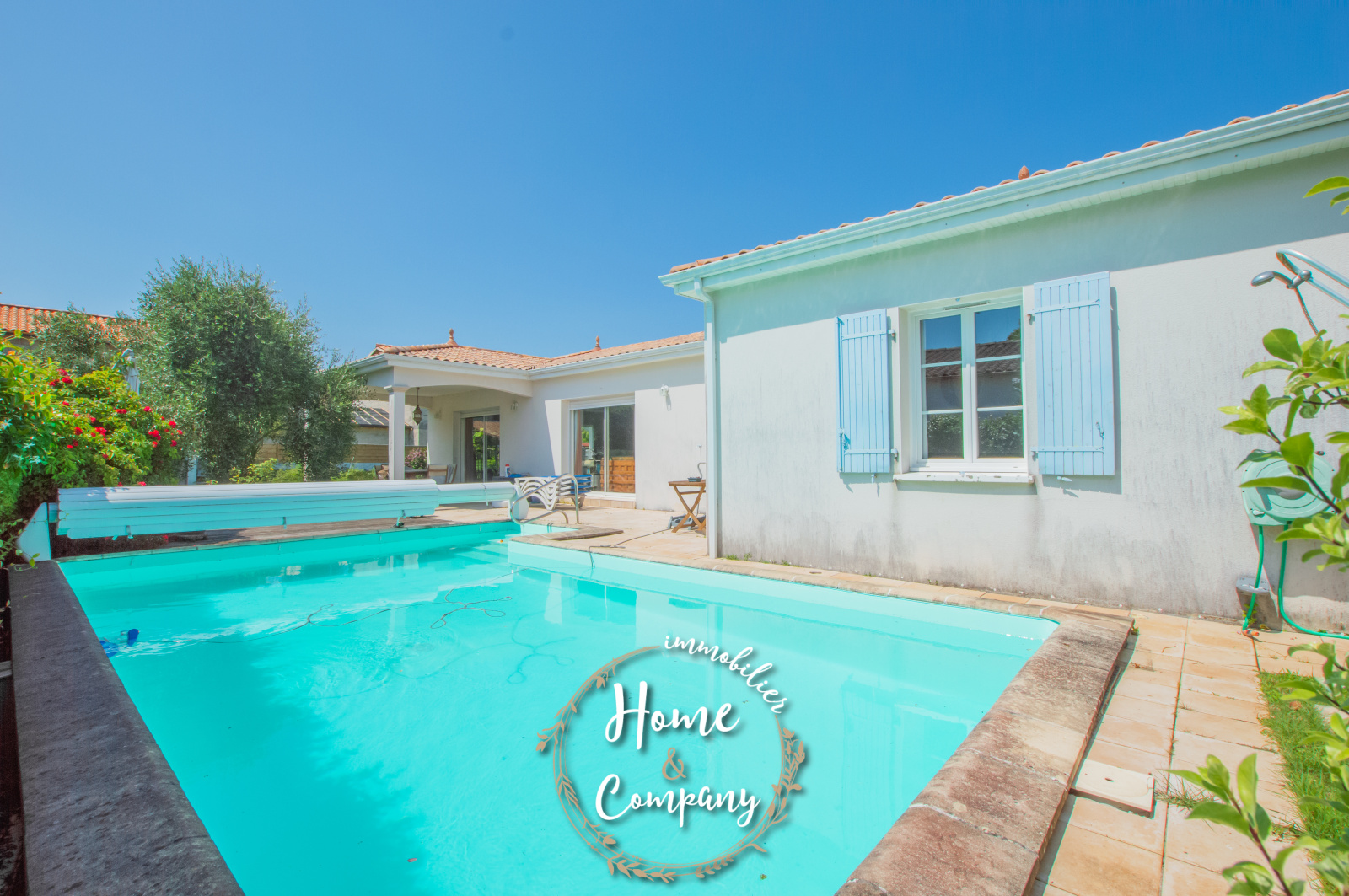 SAINT-PALAIS-SUR-MER - MAISON DE PLAIN-PIED AVEC PISCINE - Située dans un quartier calme et habité à l'année, proche des commerces et à 1800m de la plage de ST.PALAIS, Home & Company Immobilier vous présente cette agréable maison récente développant 128m2 habitables sur un terrain de 814m2. Offrant tout le confort d'une vie de plain-pied, elle propose une entrée avec placard, un séjour lumineux de 56m2 avec une cuisine ouverte aménagée et équipée. Ce séjour amène par une grande baie vitrée à une terrasse couverte de 17m2 donnant une vue reposante sur le jardin et la piscine. Côté nuit, un dégagement dessert 4 chambres dont une avec salle d'eau privative, une deuxième salle d'eau avec WC et un autre WC indépendant. Le jardin entièrement clos, nous invite à apprécier le calme du quartier avec notamment une 2ème terrasse couverte plus cocooning. La piscine chauffée a parfaitement trouvé sa place dans ce joli jardin paysagé. Un garage et un cellier constituent les annexes de cette maison. Stationnement privatif. DONT honoraires 3,62% à la charge de l'acquéreur. Plus de photos et visite virtuelle sur le site de l'agence Home & Company Immobilier. Montant moyen estimé des dépenses annuelles d'énergie pour un usage standard, établi à partir des prix de l'année 2021 : entre 1520 et 2160€.