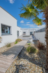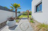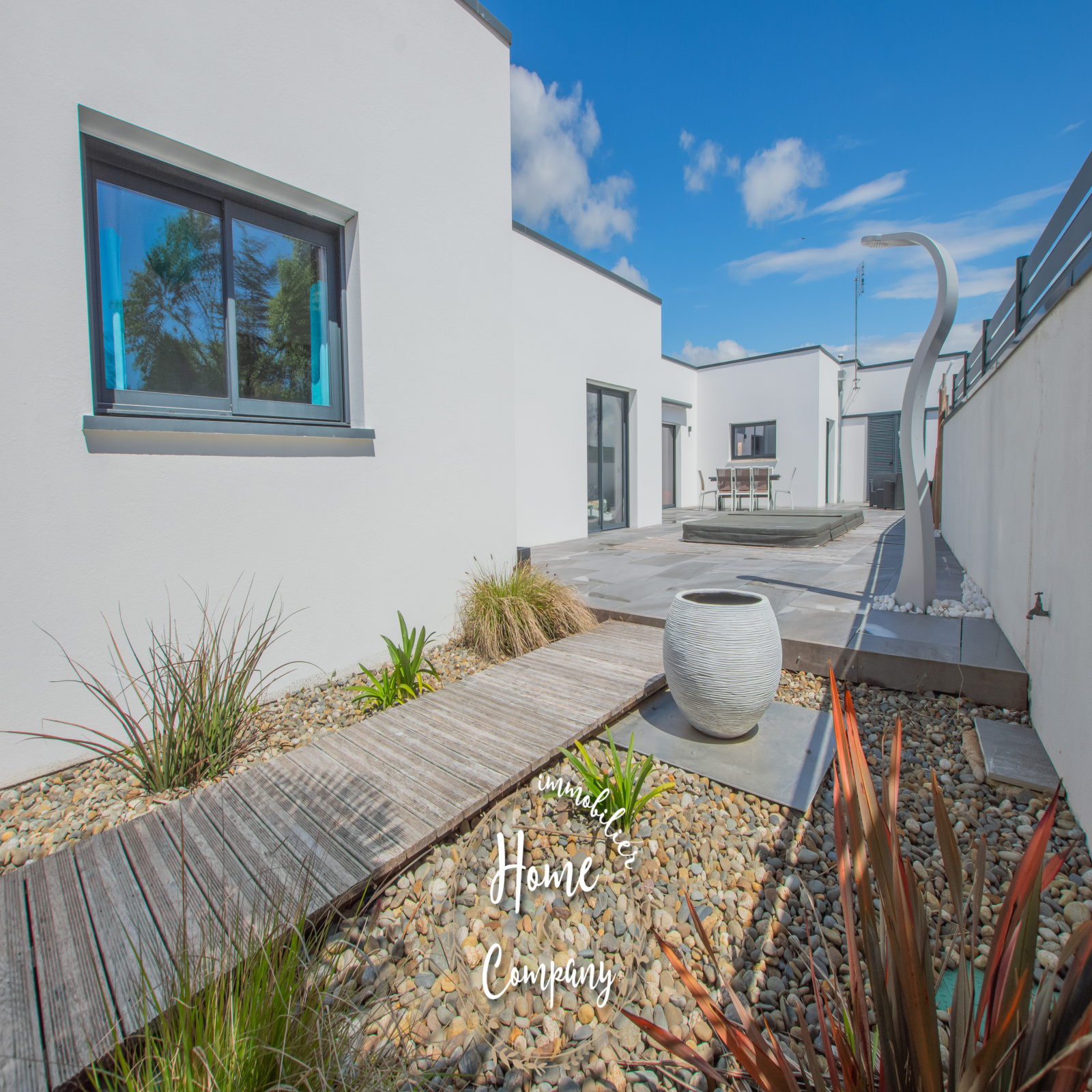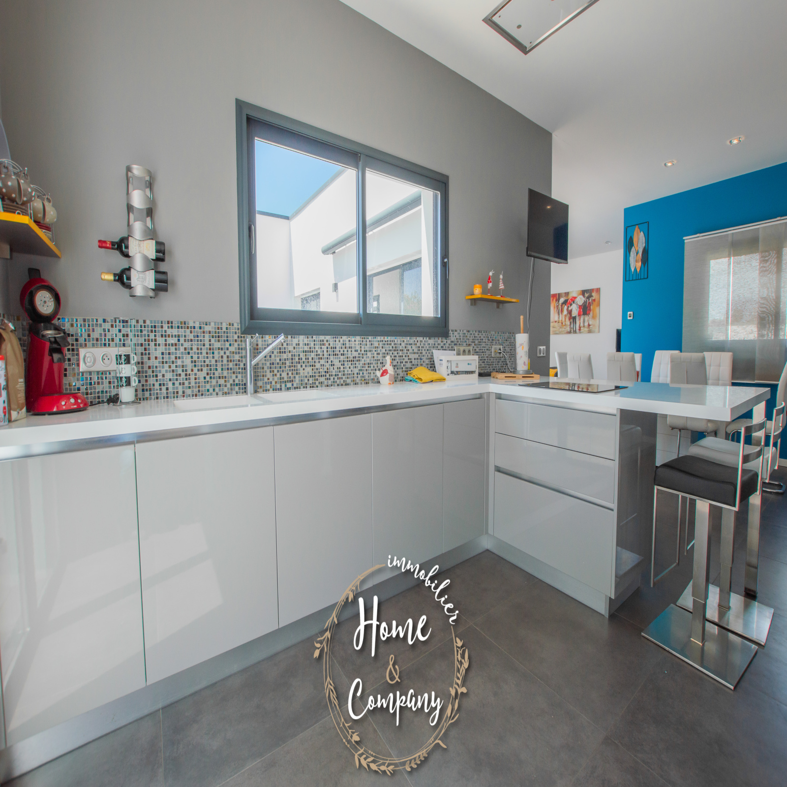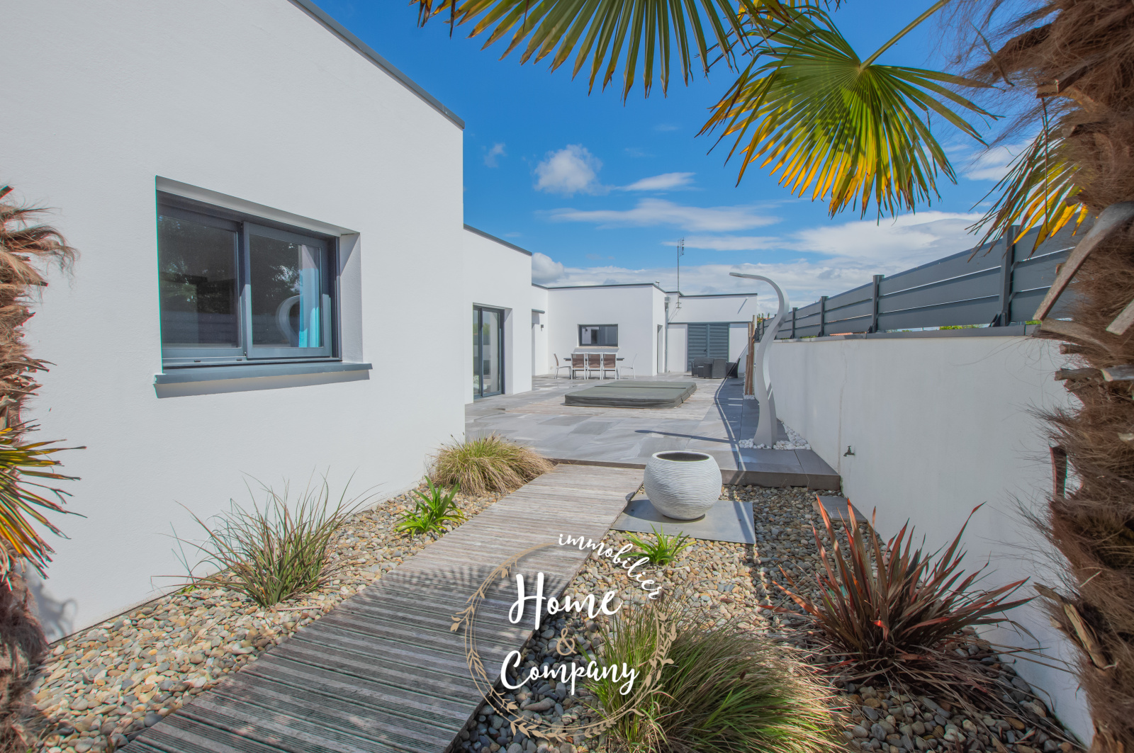 SAINT-PALAIS-SUR-MER - MAISON RÉCENTE CUBIQUE AVEC SPA DE NAGE - Située à moins de 1800m des commerces et à moins de 2900m de la plage de Nauzan, Home & Company Immobilier vous présente cette agréable maison récente de plain-pied offrant une superficie habitable de 158m2 sur une parcelle de 803m2. Judicieusement pensée et tournée vers ses différents pôles extérieurs, elle saura vous offrir un véritable confort de vie. Dès l'entrée passée, cette maison dévoile une belle pièce de vie de 62m2, baignée de lumière grâce à ses nombreuses ouvertures donnant sur différentes terrasses. La cuisine ouverte, de bonne facture, faisant partie intégrante de cette pièce de vie est aménagée et équipée. Un dégagement viendra desservir 3 chambres dont une avec dressing, l'ensemble se partageant une salle de bains avec douche italienne et un WC indépendant. En opposition une 4ème chambre avec salle d'eau complète la capacité d'accueil. 2ème WC indépendant. Deux terrasses aux expositions différentes agrémentent le jardin ainsi qu'un spa de nage. Un cellier et un garage de 25m2 constituent les annexes. De bonnes prestations sont assurées : accès motorisés, domotique, interphone/visiophone, chauffage au sol par PAC, VMC double-flux... Du stationnement privatif est assuré pour cette maison aboutie. Plus de photos et visite virtuelle sur le site de l'agence Home & Company immobilier. DONT honoraires 3,90% à la charge de l'acquéreur. Montant moyen estimé des dépenses annuelles d'énergie pour un usage standard, établi à partir des prix de l'énergie de l'année 2021 : entre 620€ et 900€.