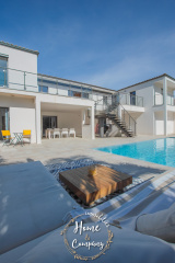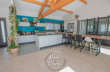 LES MATHES - MAISON CALIFORNIENNE - Située dans un parc privé très apprécié, Home & Company Immobilier vous présente cette magnifique maison baignée de lumière développant 247m2 habitables (322m2 utiles) sur une parcelle de 1248m2. Son architecture joliment dessinée propose de beaux espaces tournés vers ses extérieurs. Au rez-de-chaussée, cette maison vous offrira une entrée avec placard, une pièce de vie de 62m2 ouvrant par une baie à galandage sur une grande terrasse surplombant le jardin et la piscine. Cette pièce de vie avec un plafond cathédrale comprend une cuisine de bonne facture de type dînatoire. Une suite parentale avec dressing, salle d'eau et WC puis un bureau ont en opposition la seconde partie nuit : 3 chambres avec placards, une salle de bains avec douche, 2 WC indépendants. Au rez-de-jardin, un dégagement dessert une chambre avec douche et meuble vasque, un WC indépendant, une pièce de 40m2 puis une grande pièce de 76m2 à finir d'aménager. Une buanderie, un garage de 26,50m2 et un local technique piscine constituent les annexes de cette maison moderne offrant de bonnes prestations : adoucisseur, chauffage au sol par PAC, clim réversible, centralisation des volets, accès motorisés, alarme... Ce cadre calme et verdoyant est idéal pour les amoureux de nature. Du stationnement privatif est assuré sur la parcelle par une aire pouvant accueillir jusqu'à 4 véhicules. Visite virtuelle sur le site de l'agence Home & Company immobilier. DONT honoraires 3,89% à la charge de l'acquéreur. Montant moyen estimé des dépenses annuelles d'énergie pour un usage standard, établi à partir des prix de l'énergie de l'année 2021, 2022 et 2023 : entre 1090€ et 1530€.