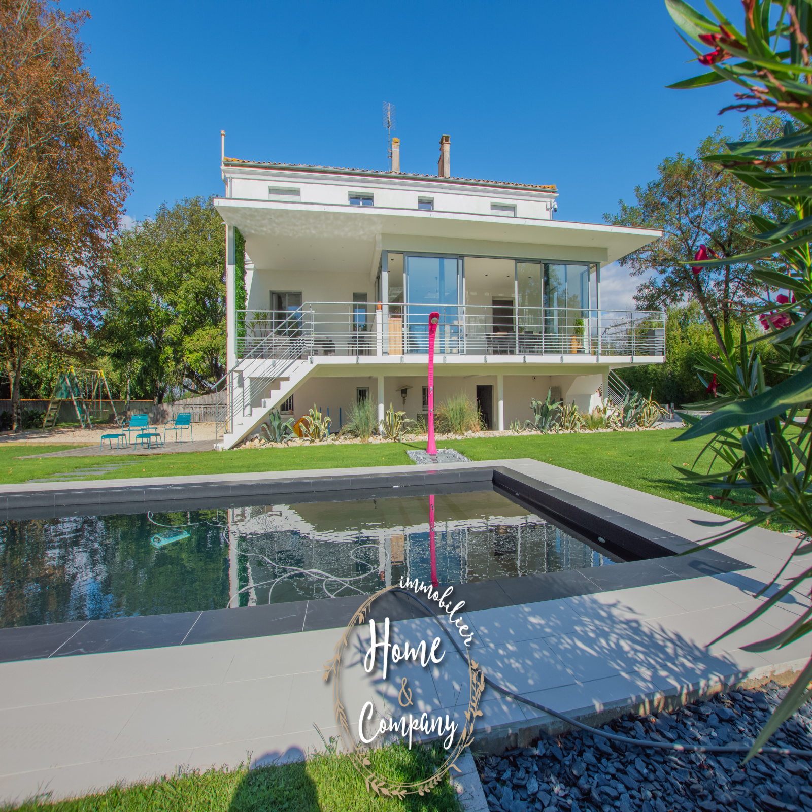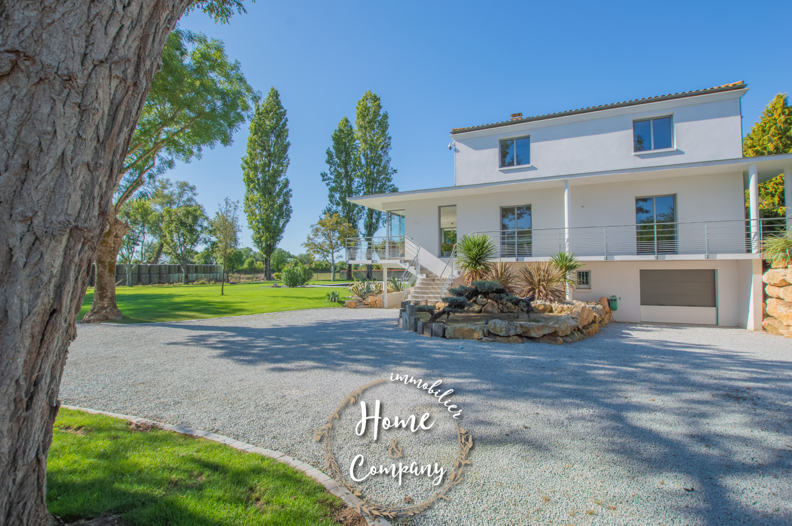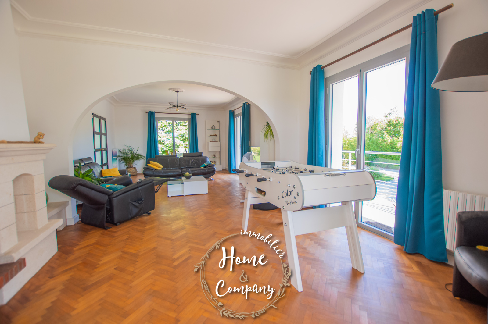 SAUJON - MAISON FAMILIALE RÉNOVÉE AVEC PISCINE - Dans un environnement « campagne », à moins de 2500m du centre-ville de SAUJON, Home & Company Immobilier vous présente cette belle maison rénovée de type familiale, offrant 290m2 habitables sur une parcelle arborée et aérée de 5213m2. Au rez-de-chaussée surélevé la maison propose une vaste entrée avec placard, un séjour avec cheminée de 43m2 ouvrant sur un balcon filant, une cuisine indépendante entièrement aménagée et équipée de type dînatoire de 38m2 ouvrant sur une terrasse exposée Ouest et offrant grâce à ses nombreuses baies une vue magnifique sur le jardin et la piscine. Pour compléter ce niveau, un dégagement viendra desservir une suite parentale (chambre ouvrant sur une terrasse couverte, dressing et salle d'eau avec WC) puis, un bureau/chambre avec placards. WC indépendant. Le premier étage accueil quant à lui, 5 chambres avec placards, une salle de bains, une salle d'eau et un WC indépendant. Un vaste sous-sol de 128m2 (garage, chaufferie, cave, pièces...) une lingerie, un cellier et un garage indépendant de 60m2 constituant les annexes de cette maison. Côté jardin, on appréciera la piscine carrelée et chauffée dans un cadre reposant ayant comme entourage de la végétation. Stationnement aisé sur la parcelle. Plus de photos et visite virtuelle sur le site de l'agence Home & Company immobilier. DONT honoraires 3,87% à la charge de l'acquéreur. Montant moyen des dépenses annuelles d'énergie pour un usage standard, établi à partir des prix de l'énergie de l'année 2021 : entre 4210€ et 5740€.