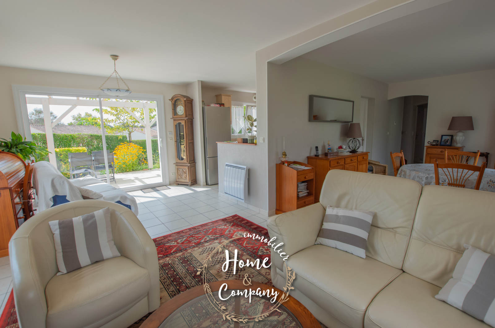 SAINT-AUGUSTIN - MAISON AVEC GRAND TERRAIN - Située dans un quartier calme et habité à l'année, à moins de 1500m des commerces de SAINT-AUGUSTIN et à moins de 5km de la plage, Home & Company Immobilier vous présente cette belle maison en parfait état offrant 121m2 habitables sur 3 niveaux, le tout sur un terrain clos et arboré de 1811m2. Elle offre au rez-de-chaussée, une entrée avec placard, un beau séjour traversant et lumineux de 46m2 avec une cuisine ouverte, l'ensemble ouvrant sur une terrasse ensoleillée. Le côté nuit du rez-de-chaussée regroupe 2 chambres dont une avec placard, une salle d'eau et un WC indépendant. À l'étage, un palier dessert une chambre avec placard, un bureau pouvant devenir une 4ème chambre, une salle d'eau et un WC indépendant. En sous-sol un garage de 37m2. Un cellier, une lingerie et une dépendance de 15m2 constituent les annexes de cette maison. Côté jardin, il est entièrement clos, arboré, sans vis-à-vis et piscinable. Stationnement sur la parcelle. Visite virtuelle sur le site de l'agence Home & Company immobilier. DONT honoraires 3,78% à la charge de l'acquéreur. Montant moyen estimé des dépenses annuelles d'énergie pour un usage standard, établi à partir des prix de l'énergie de l'année 2021 : entre 1690€ et 2340€.