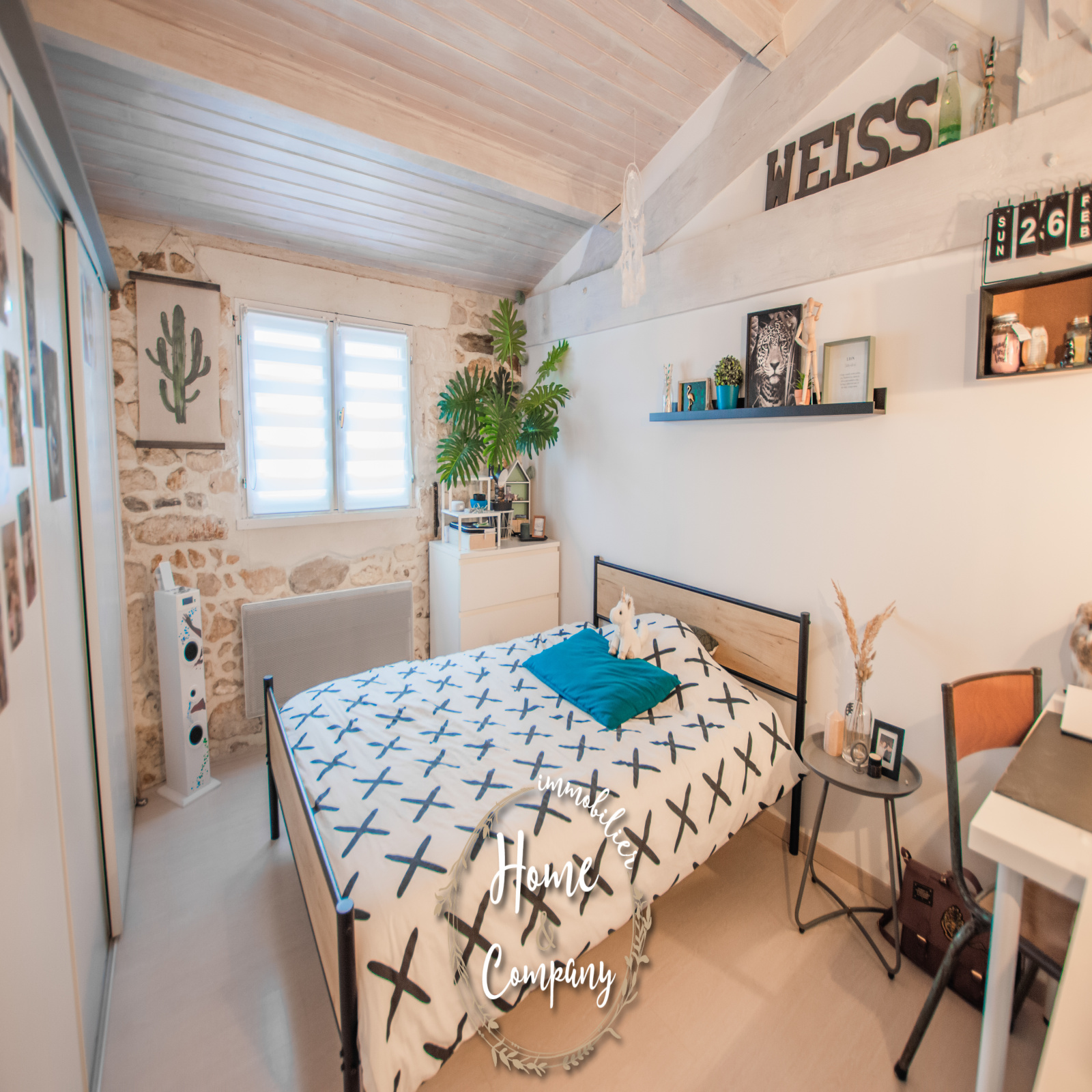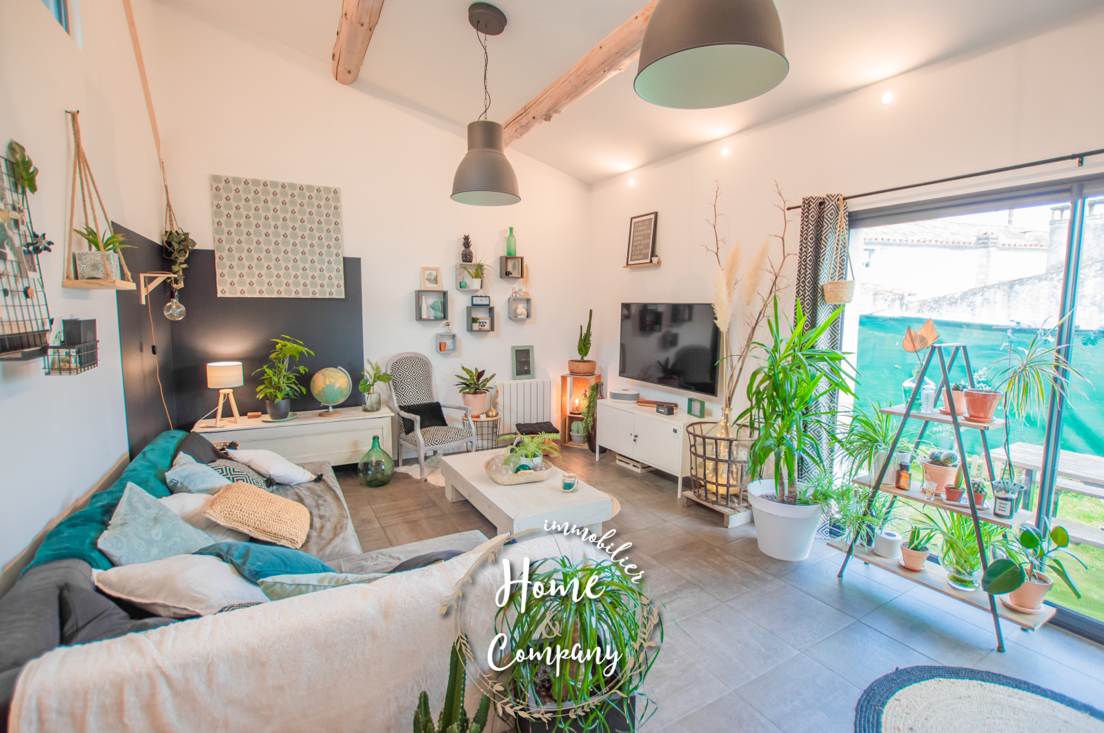 MORNAC-SUR-SEUDRE - MAISON RENOVEE REMPLIE DE CHARME - Située à 1000m du centre de ce village classé parmi "Les plus beaux villages de France", Home & Company Immobilier vous présente cette jolie maison en pierre sur 2 niveaux développant une superficie habitable de 133m2. Proposant assurément une vie de plain-pied, on y retrouve, une entrée avec dans son prolongement un hall d'accueil, un salon ouvrant sur la jardin proposant une belle hauteur sous-plafond, une salle à manger plus cosy, une cuisine ouverte aménagée. Côté nuit, une suite parentale avec dressing et salle d'eau. WC. L'étage regroupe la seconde partie nuit avec un palier desservant 3 chambres dont une avec sa salle d'eau. Un cellier constitue l'annexe. Le jardin offre lui aussi une ambiance très sympathique où l'on ressent la convivialité des lieux. Cette maison est un parfait mélange entre la pierre et son caractère mixé par un côté plus contemporain aux notes industrielles. A quelques pas, une seconde parcelle de terrain de 860m2 complète le tout proposant, pourquoi pas, un second espace de jeux. Plus de photos et visite virtuelle sur le site de l'agence Home & Company Immobilier. DONT honoraires 3,00% à la charge de l'acquéreur.