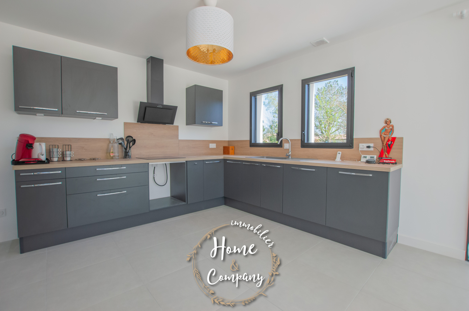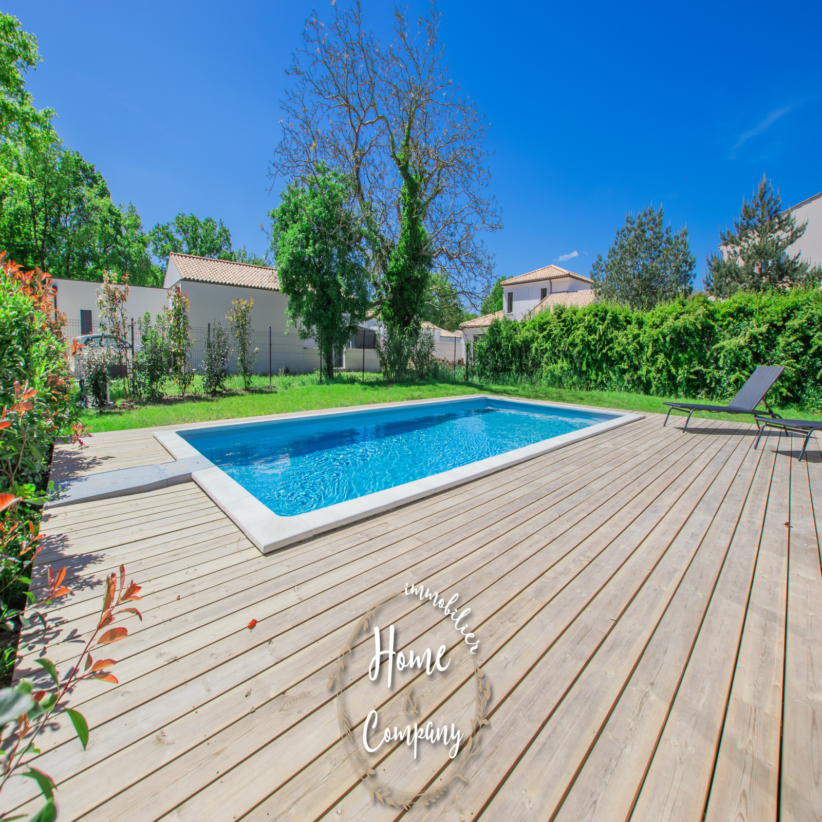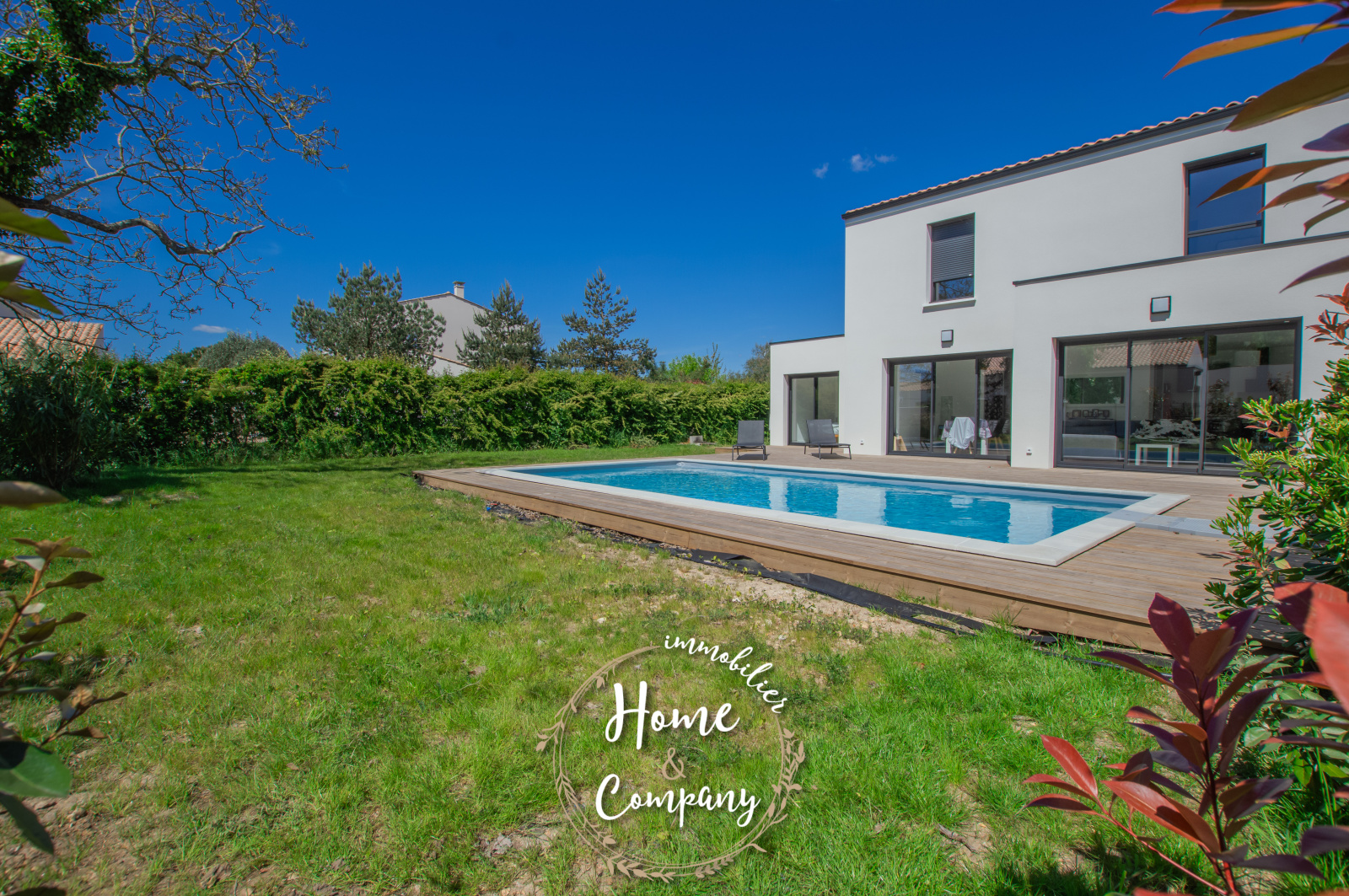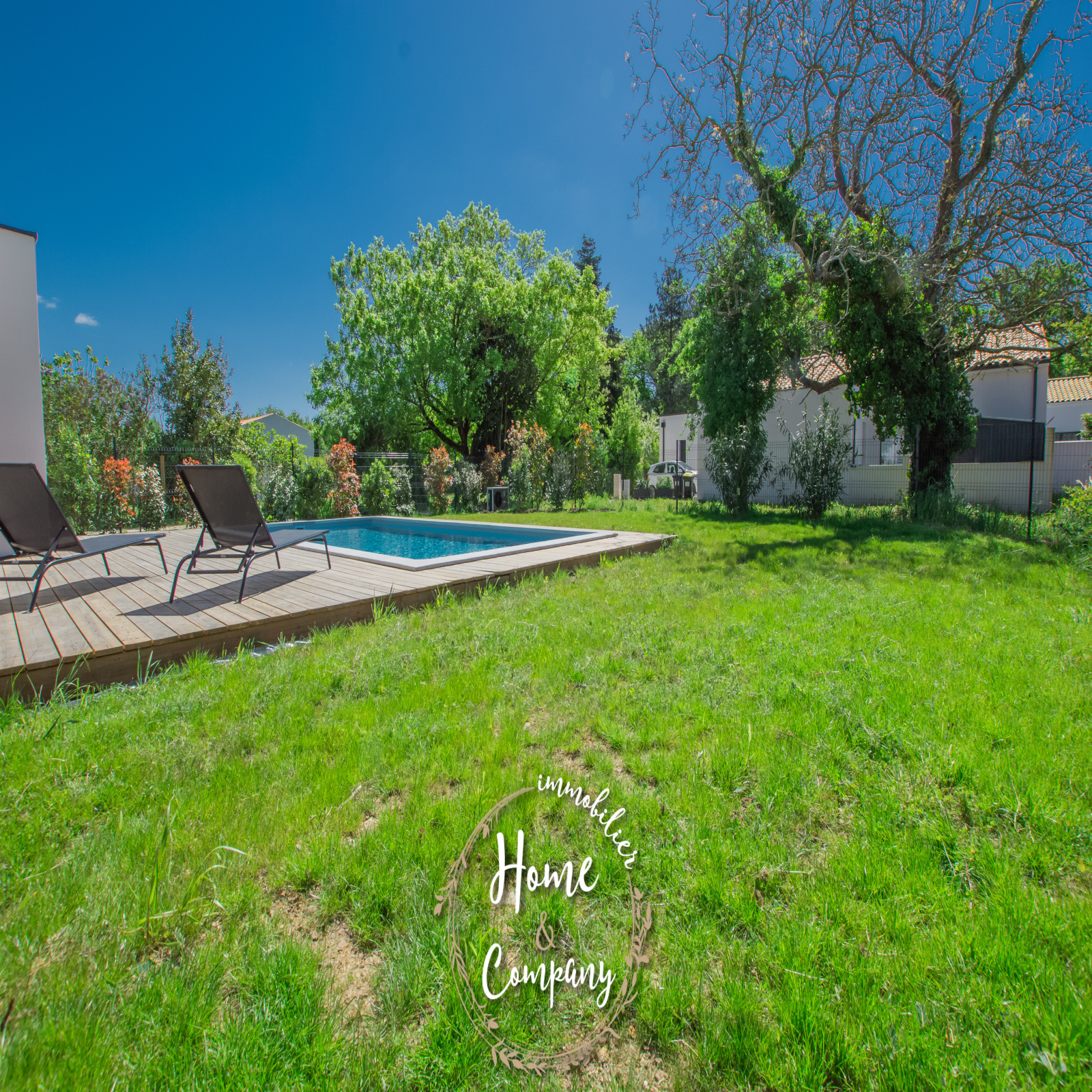 BREUILLET - MAISON NEUVE AVEC PISCINE - Située dans un quartier calme et habité à l'année, à 250m des commerces du centre-ville de BREUILLET, Home & Company Immobilier vous présente cette jolie maison neuve sur 2 niveaux, offrant une superficie habitable de 124m2 sur une parcelle de 600m2 avec du stationnement privatif. En rez-de-chaussée, elle comprend une entrée, un beau séjour lumineux de 46 m2 avec une cuisine ouverte aménagée et semi-équipée. Côté nuit, une suite parentale avec sa salle d'eau privative et WC. Deuxième WC séparé. L'étage regroupe 3 chambres, une salle d'eau et un WC. Piscine de 8x4m. Un garage de 25m2 et un cellier constituant les annexes de cette jolie maison moderne avec garanties (décennale et dommages ouvrage) où l'on retrouve le confort et les performances énergétiques d'aujourd'hui : chauffage au sol, domotique, bonne isolation... Visite virtuelle sur le site de l'agence Home & Company immobilier. DONT honoraires 3,13% à la charge de l'acquéreur. FRAIS DE NOTAIRES REDUITS. Montant moyen des dépenses annuelles d'énergie pour un usage standard, établi à partir des prix de l'énergie de l'année 2021 : entre 410€ et 610€.