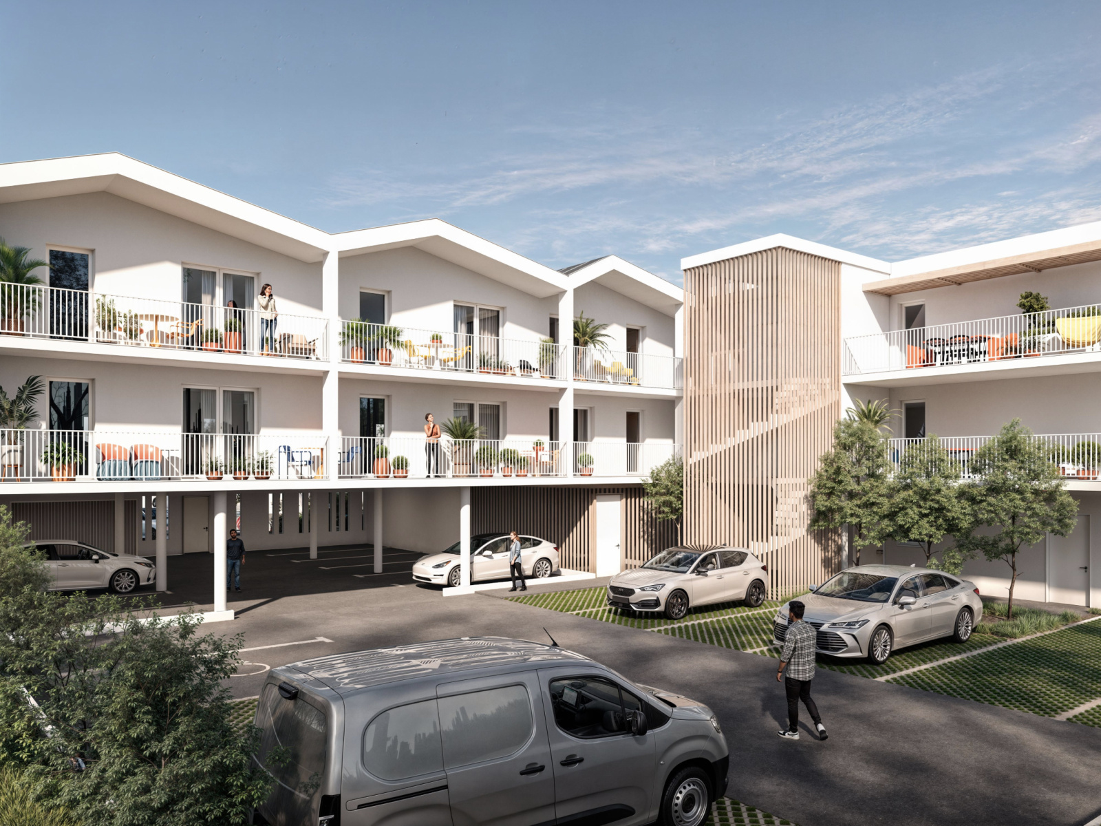 SAINT-GEORGES-DE-DIDONNE - BEL APPARTEMENT PROCHE PLAGE - Dans une jolie résidence neuve aux normes RE2020, à 350m de la plage de SAINT-GEORGES-DE-DIDONNE et à 350m des commerces du Centre-Ville, Home & Company Immobilier vous présente ce bel appartement d'une superficie habitable de 69m2 situé au deuxième et dernier étage avec ascenseur. Il propose une entrée avec placard, un séjour avec cuisine à amménager et à équiper ouvrant sur une terrasse de 18m2, exposée S, 2 chambres avec placard et une salle d'eau avec WC. Cet appartement dispose deux places de stationnements privatitif. Local commun à vélo. Emplacement privilégié. Frais de notaire réduits. Copropriété de 19 LOTS. Prix promoteur.